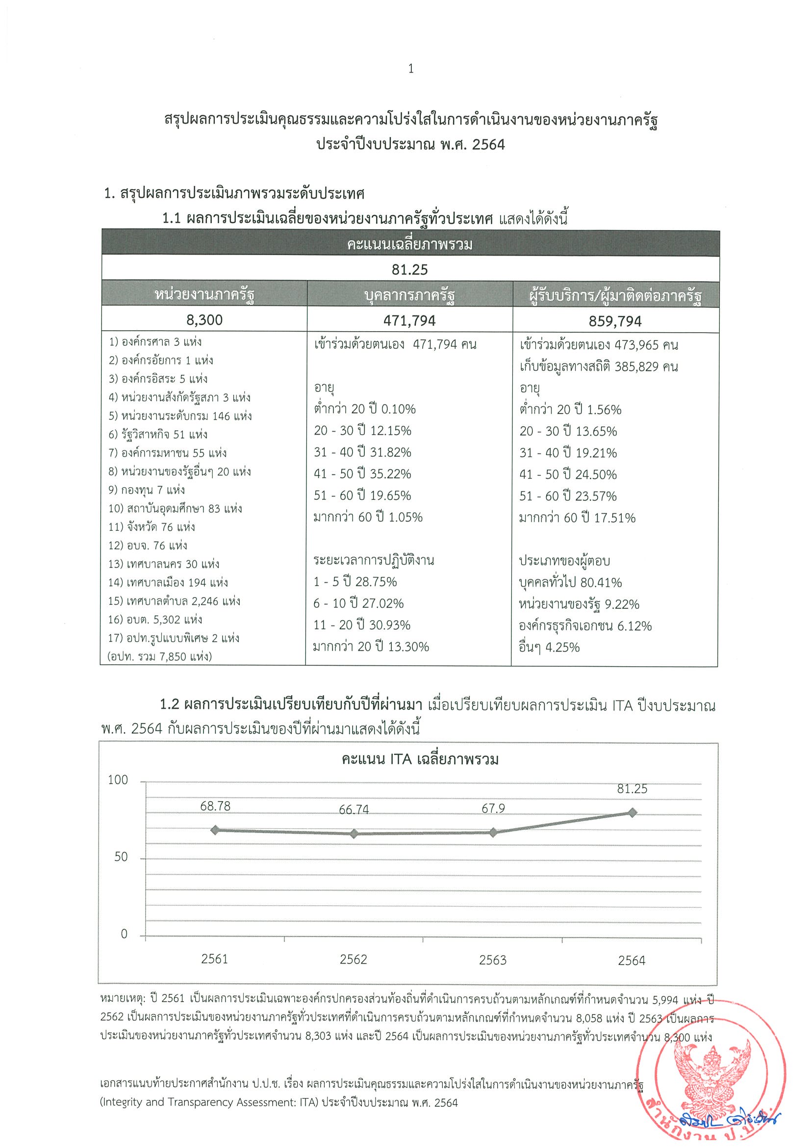 รายงานการวิเคราะห์ผลการประเมินคุณธรรมฯ 2565