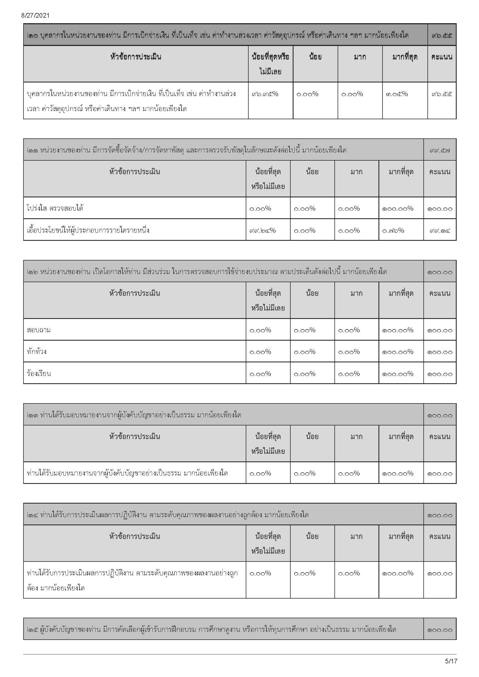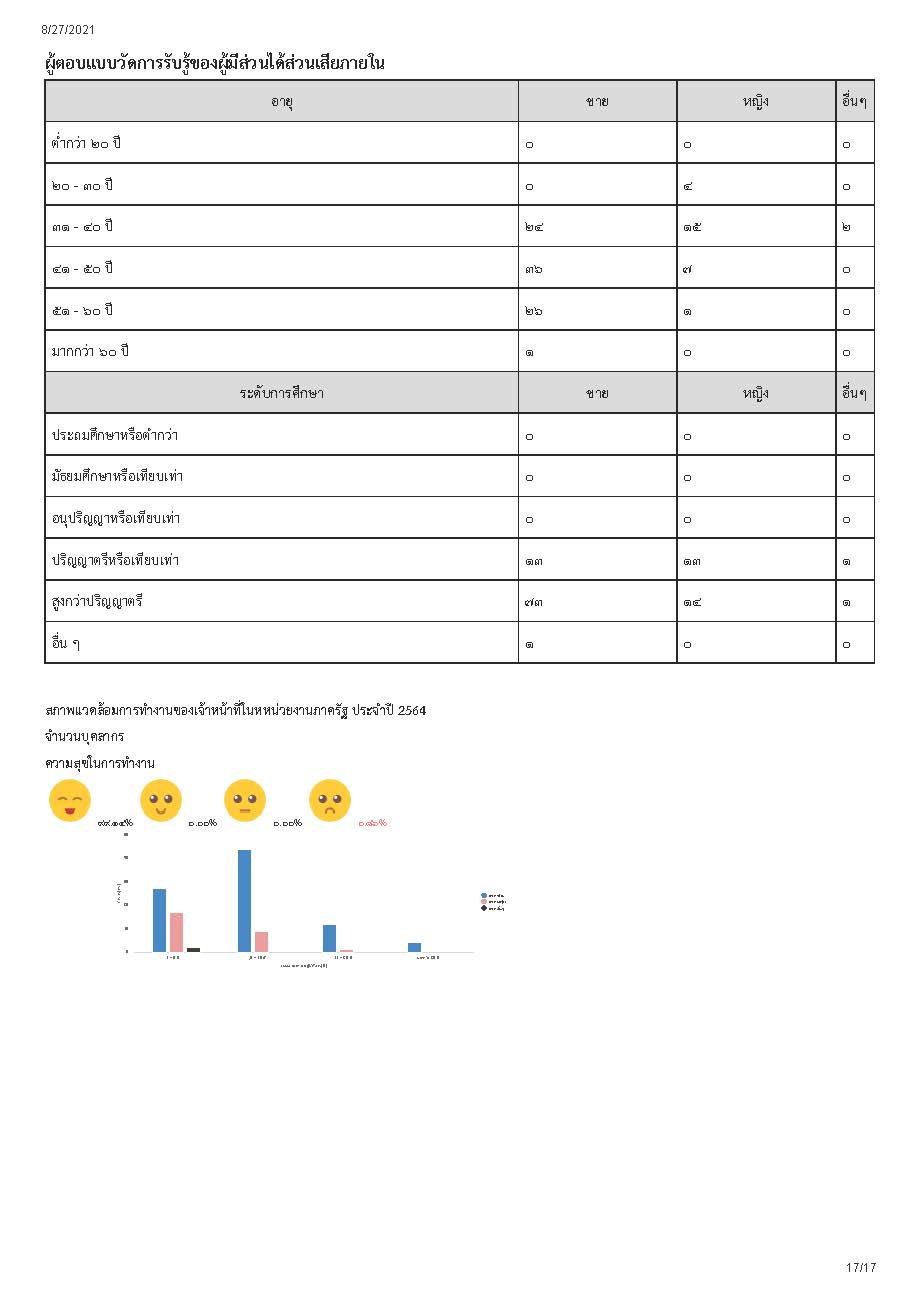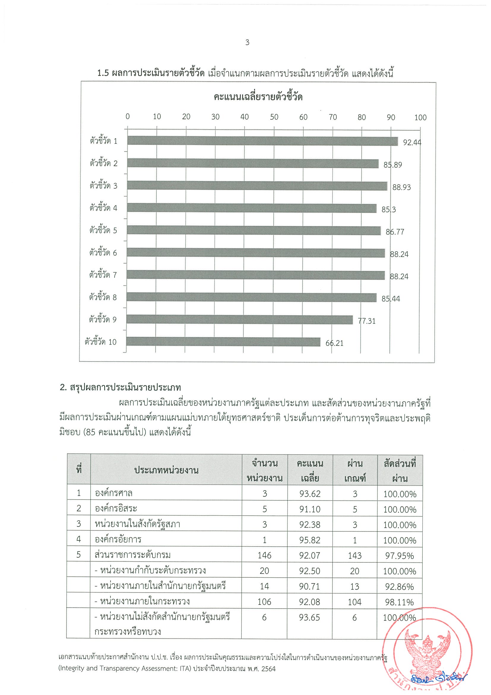ผลการดำเนินการตามมาตรการส่งเสริมคุณธรรมและความโปร่งใสภายในหน่วยงาน