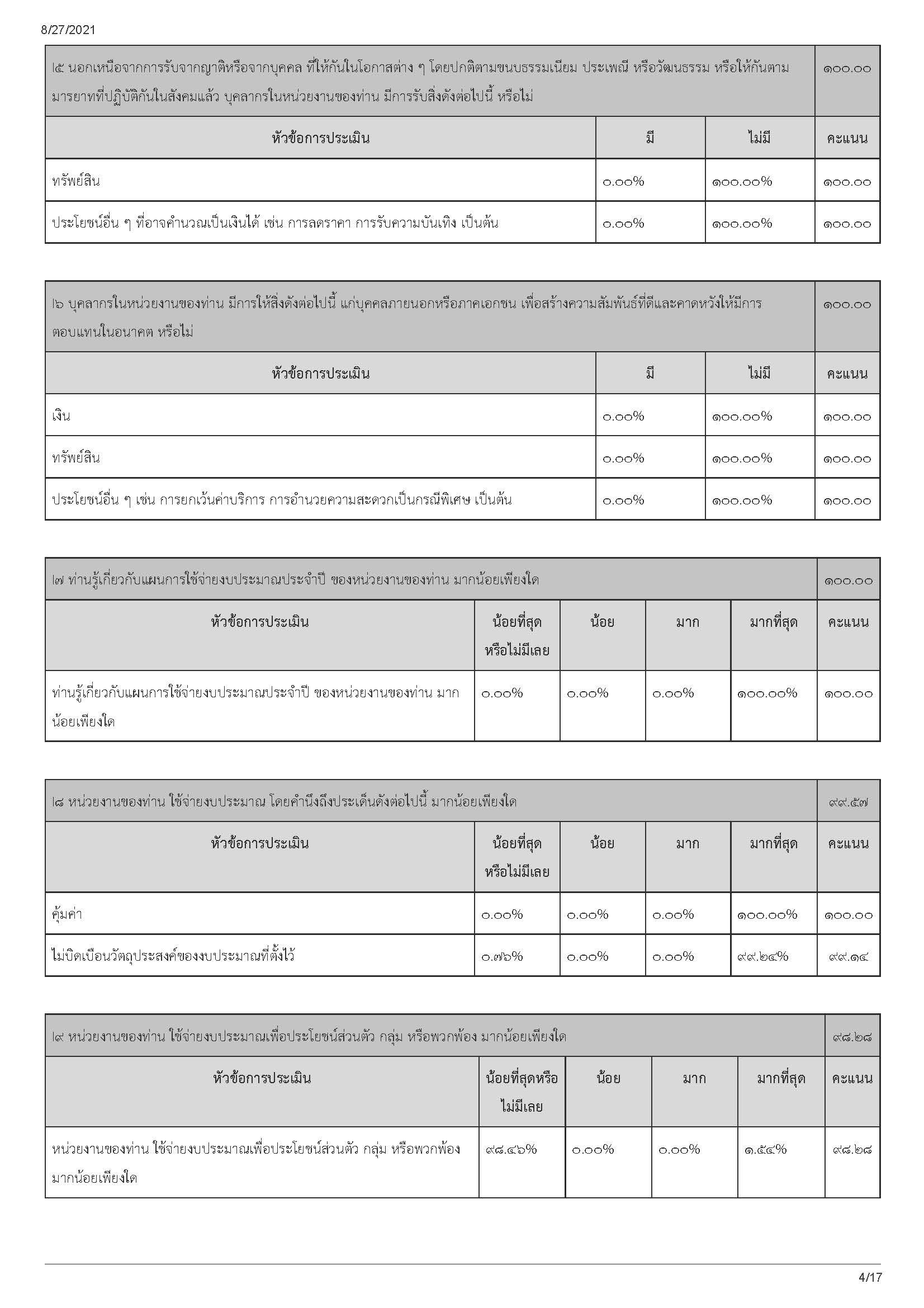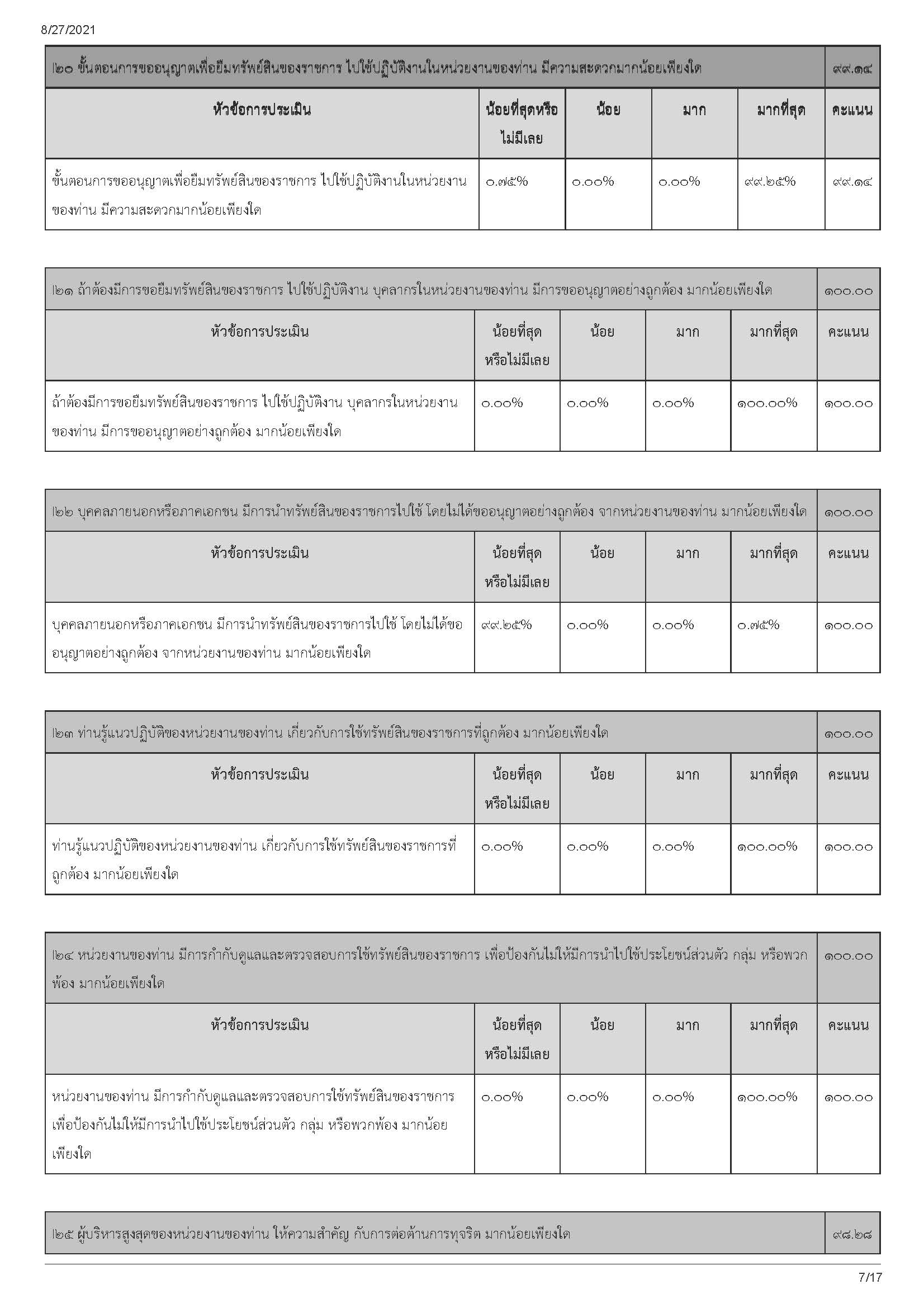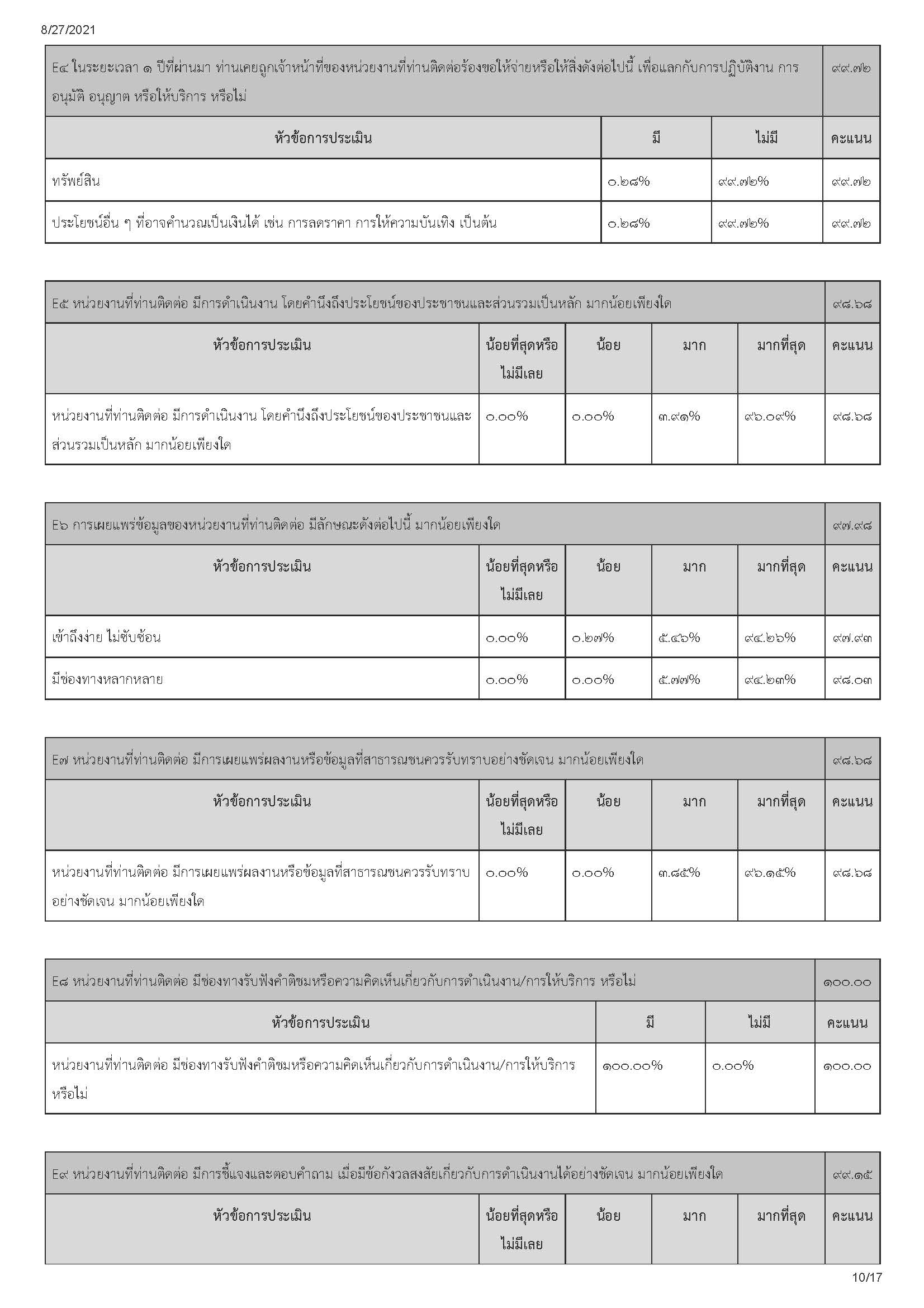 ผลการดำเนินการตามมาตรการส่งเสริมคุณธรรมและความโปร่งใสภายในหน่วยงาน