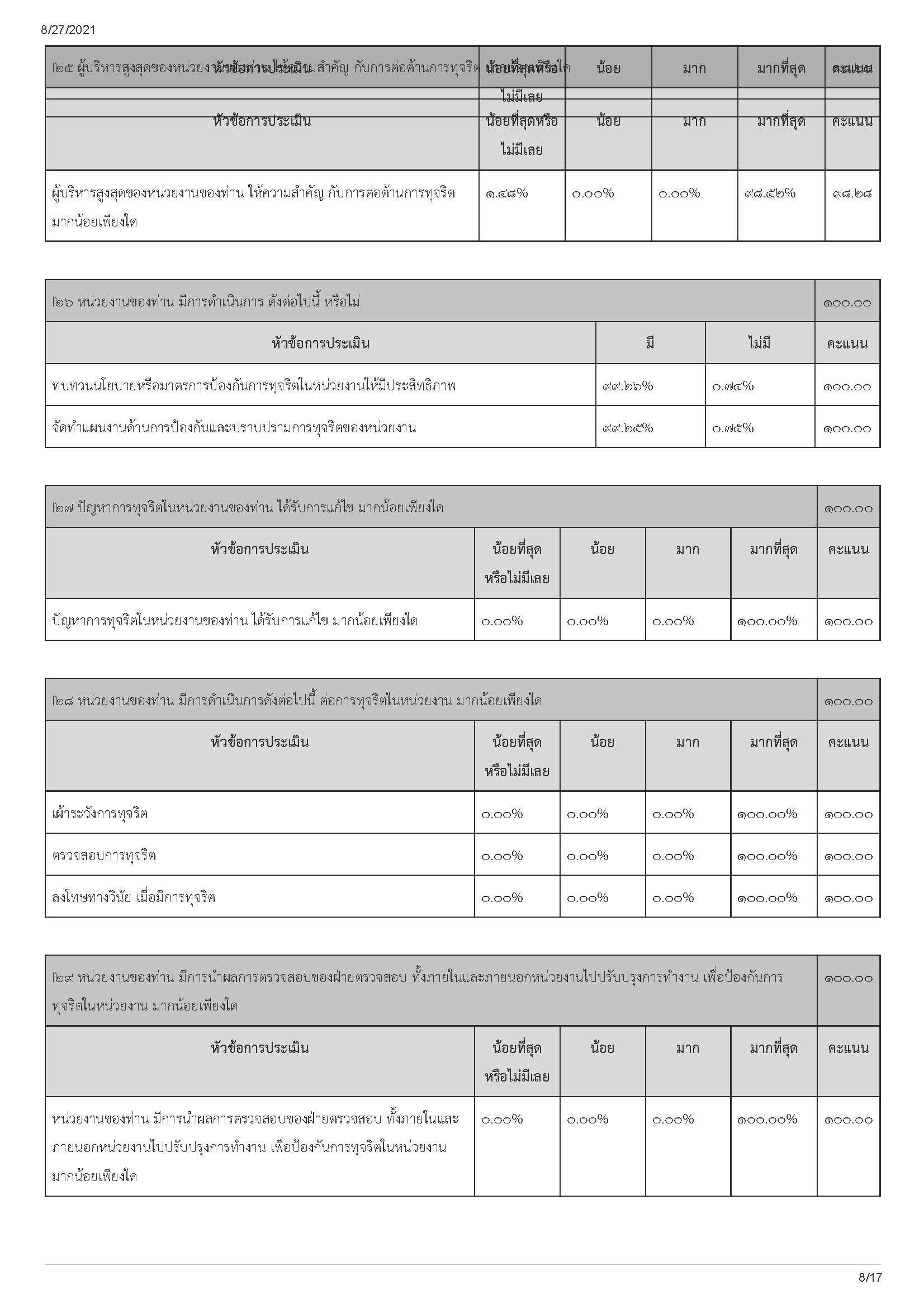 รายงานการติดตามผลการดำเนินงานตามแผนป้องกันการทุจริต
