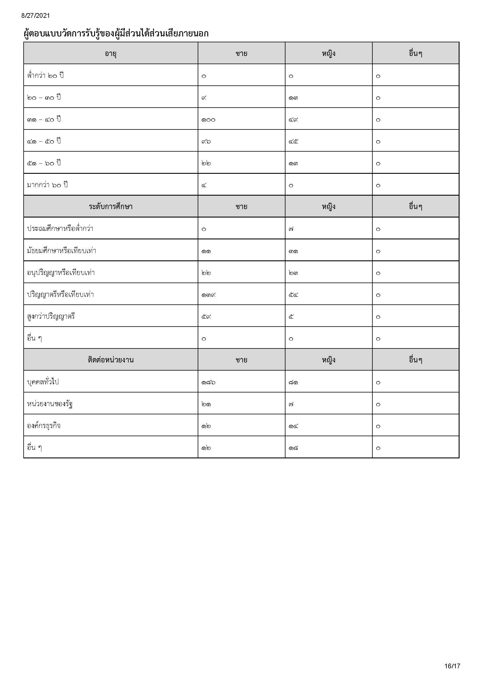 สรุปสถิติผู้ตอบแบบสอบถามความพึงพอใจการให้บริการเว็บไซต์