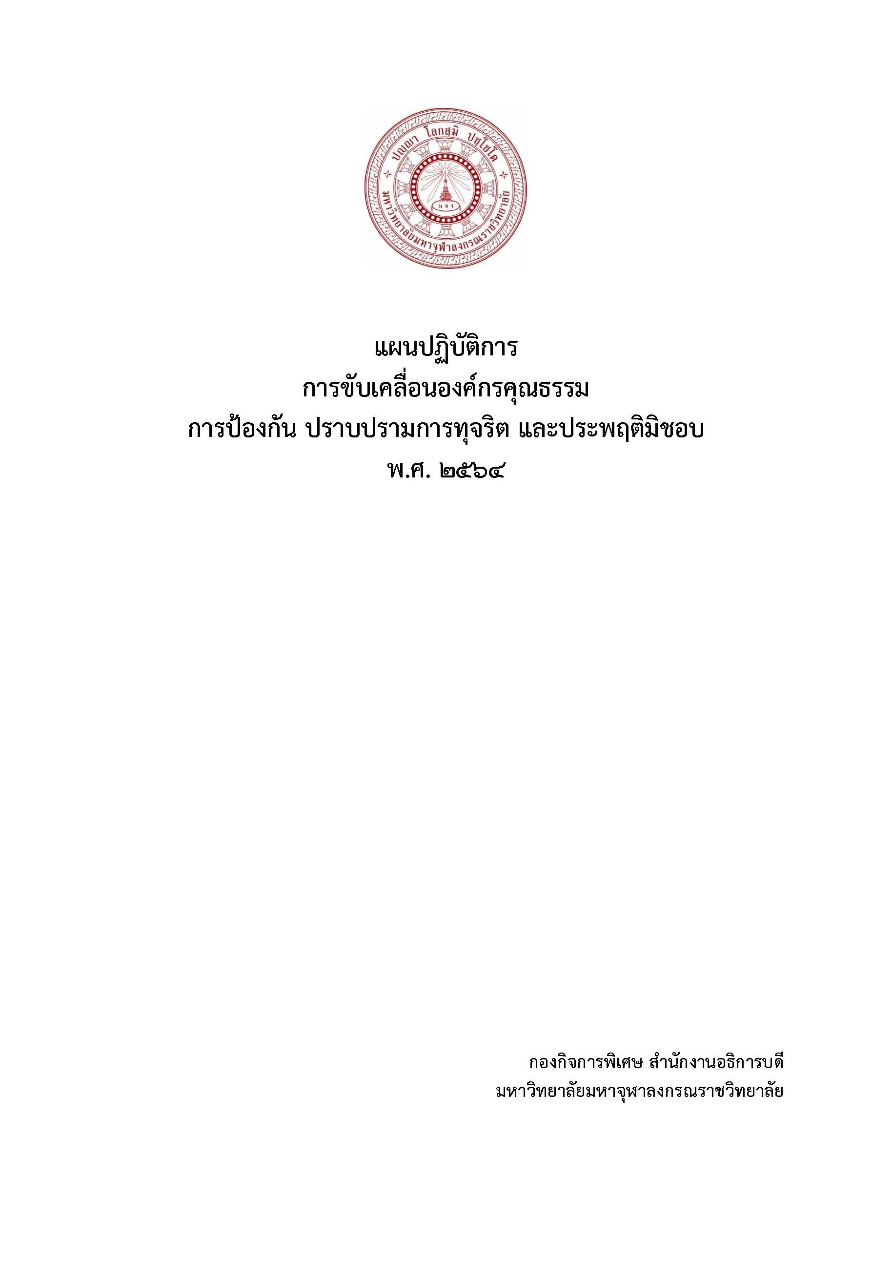 มหาวิทยาลัยมหาจุฬาลงกรณราชวิทยาลัย ได้แต่งตั้งคณะกรรมการจัดทำแผนปฏิบัติการว่าด้วยการป้องกันการทุจริต พ.ศ. ๒๕๖๔ ขึ้น โดยมีผู้ทรงคุณวุฒิภายนอกร่วมนำผลการประเมินคุณธรรมและความโปร่งใสฯ ปี 2563 มาวิเคราะห์ จนนำไปสู่แผนแม่บท การขับเคลื่อนองค์กรคุณธรรมและการป้องกันและปราบปรามการทุจริต และประพฤติมิชอบมหาวิทยาลัยมหาจุฬาลงกรณราชวิทยาลัย และ แผนปฏิบัติการการขับเคลื่อนองค์กรคุณธรรม การป้องกันปราบปรามการทุจริต แล ะประพฤติมิชอบ พ.ศ. ๒๕๖๔ ซึ่งสามารถดาวน์โหลดได้ดังนี้