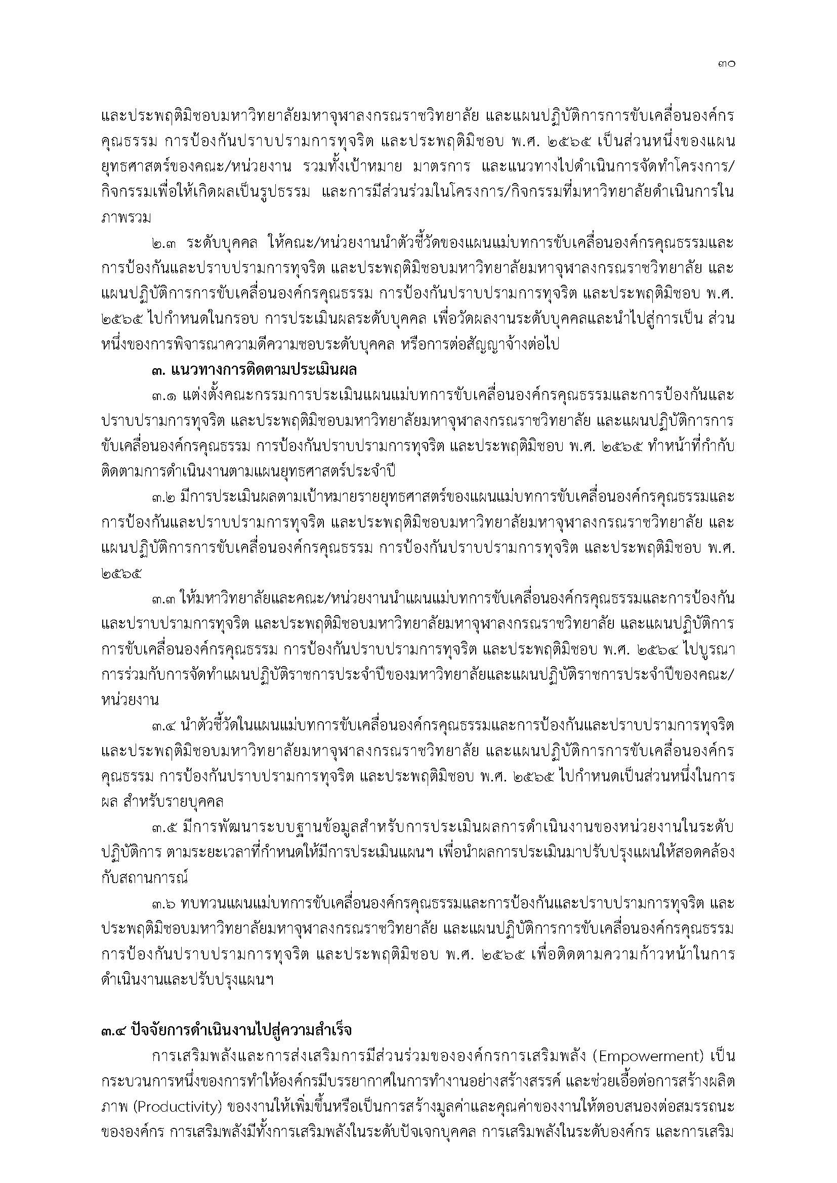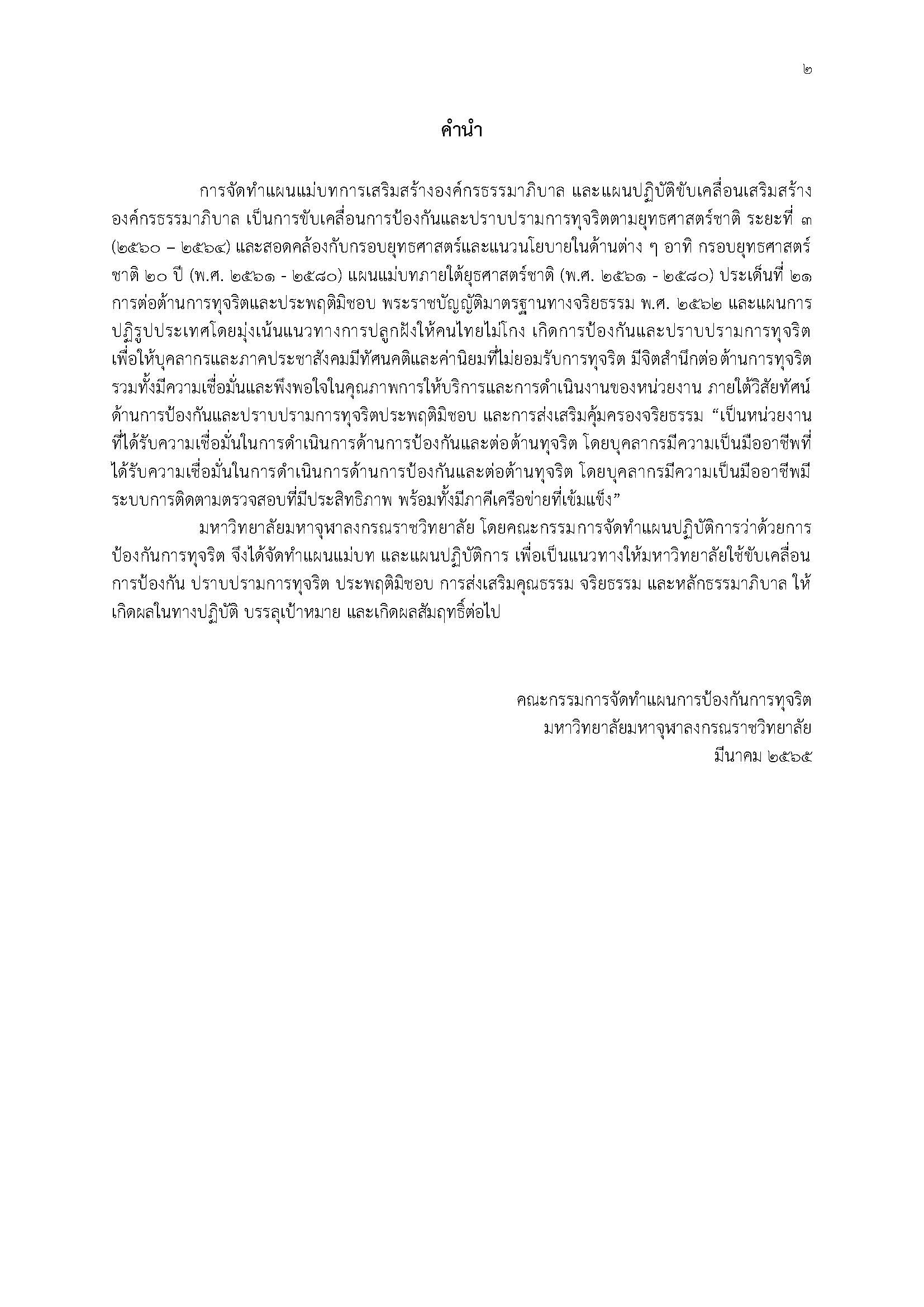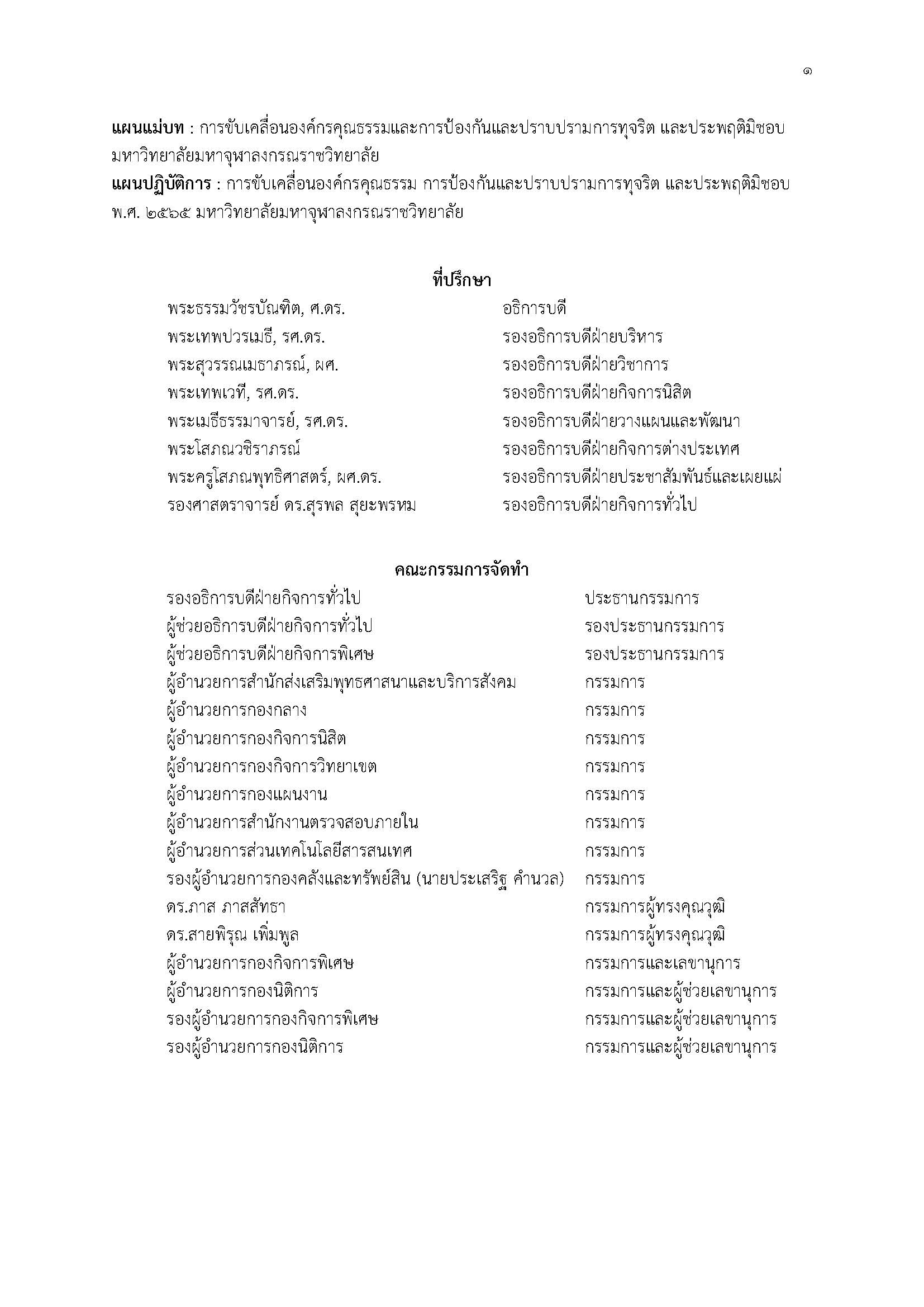 แผนแม่บท การขับเคลื่อนองค์กรคุณธรรม และการป้องกันและปราบปรามการทุจริต และประพฤติมิชอบ มหาวิทยาลัยมหาจุฬาลงกรณราชวิทยาลัย