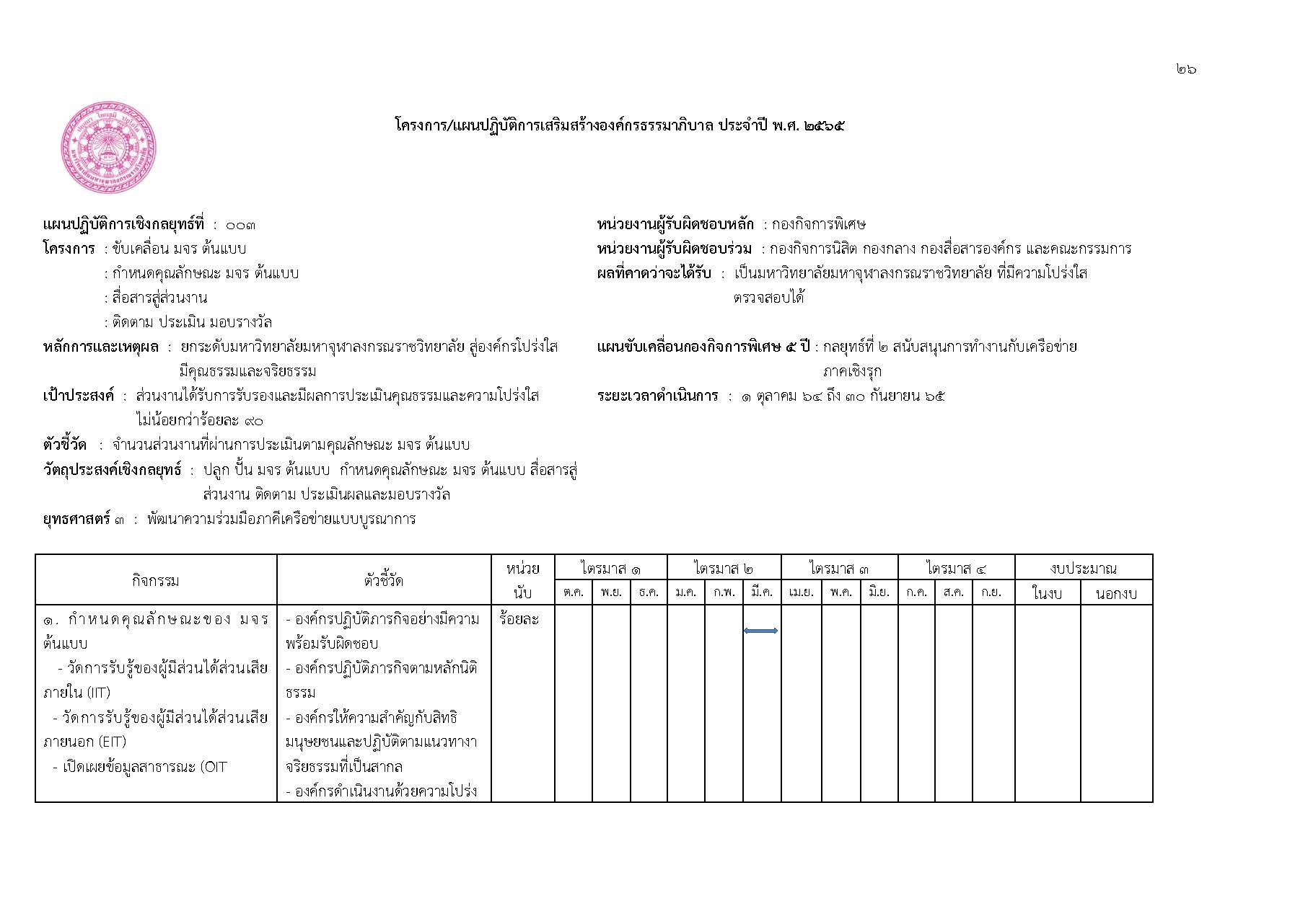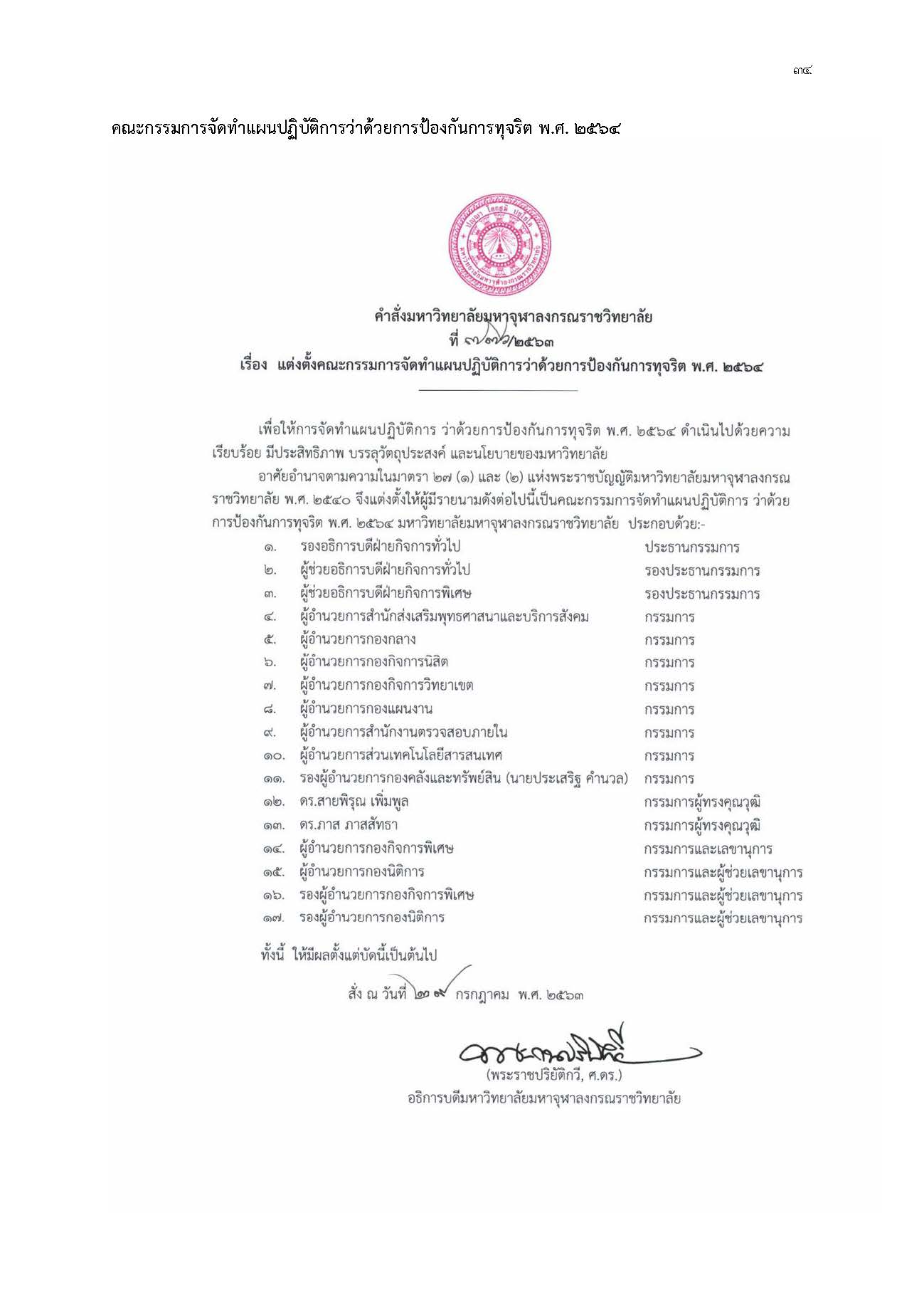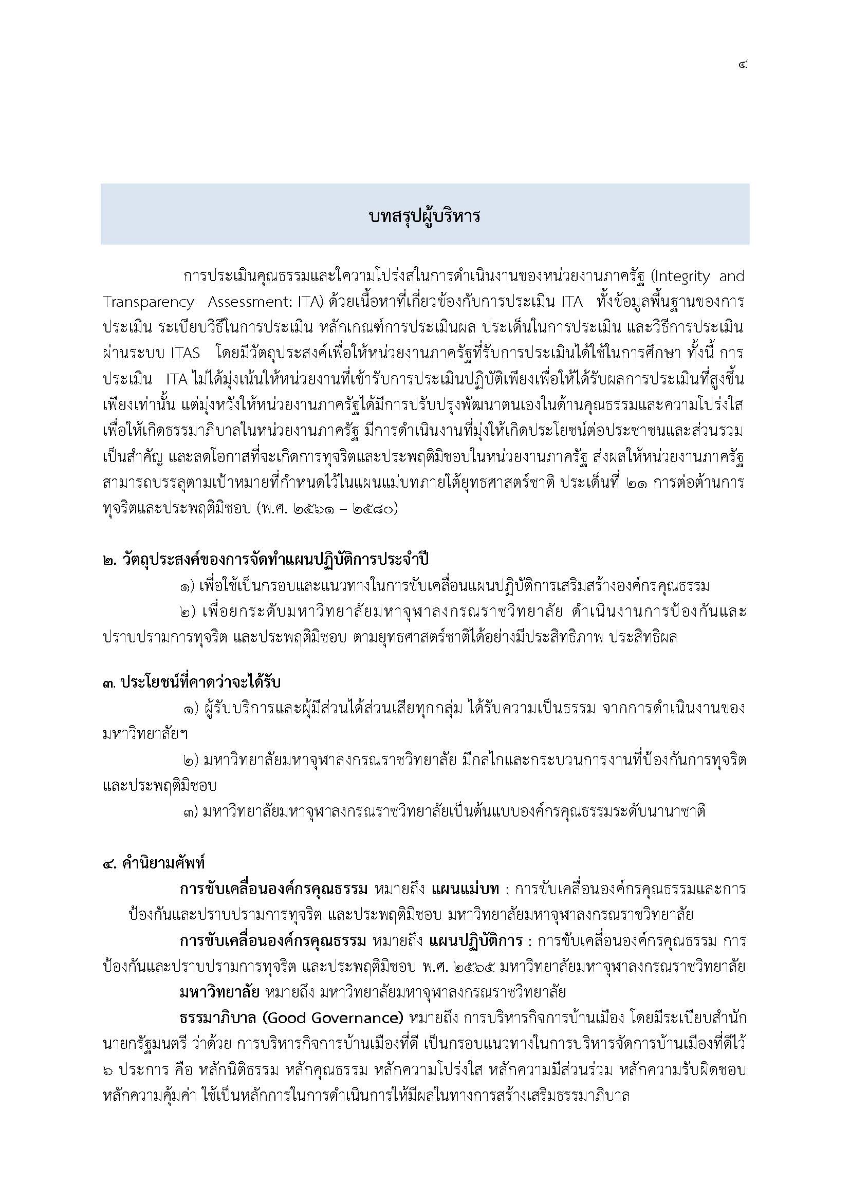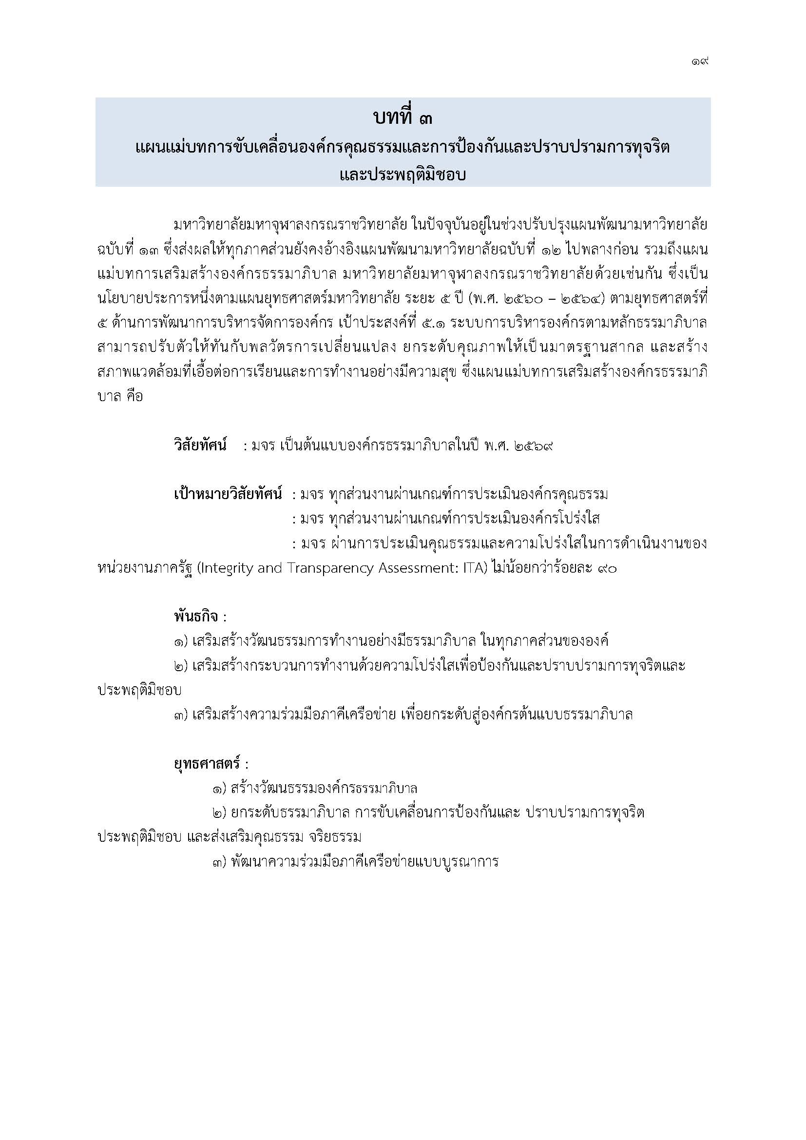 แผนแม่บท การขับเคลื่อนองค์กรคุณธรรม และการป้องกันและปราบปรามการทุจริต และประพฤติมิชอบ มหาวิทยาลัยมหาจุฬาลงกรณราชวิทยาลัย