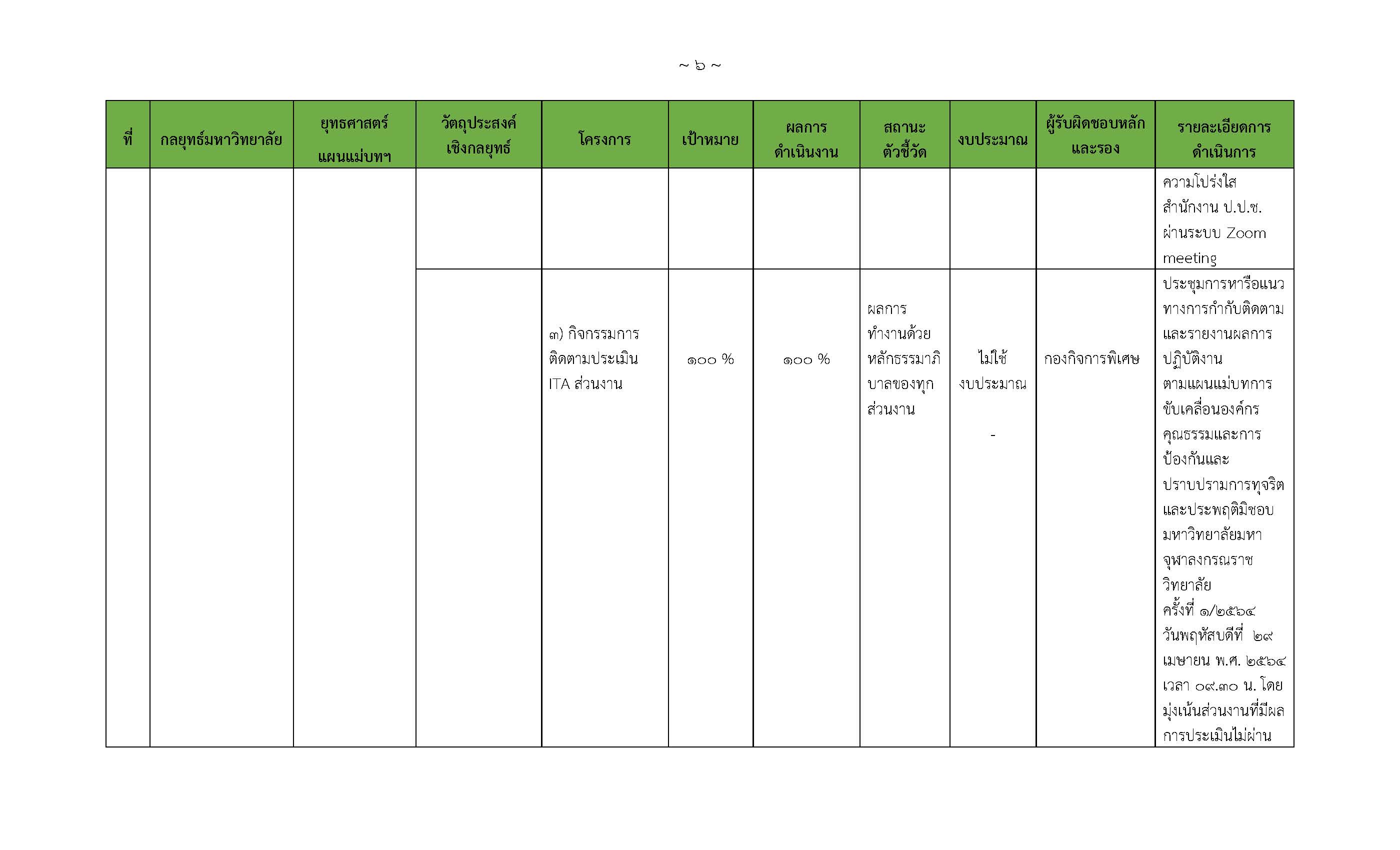 ผลการปฏิบัติงาน(Action Conclusion) ตามแผนแม่บทการเสริมสร้างองค์กรธรรมาภิบาลฯ 2564