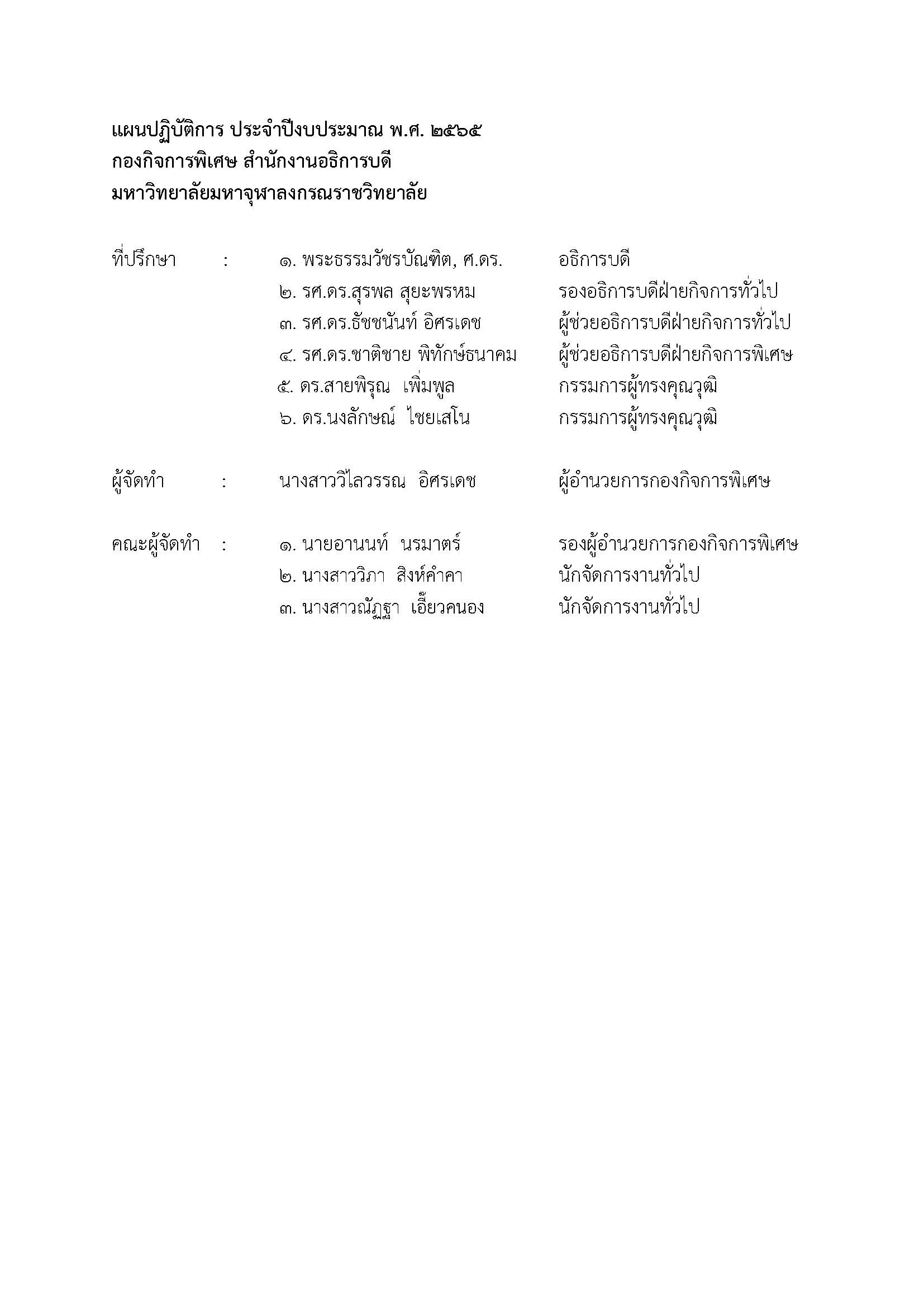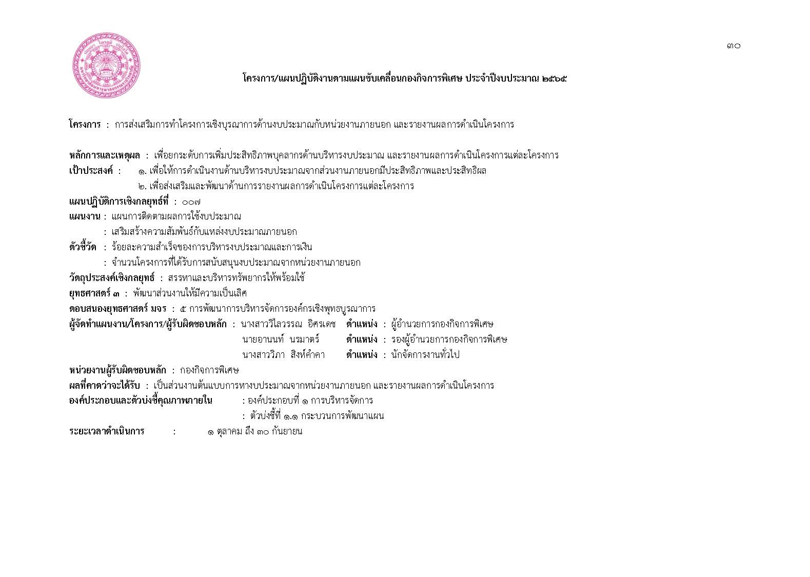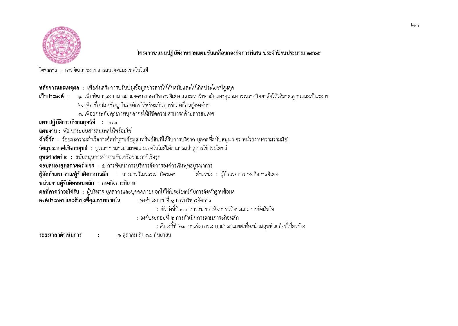 แผนปฏิบัติการประจำปีงบประมาณ พ.ศ. ๒๕๖๕