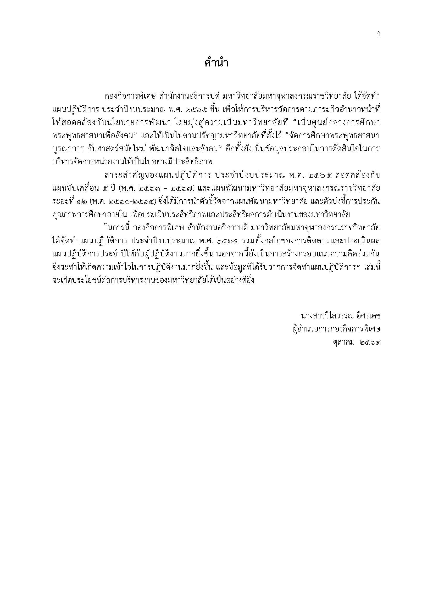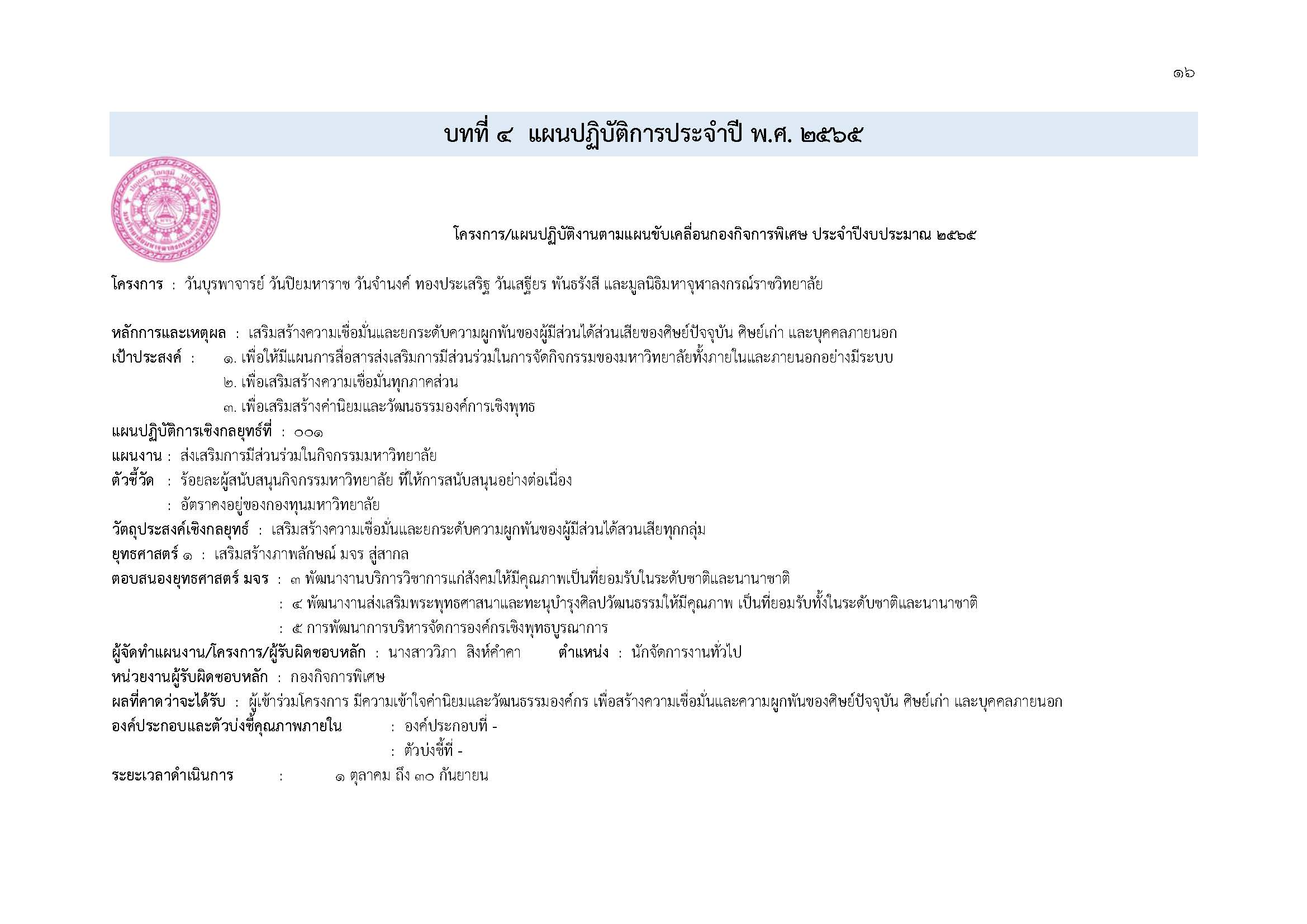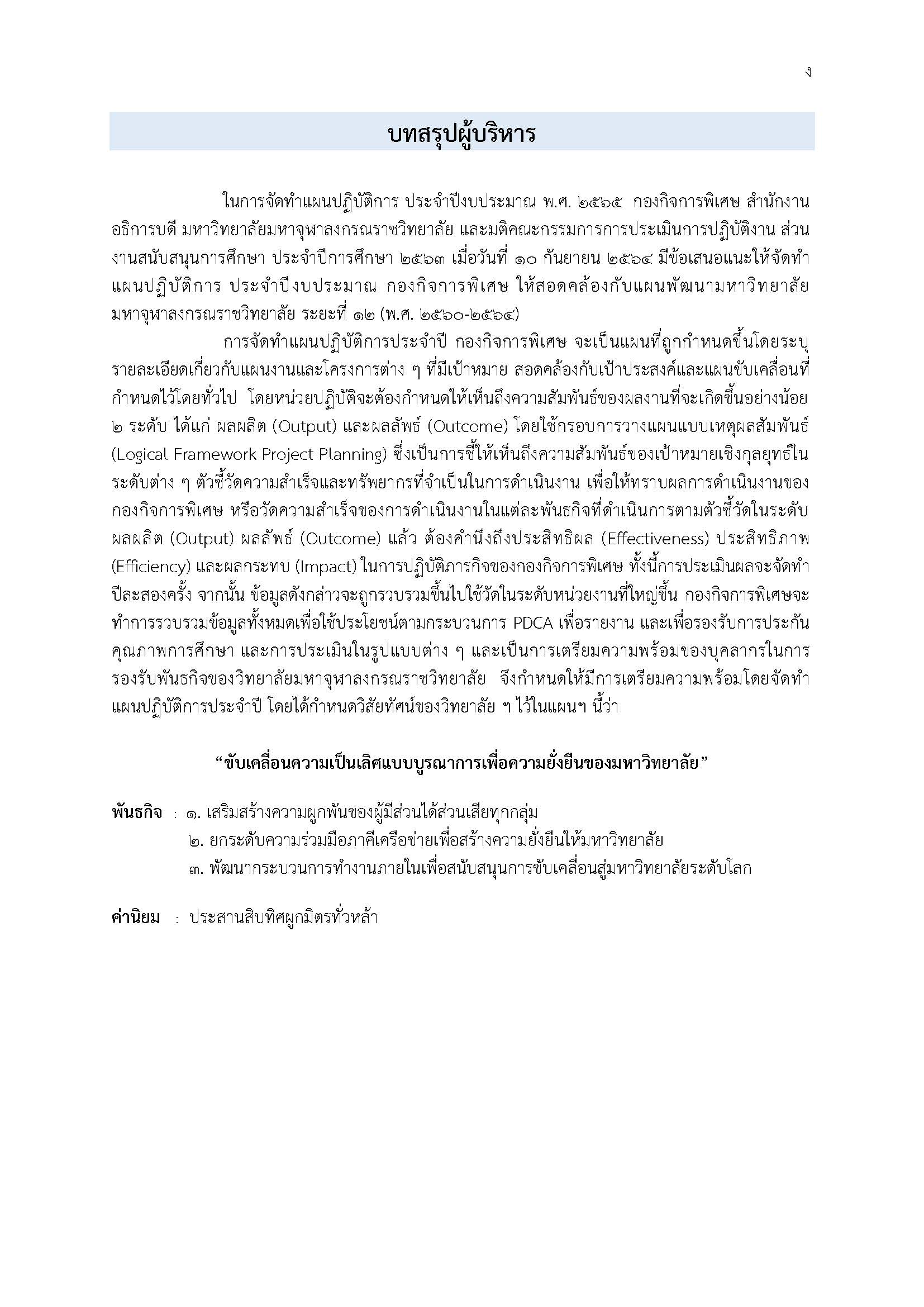 แผนปฏิบัติการประจำปีงบประมาณ พ.ศ. ๒๕๖๕