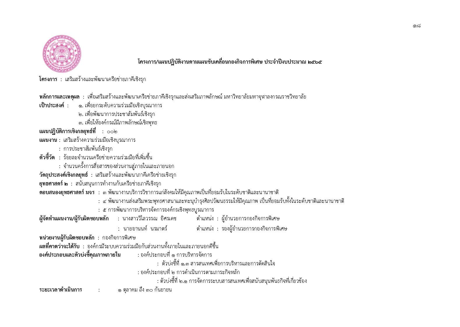 แผนแม่บท การขับเคลื่อนองค์กรคุณธรรม และการป้องกันและปราบปรามการทุจริต และประพฤติมิชอบ มหาวิทยาลัยมหาจุฬาลงกรณราชวิทยาลัย