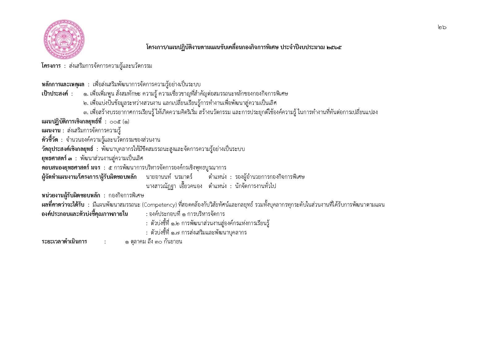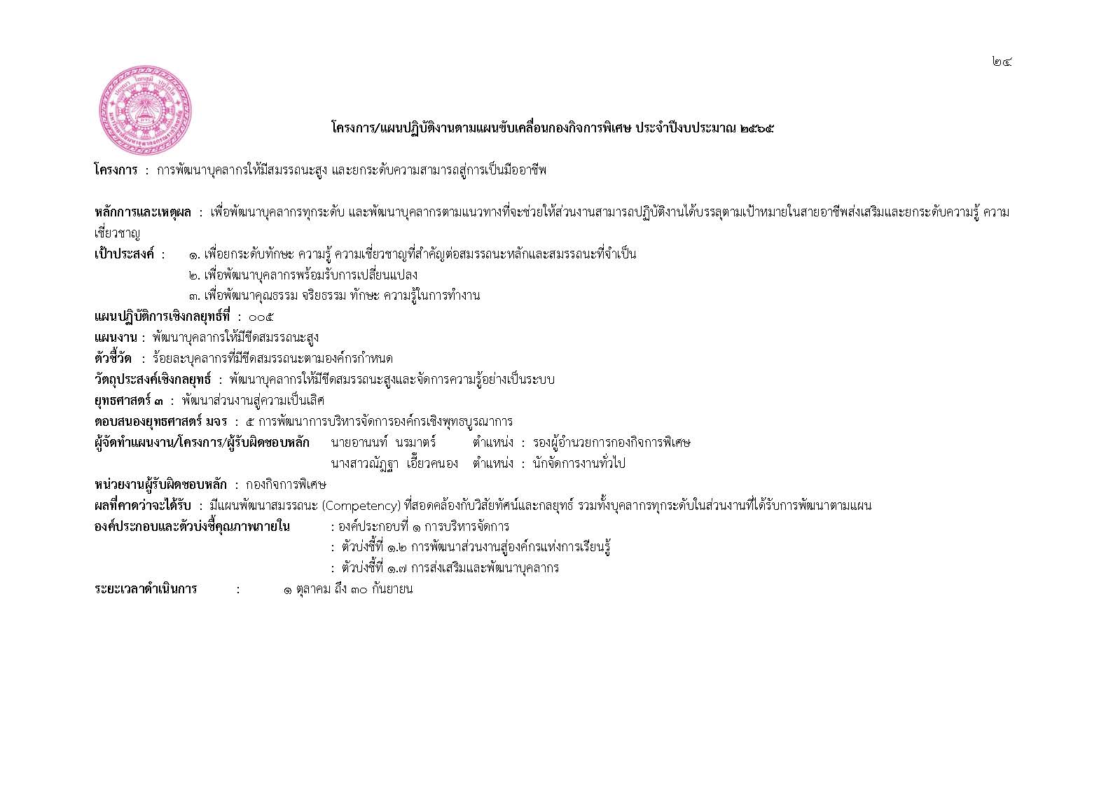 แผนขับเคลื่อนกองกิจการพิเศษ/แผนปฏิบัติการประจำปี