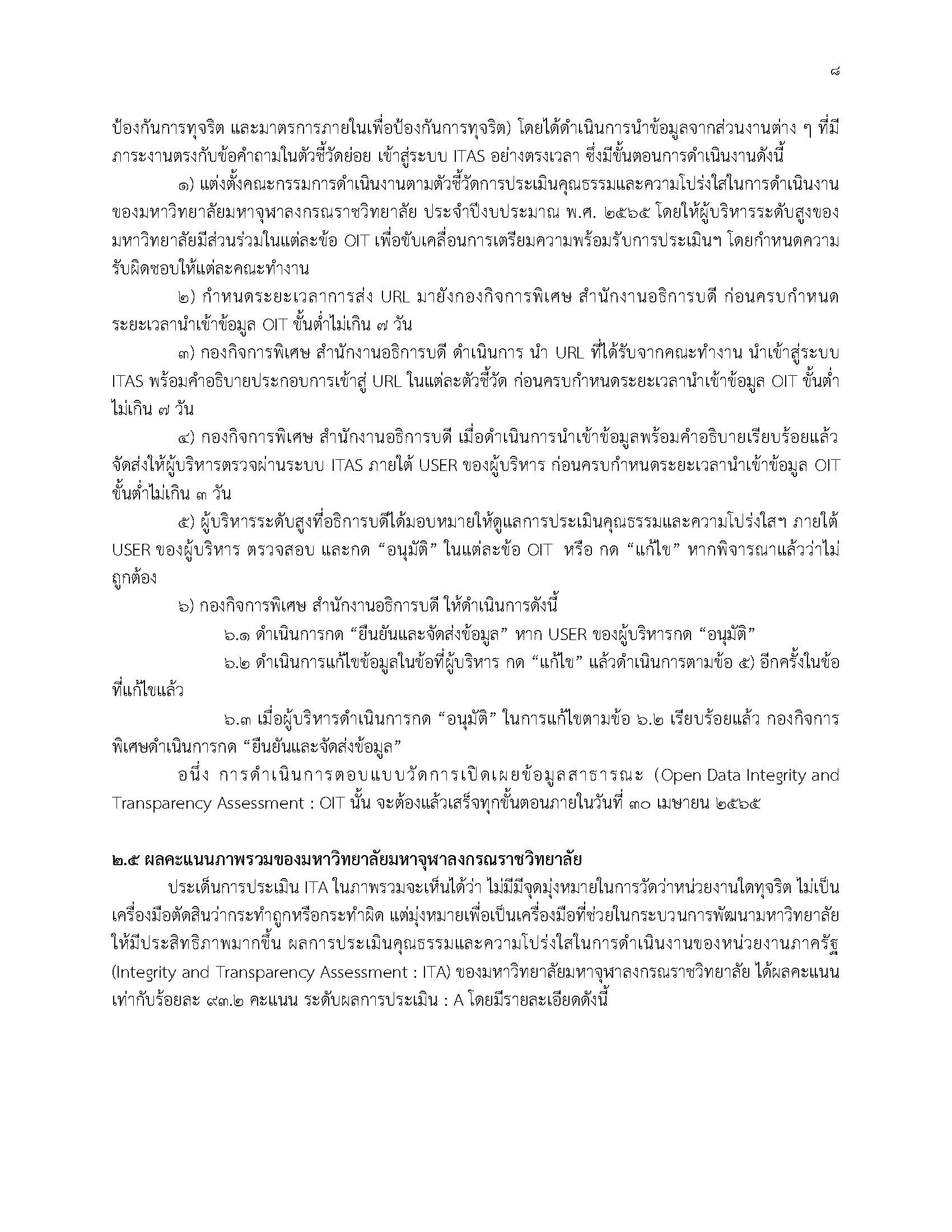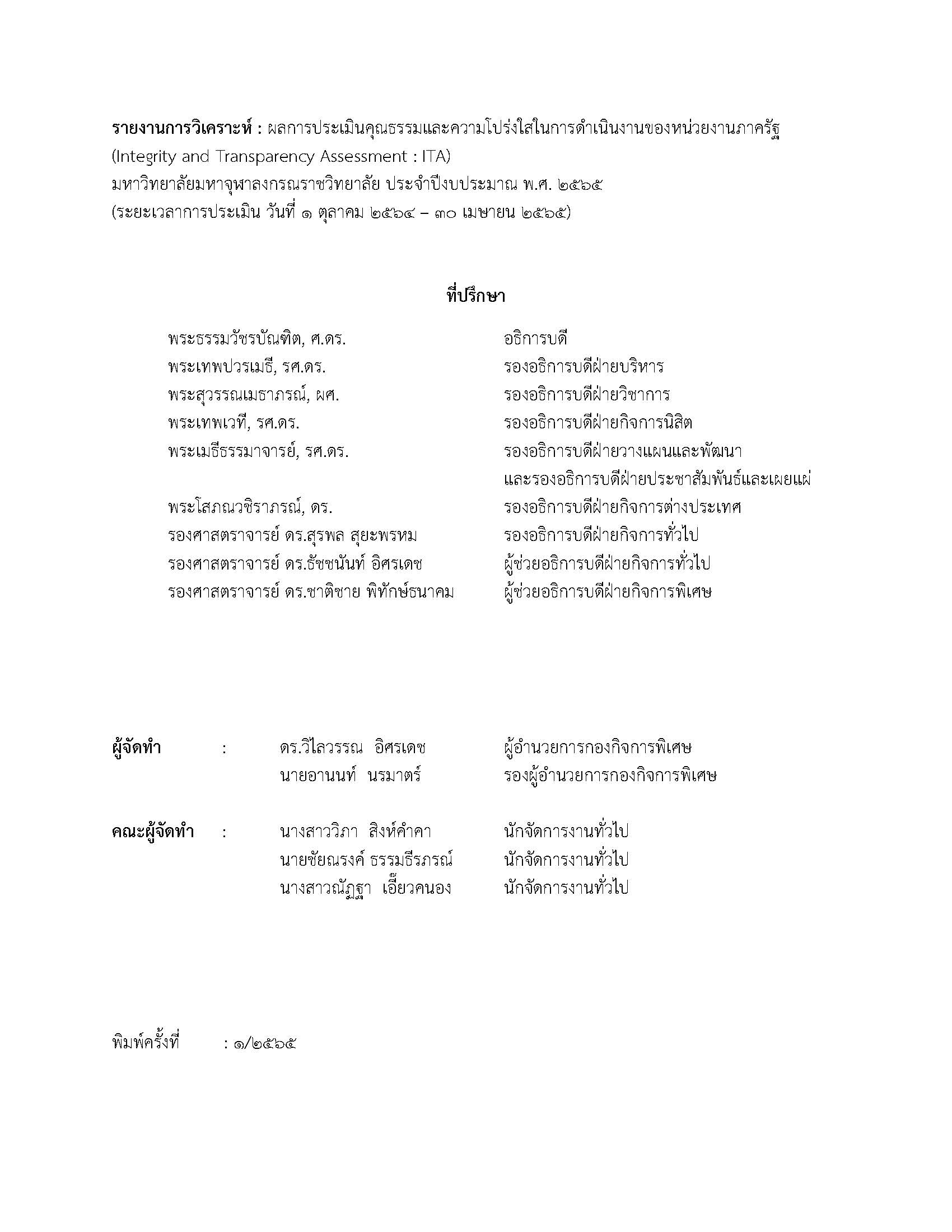รายงานการวิเคราะห์ผลการประเมินคุณธรรมและความโปร่งใสในการดำเนินงานของหน่วยงานภาครัฐ (Integrity and Transparency Assessment : ITA) มหาวิทยาลัยมหาจุฬาลงกรณราชวิทยาลัย จากผลการประเมินผ่านระบบ ITAS ประจำปีงบประมาณ พ.ศ. ๒๕๖๗