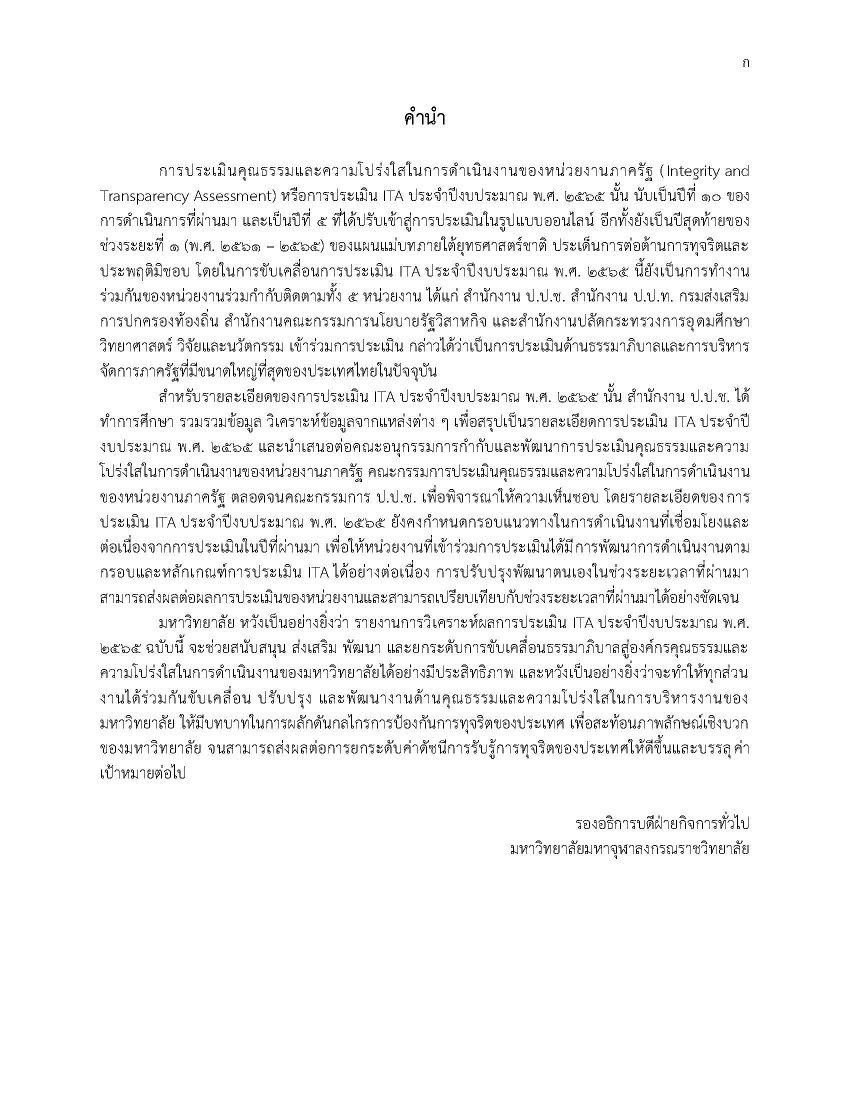 รายงานการวิเคราะห์ผลการประเมินคุณธรรมและความโปร่งใส 2565