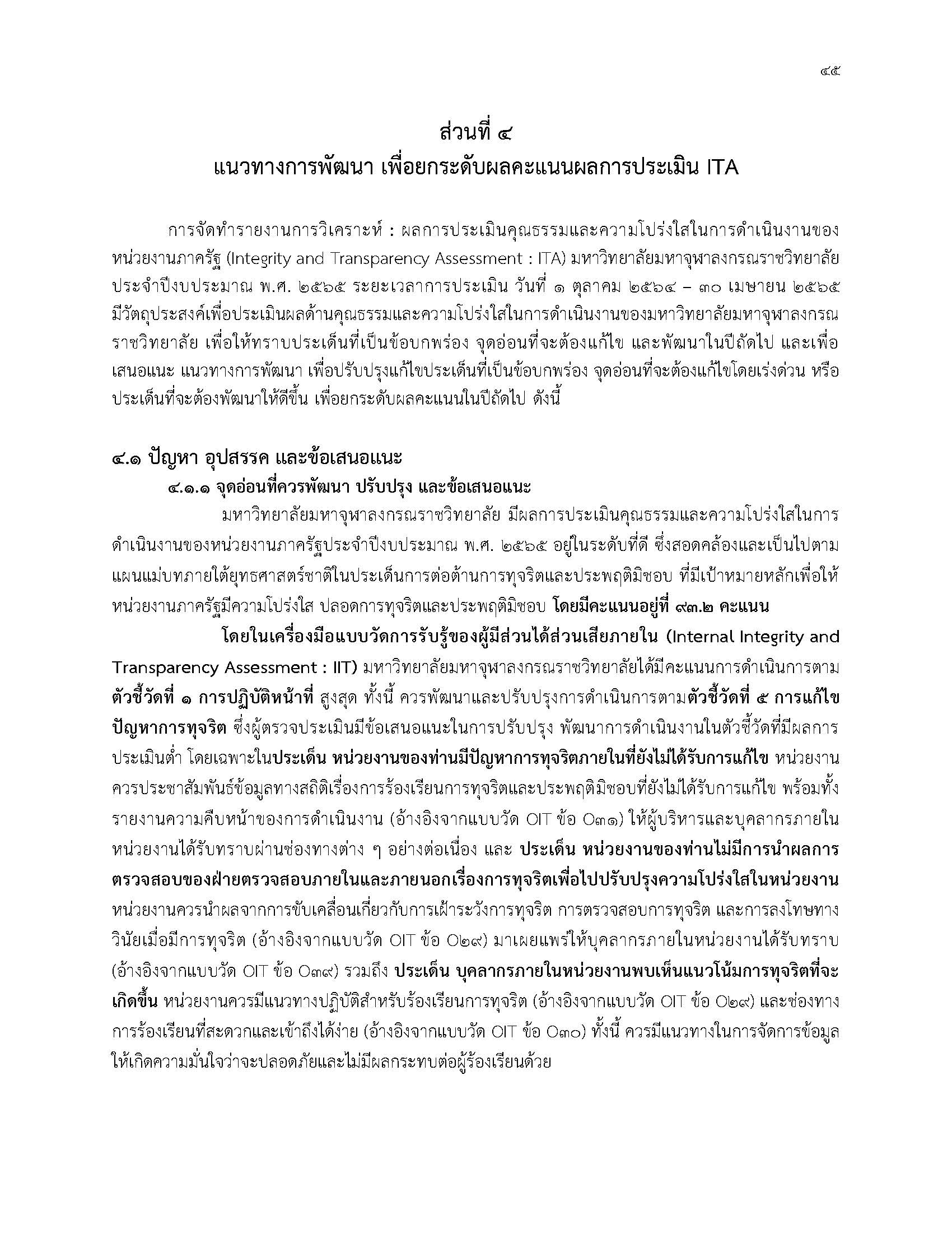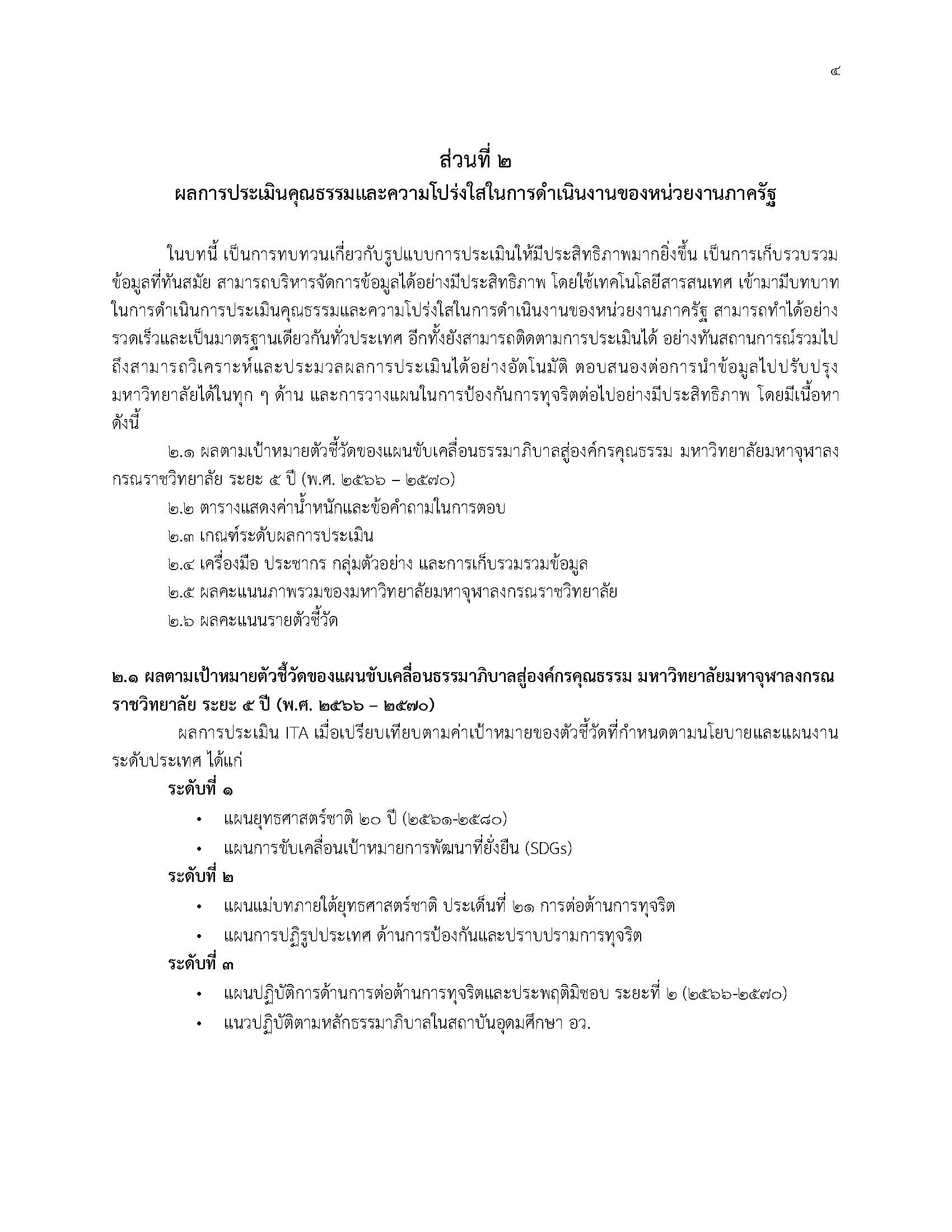 รายงานการวิเคราะห์ผลการประเมินคุณธรรมและความโปร่งใสในการดำเนินงานของหน่วยงานภาครัฐ (Integrity and Transparency Assessment : ITA) มหาวิทยาลัยมหาจุฬาลงกรณราชวิทยาลัย จากผลการประเมินผ่านระบบ ITAS ประจำปีงบประมาณ พ.ศ. ๒๕๖๖