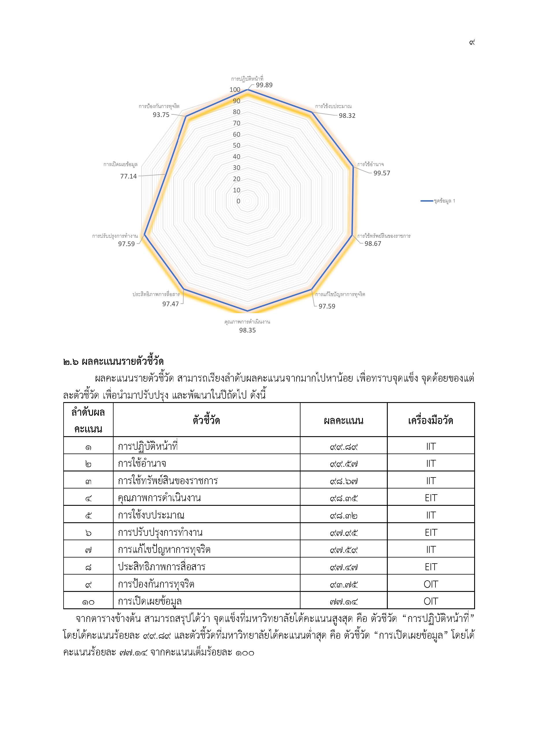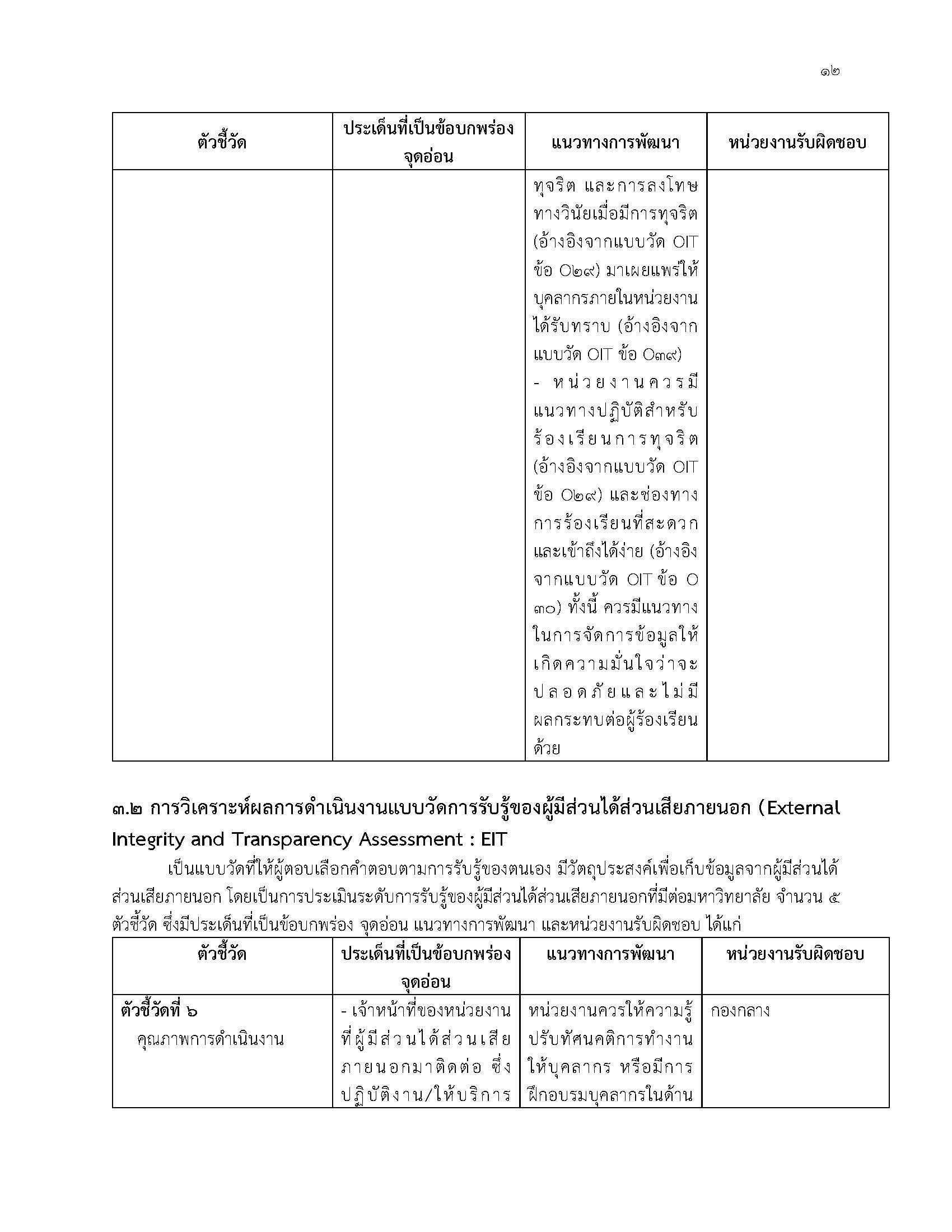 ผลการดำเนินการตามมาตรการส่งเสริมคุณธรรมและความโปร่งใสภายในหน่วยงาน