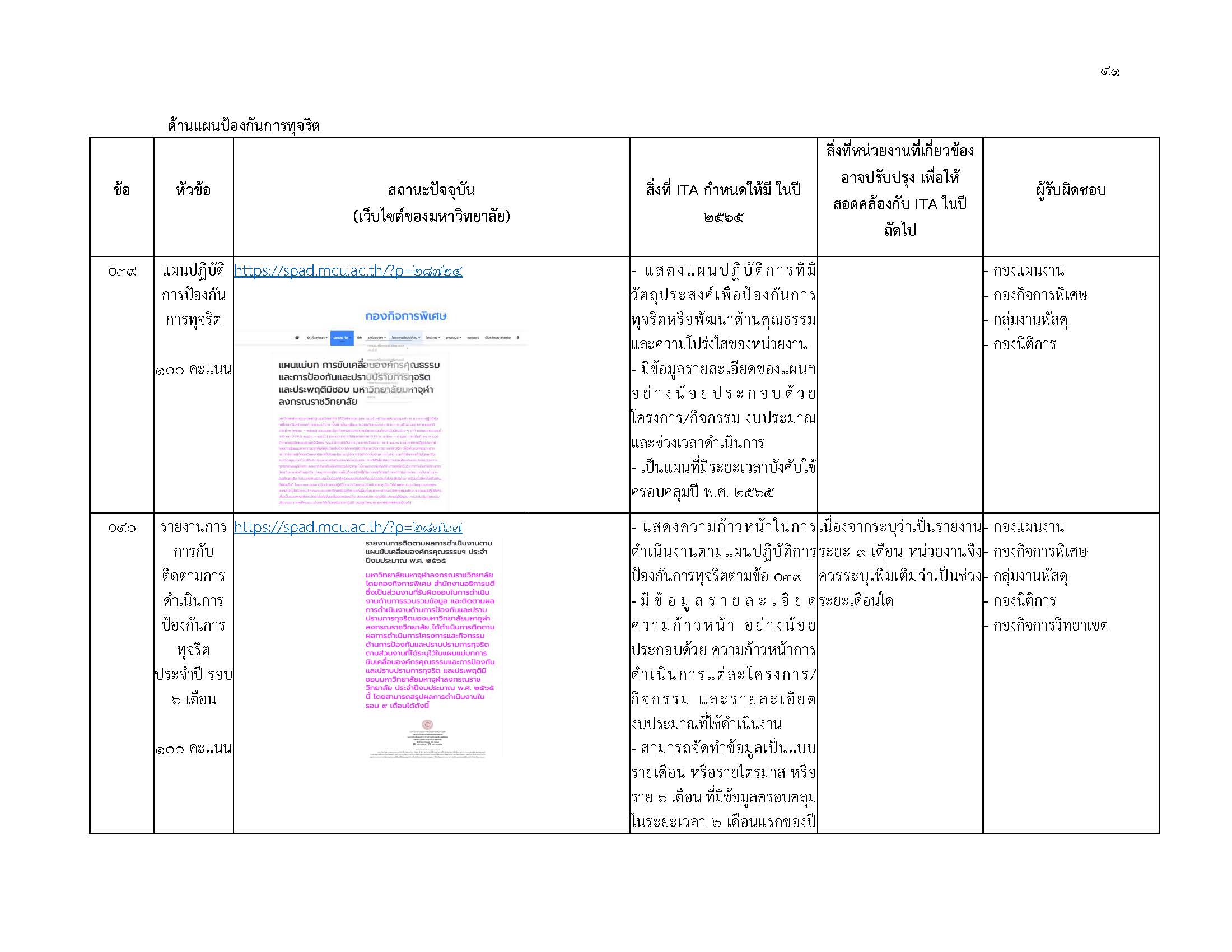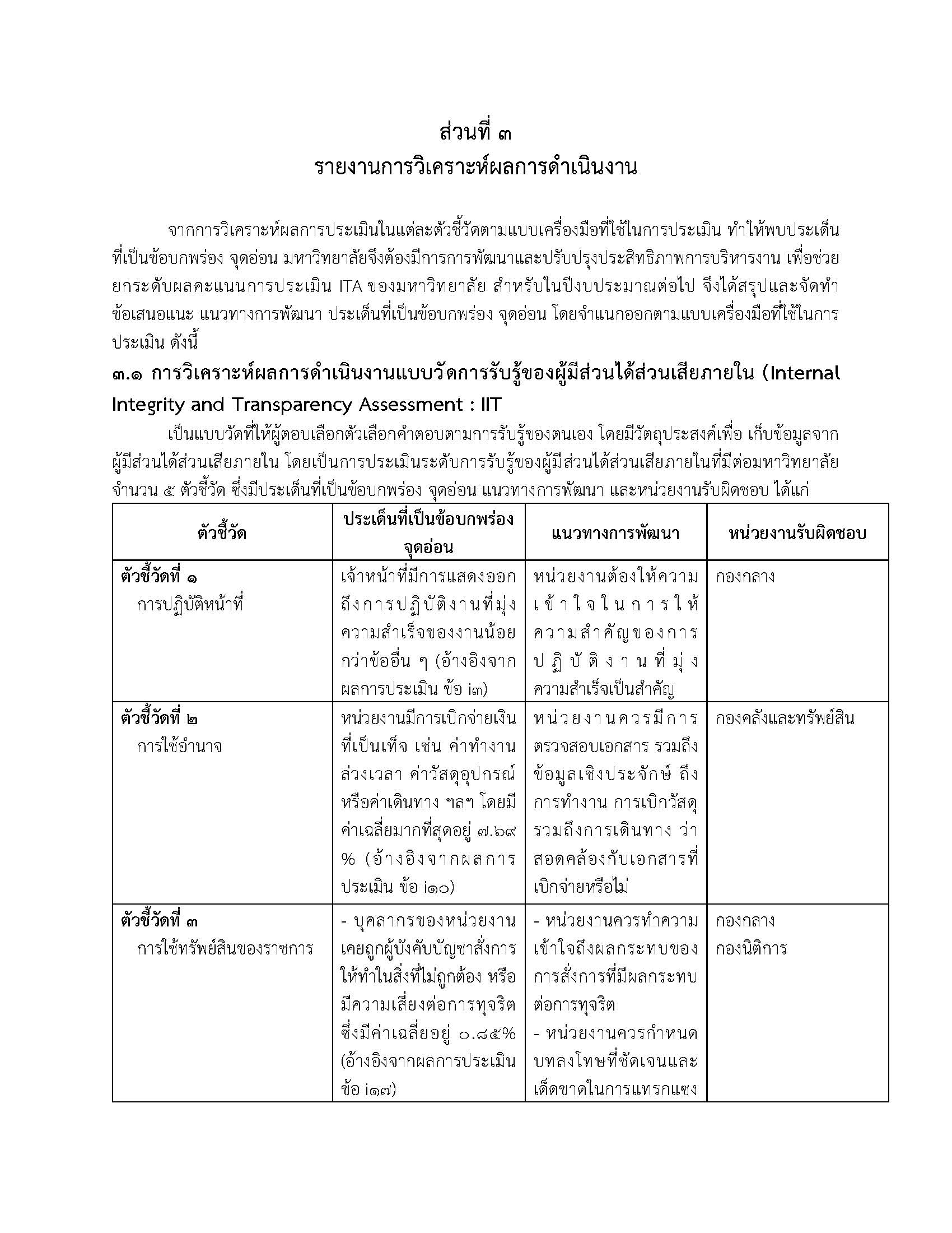 รายงานการติดตามผลการดำเนินงานตามแผนป้องกันการทุจริต