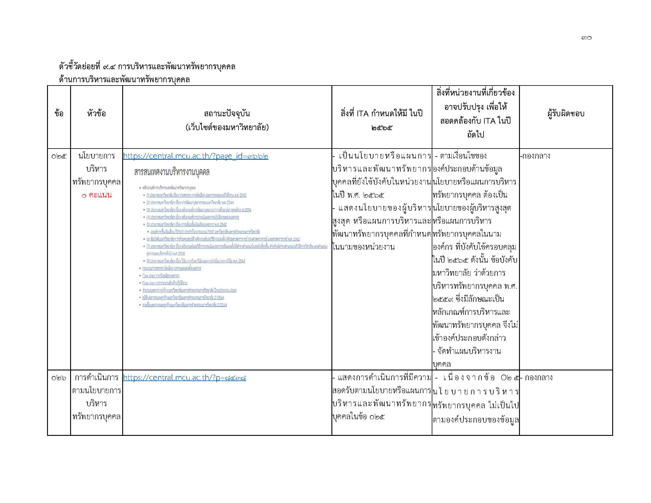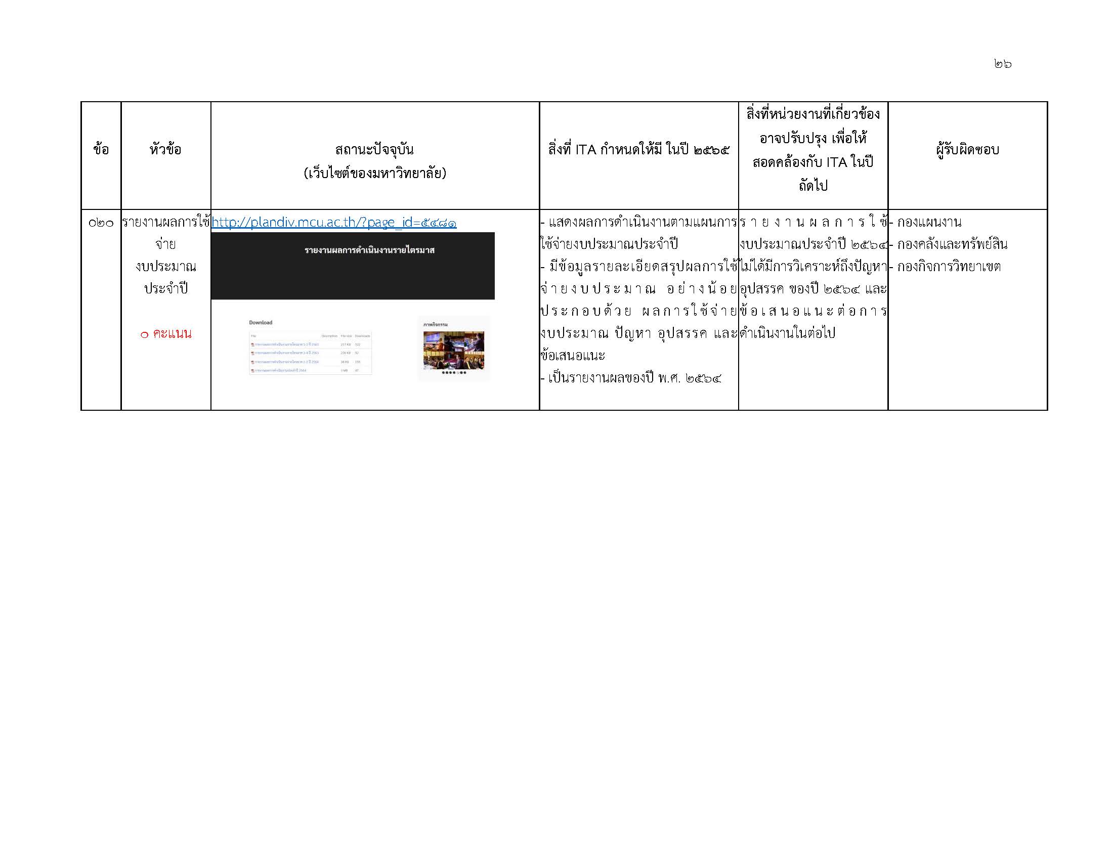 ผลการประเมิน ITA มจร 2564