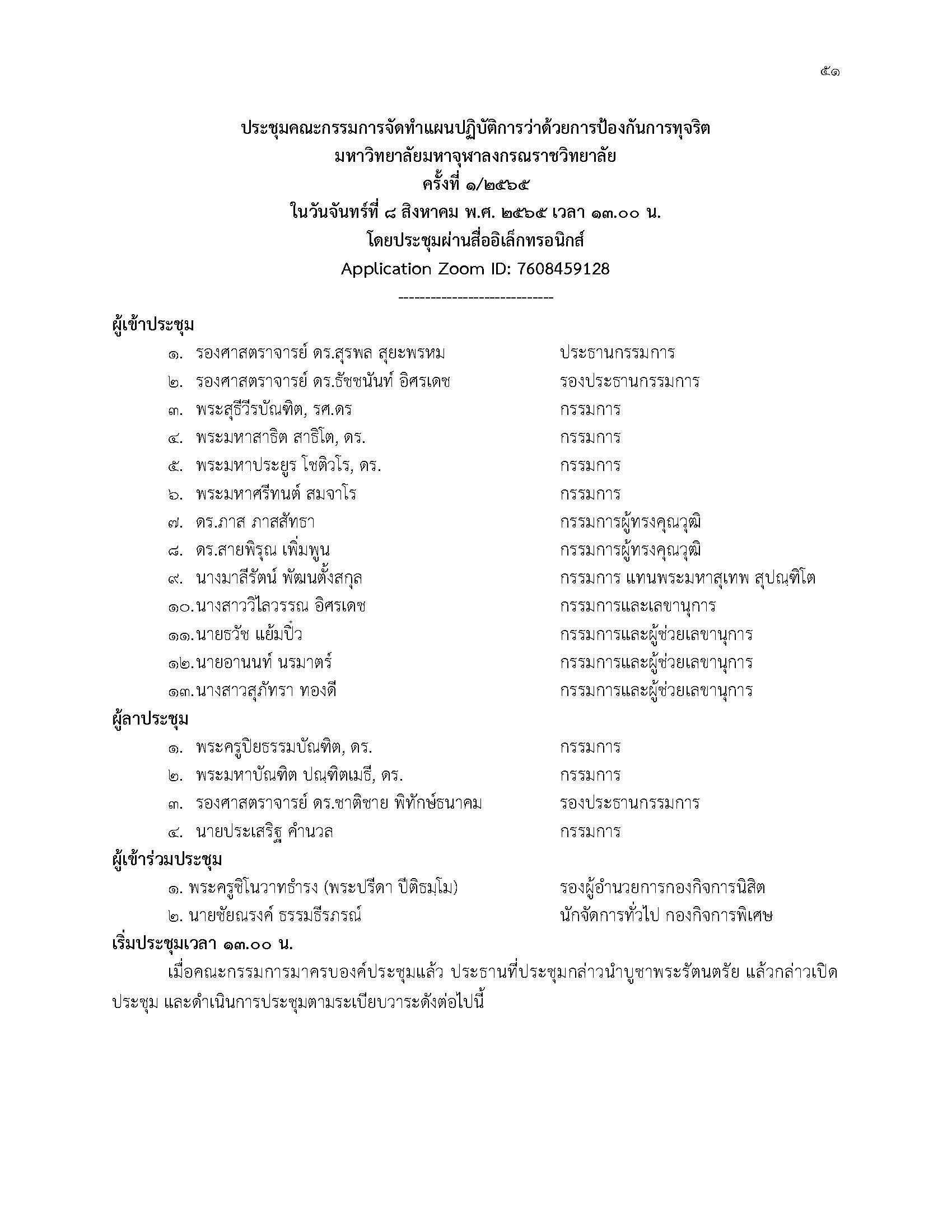 แผนแม่บท การขับเคลื่อนองค์กรคุณธรรม และการป้องกันและปราบปรามการทุจริต และประพฤติมิชอบ มหาวิทยาลัยมหาจุฬาลงกรณราชวิทยาลัย