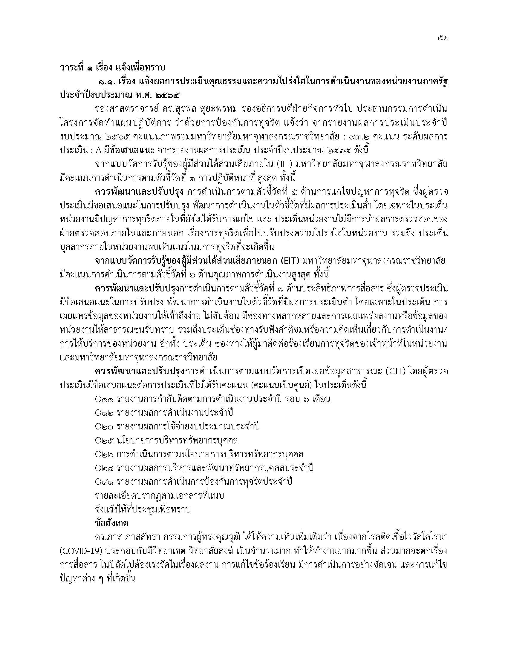 รายงานผลการดำเนินการเพื่อส่งเสริมคุณธรรมและความโปร่งใสภายในหน่วยงานมาตรการส่งเสริมคุณธรรม ของมหาวิทยาลัยมหาจุฬาลงกรณราชวิทยาลัย ประจำปีงบประมาณ พ.ศ. ๒๕๖๗