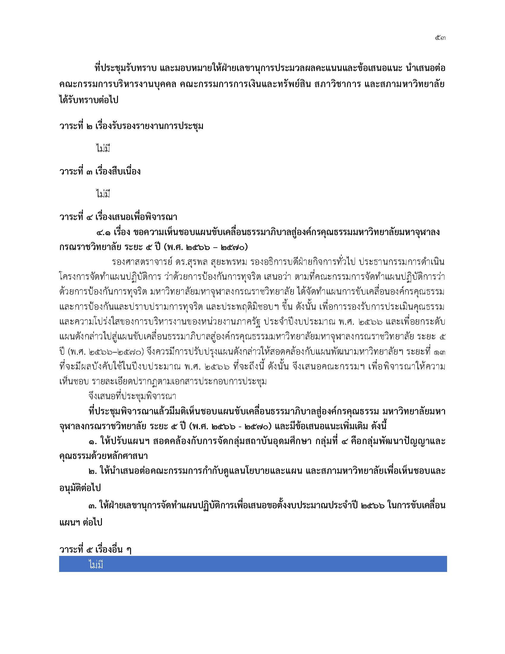 แผนขับเคลื่อนธรรมาภิบาลสู่องค์กรคุณธรรม มหาวิทยาลัยมหาจุฬาลงกรณราชวิทยาลัย ระยะ ๕ ปี (พ.ศ. ๒๕๖๖ – ๒๕๗๐)