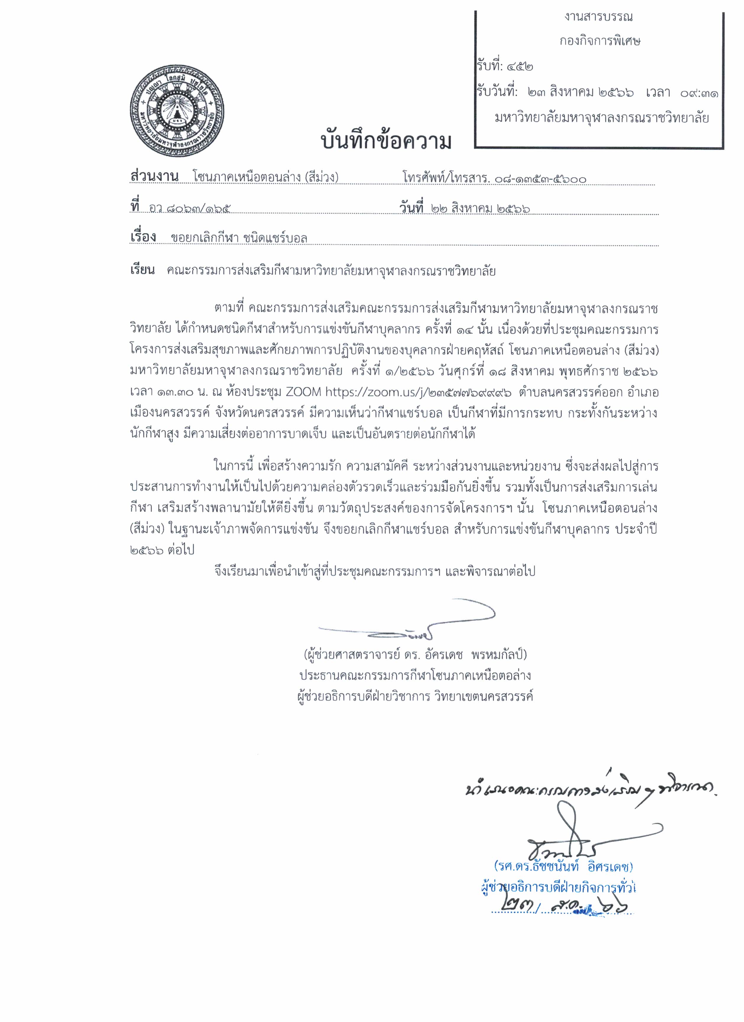 ขอยกเลิกจัดกีฬาแชร์บอล