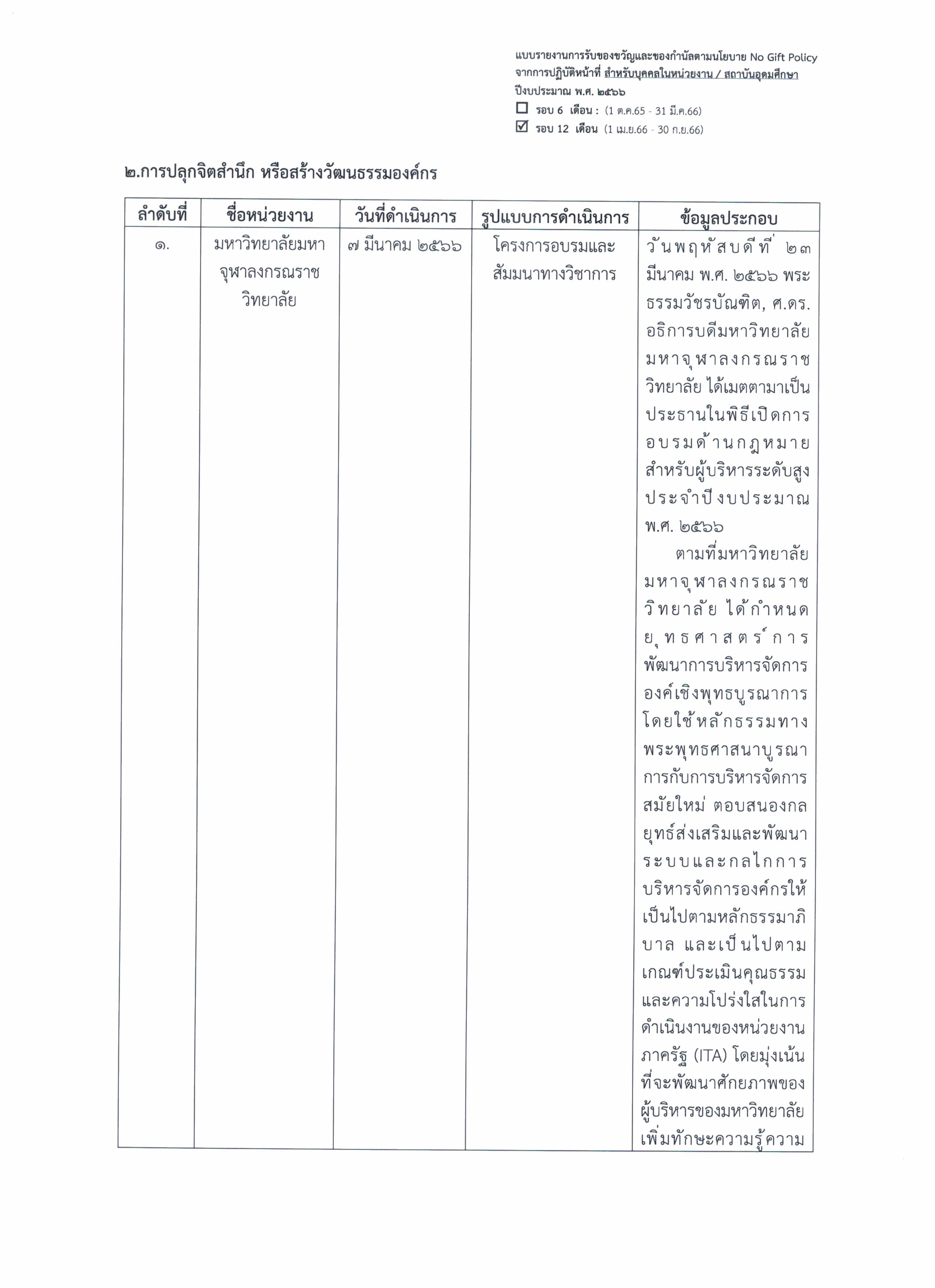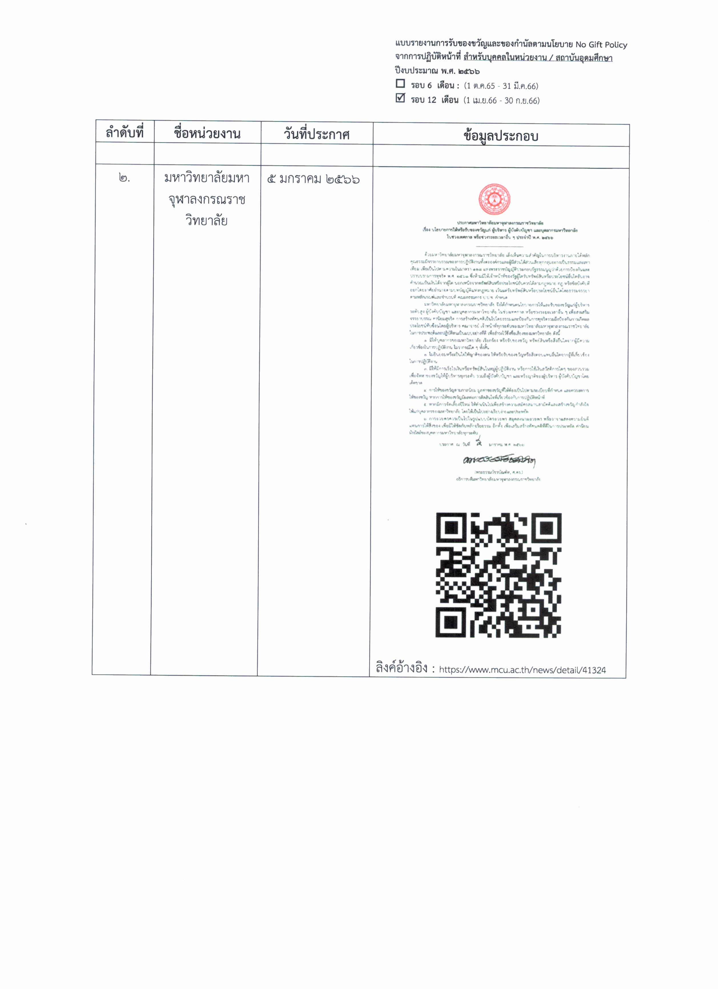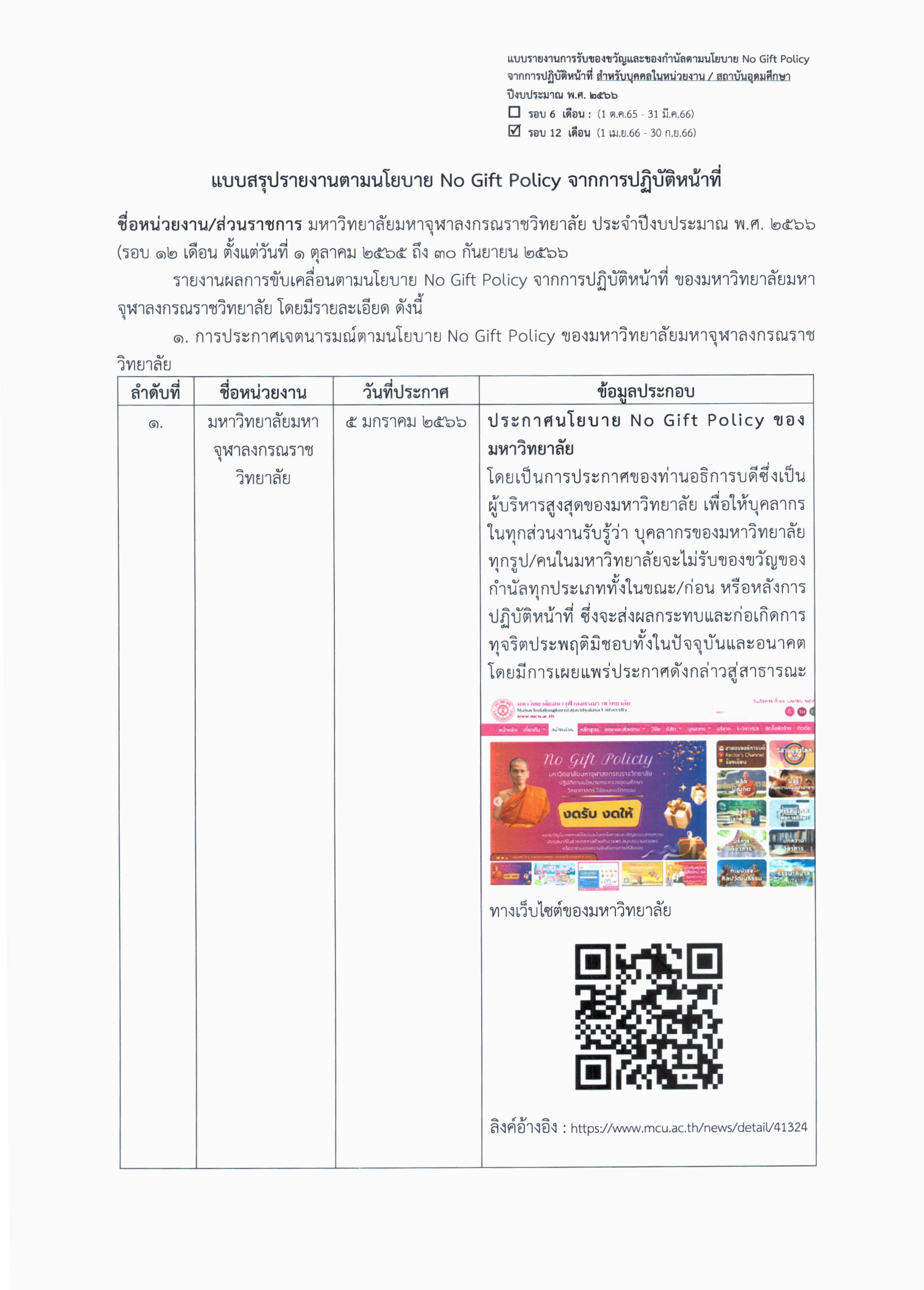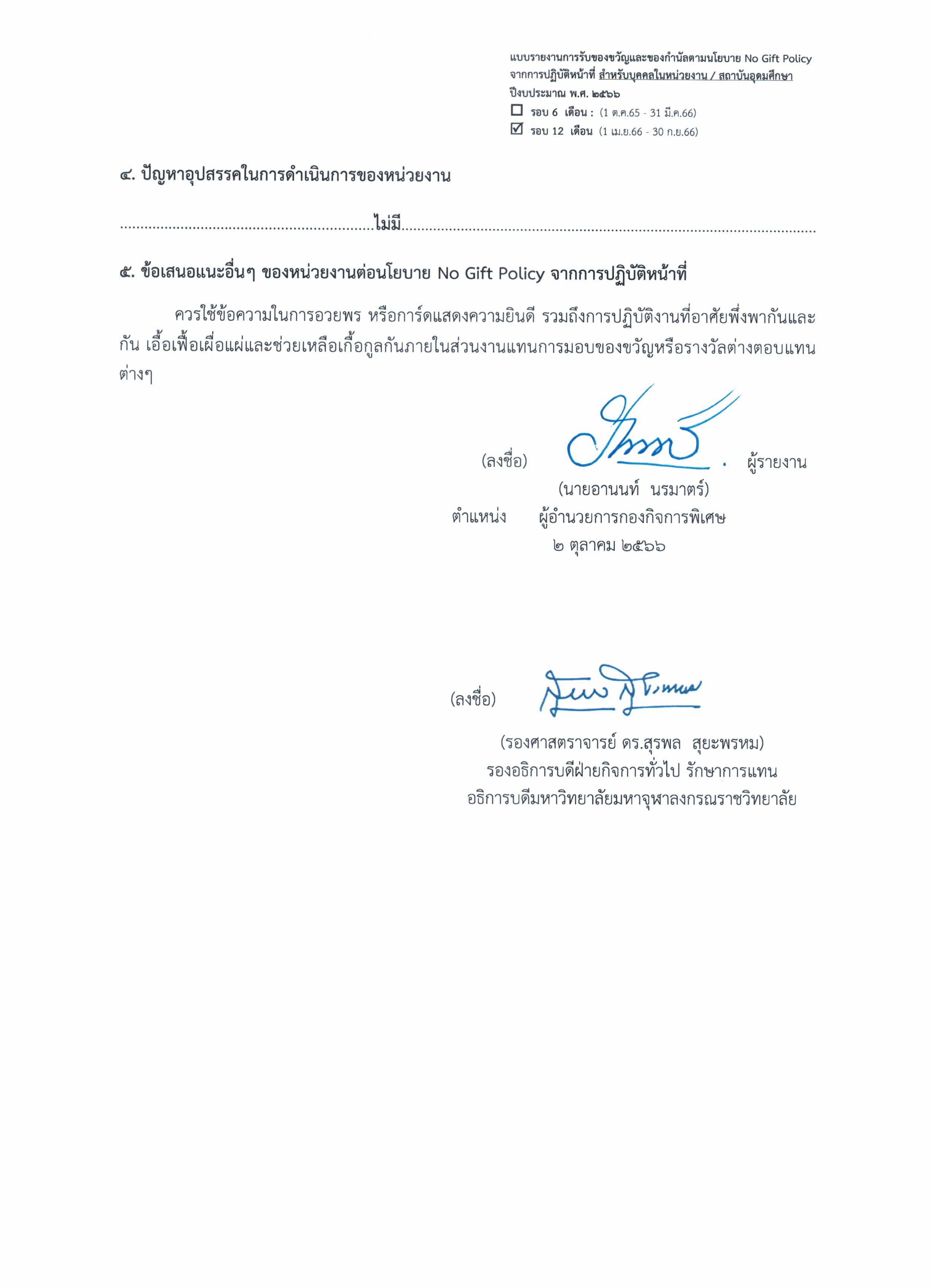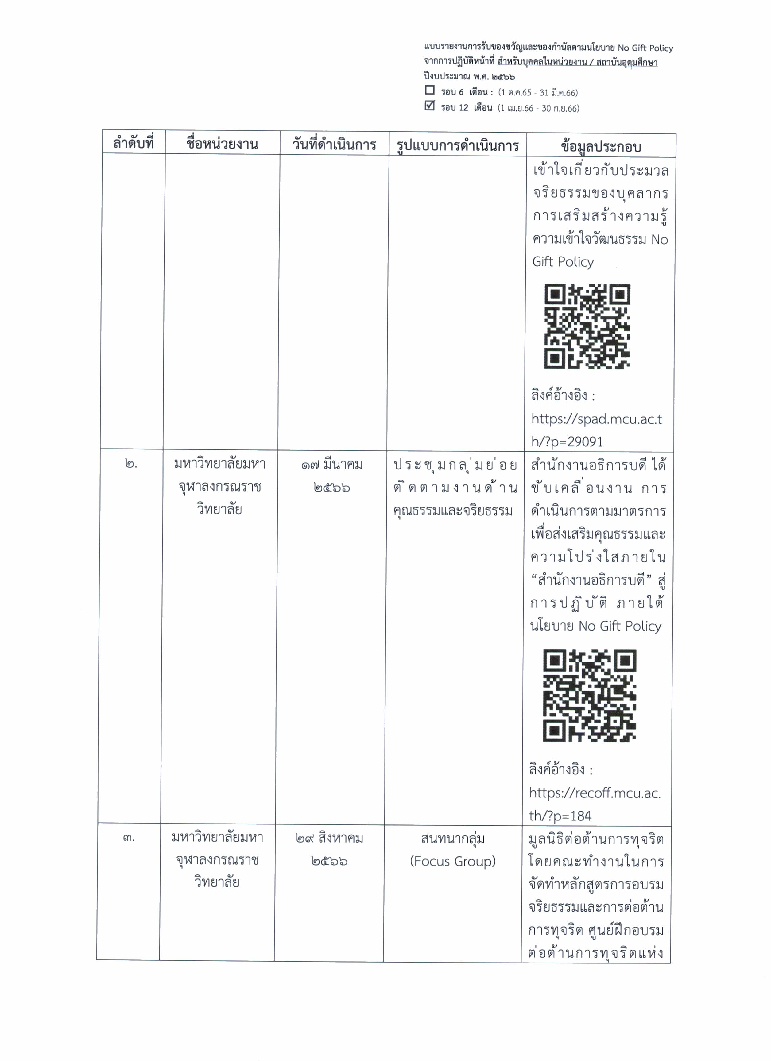 รายงานการรับของขวัญและของกำนัลตามนโยบาย No Gift Policy จากการปฏิบัติหน้าที่ ดาวน์โหลดเอกสารเพิ่มเติม >>>> ไฟล์ PDF