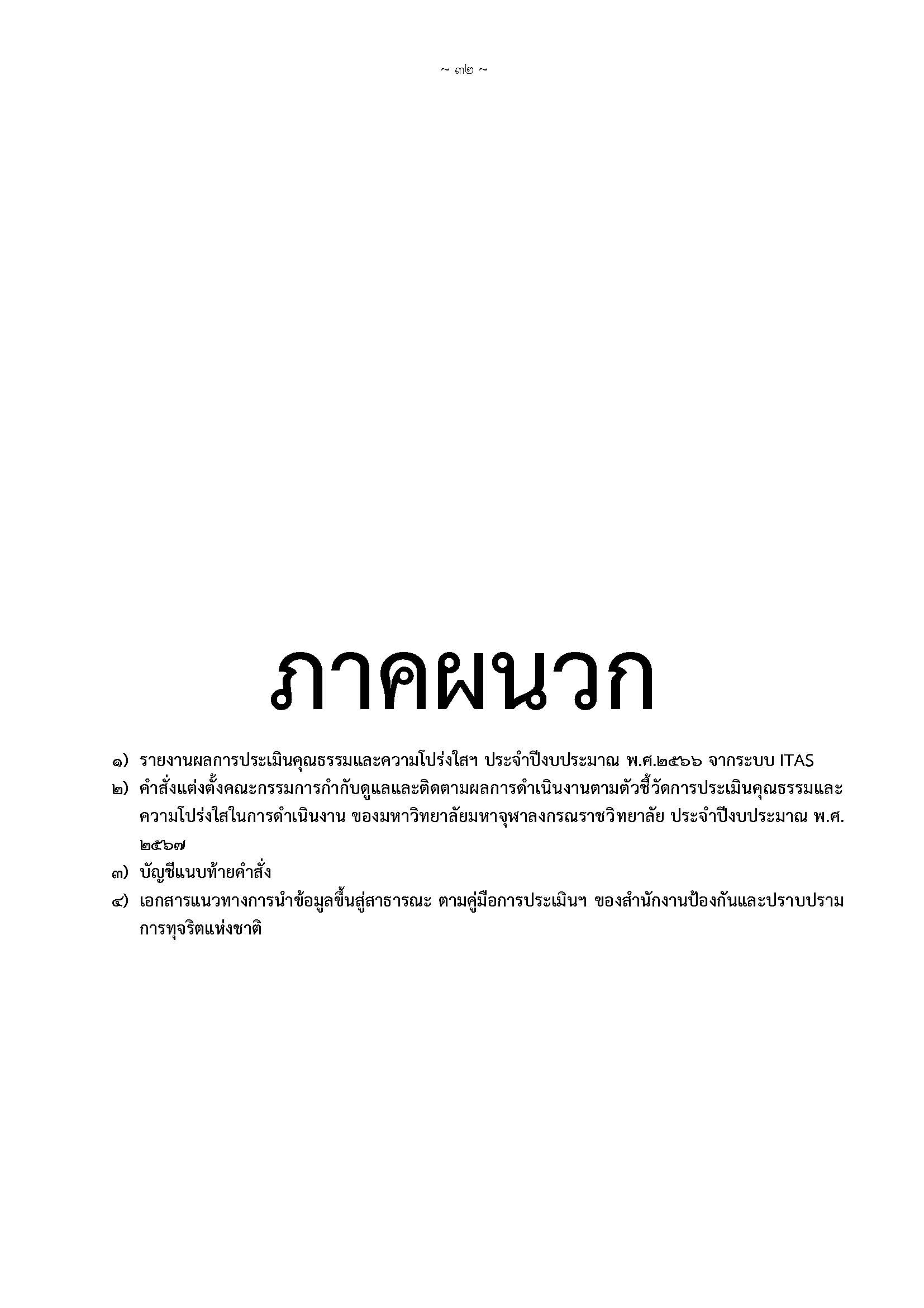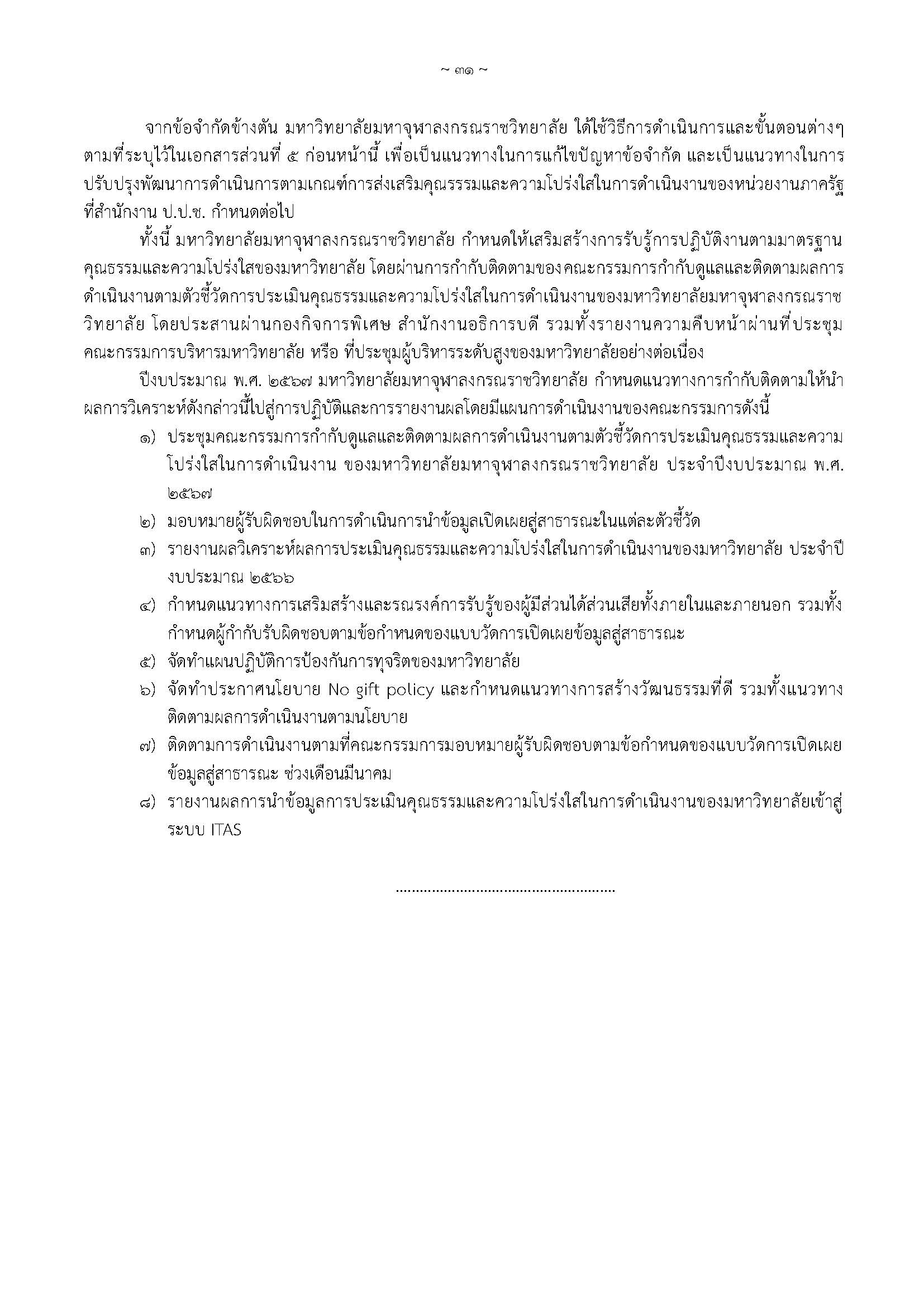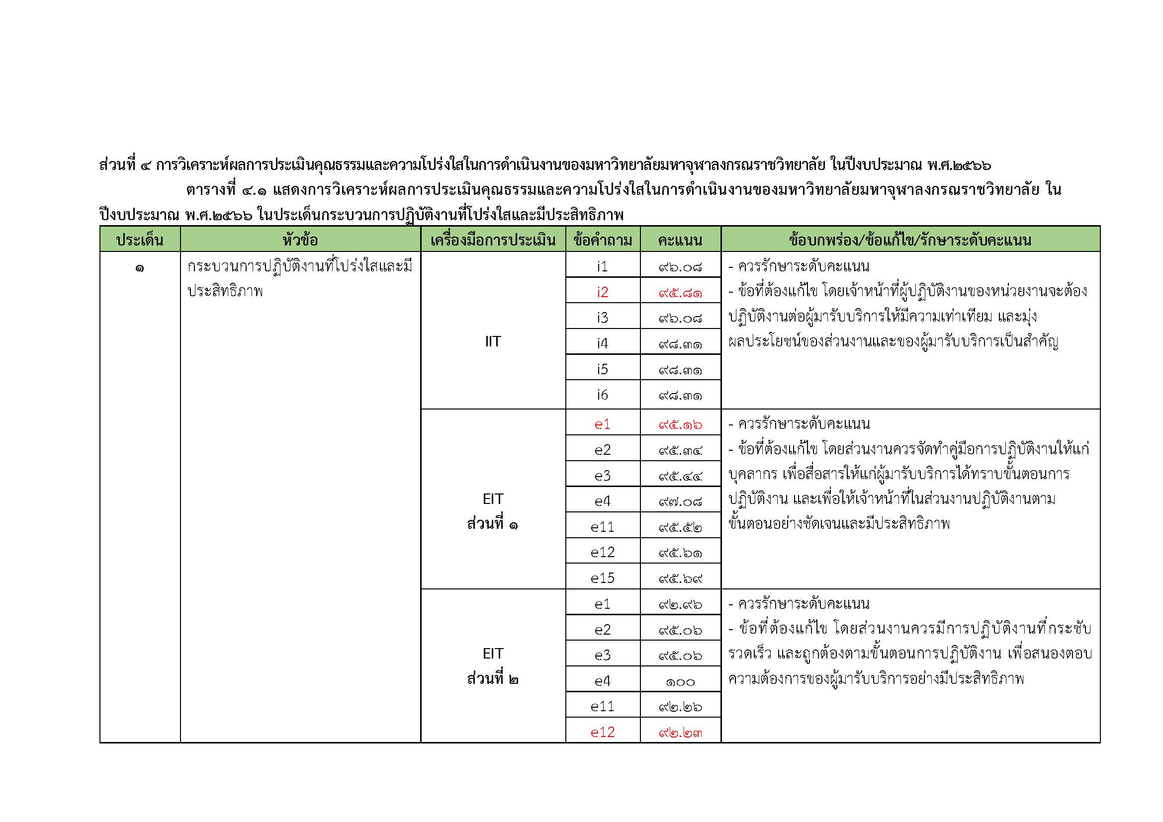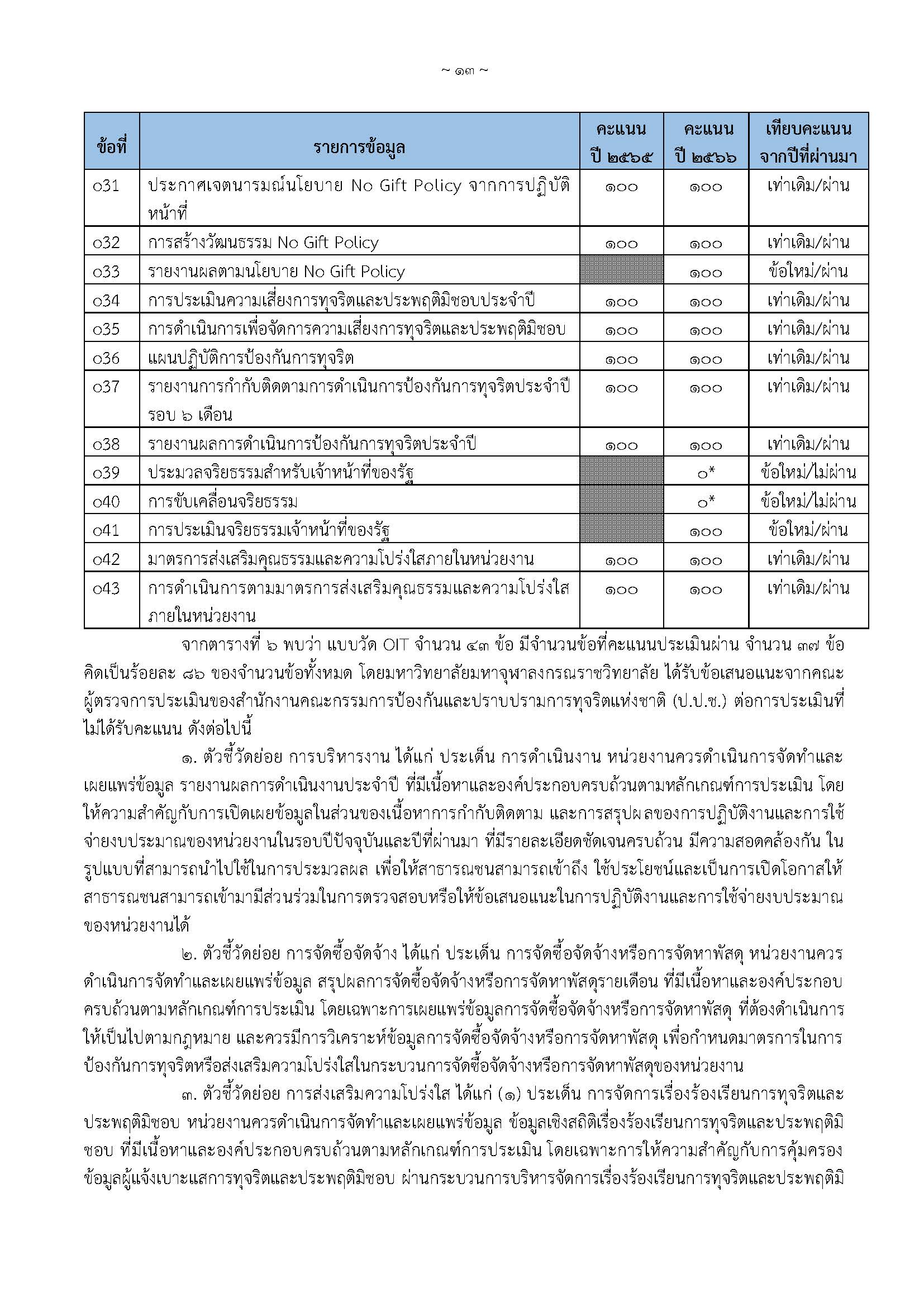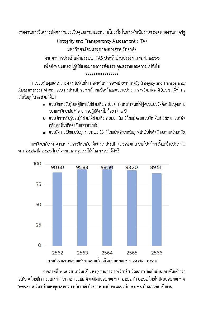 รายงานการวิเคราะห์ผลการประเมินคุณธรรมและความโปร่งใสในการดำเนินงานของหน่วยงานภาครัฐ (Integrity and Transparency Assessment : ITA) มหาวิทยาลัยมหาจุฬาลงกรณราชวิทยาลัย จากผลการประเมินผ่านระบบ ITAS ประจำปีงบประมาณ พ.ศ. ๒๕๖๖ สืบเนื่องจากการที่มหาวิทยาลัยมหาจุฬาลงกรณราชวิทยาลัย ได้รับการประเมินคุณธรรมและความโปร่งใสในการดำเนินงานของหน่วยงานภาครัฐ ประจำปีงบประมาณ พ.ศ. ๒๕๖๖ นั้น กองกิจการพิเศษ สำนักงานอธิการบดี ในฐานะฝ่ายเลขานุการคณะกรรมการกำกับดูแล และติดตามผลการดำเนินงานตามตัวชี้วัดการประเมินคุณธรรมและความโปร่งใสในการดำเนินงาน ของมหาวิทยาลัยมหาจุฬาลงกรณราชวิทยาลัย ประจำปีงบประมาณ พ.ศ. ๒๕๖๗ ซึ่งได้รับมอบหมายให้ดำเนินการจัดทำผลวิเคราะห์จากผลการประเมินให้สอดคล้องกับเกณฑ์การประเมิน ประจำปี พ.ศ.๒๕๖๗ ต่อไป (ดาวน์โหลดเล่มPDF)