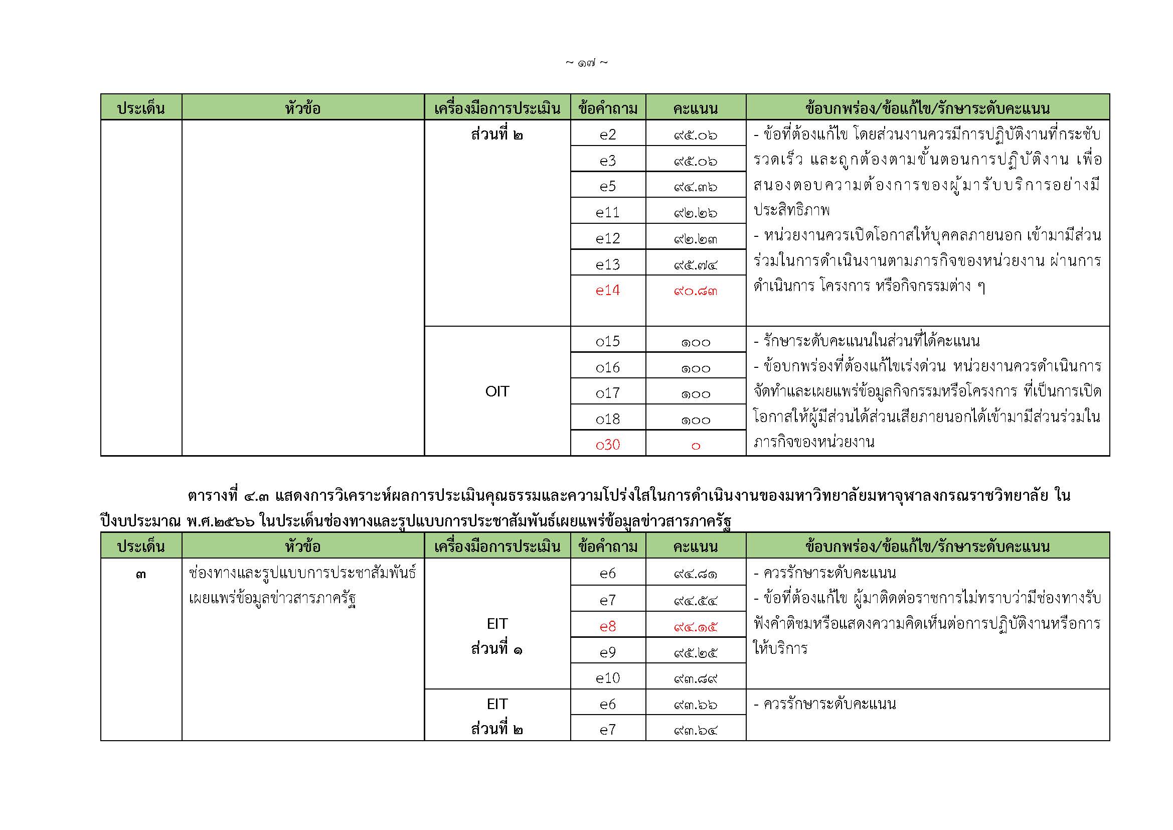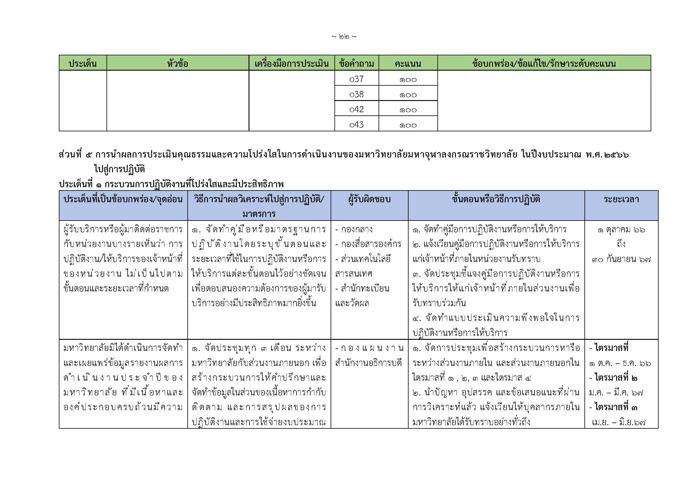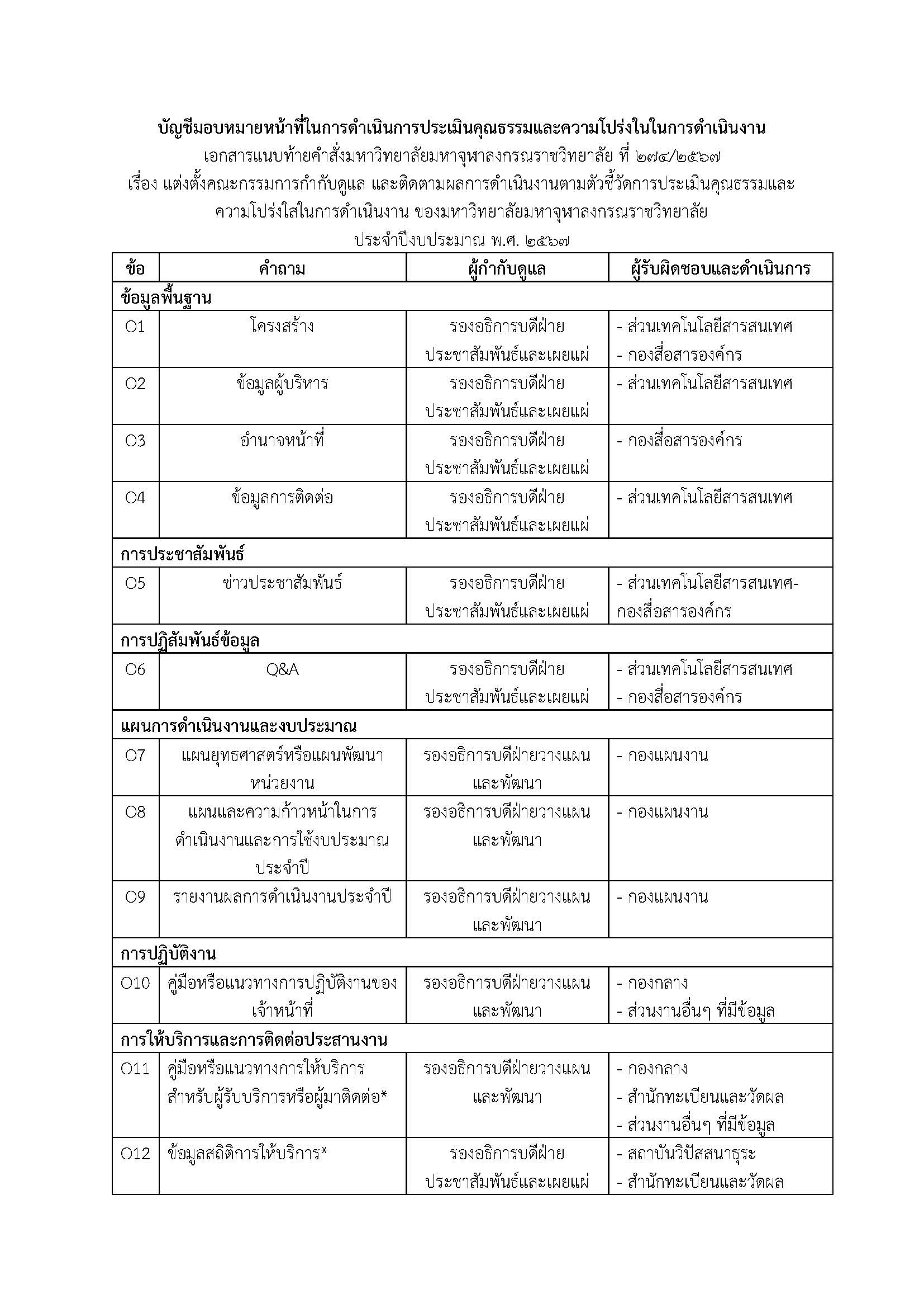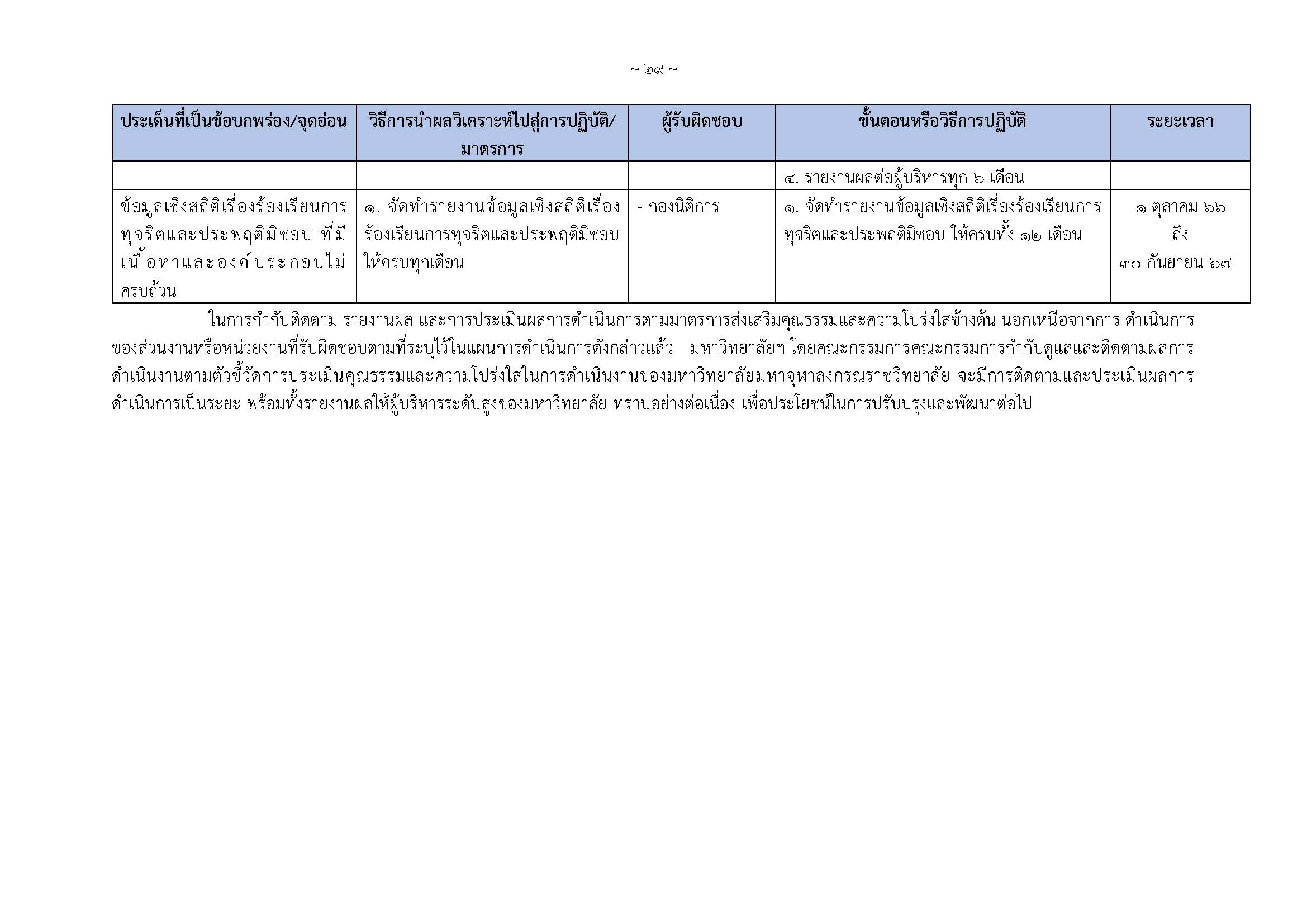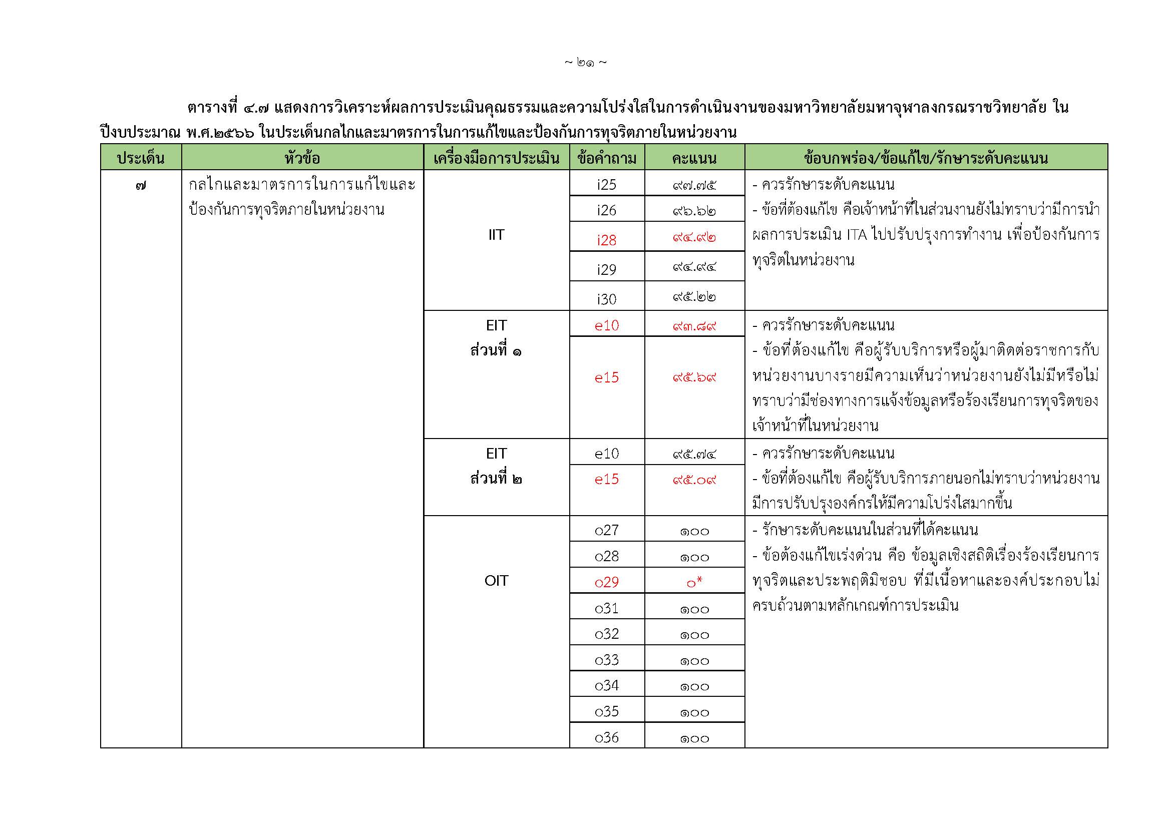 รายงานการวิเคราะห์ผลการประเมินคุณธรรมและความโปร่งใสในการดำเนินงานของหน่วยงานภาครัฐ (Integrity and Transparency Assessment : ITA) มหาวิทยาลัยมหาจุฬาลงกรณราชวิทยาลัย จากผลการประเมินผ่านระบบ ITAS ประจำปีงบประมาณ พ.ศ. ๒๕๖๖ สืบเนื่องจากการที่มหาวิทยาลัยมหาจุฬาลงกรณราชวิทยาลัย ได้รับการประเมินคุณธรรมและความโปร่งใสในการดำเนินงานของหน่วยงานภาครัฐ ประจำปีงบประมาณ พ.ศ. ๒๕๖๖ นั้น กองกิจการพิเศษ สำนักงานอธิการบดี ในฐานะฝ่ายเลขานุการคณะกรรมการกำกับดูแล และติดตามผลการดำเนินงานตามตัวชี้วัดการประเมินคุณธรรมและความโปร่งใสในการดำเนินงาน ของมหาวิทยาลัยมหาจุฬาลงกรณราชวิทยาลัย ประจำปีงบประมาณ พ.ศ. ๒๕๖๗ ซึ่งได้รับมอบหมายให้ดำเนินการจัดทำผลวิเคราะห์จากผลการประเมินให้สอดคล้องกับเกณฑ์การประเมิน ประจำปี พ.ศ.๒๕๖๗ ต่อไป (ดาวน์โหลดเล่มPDF)