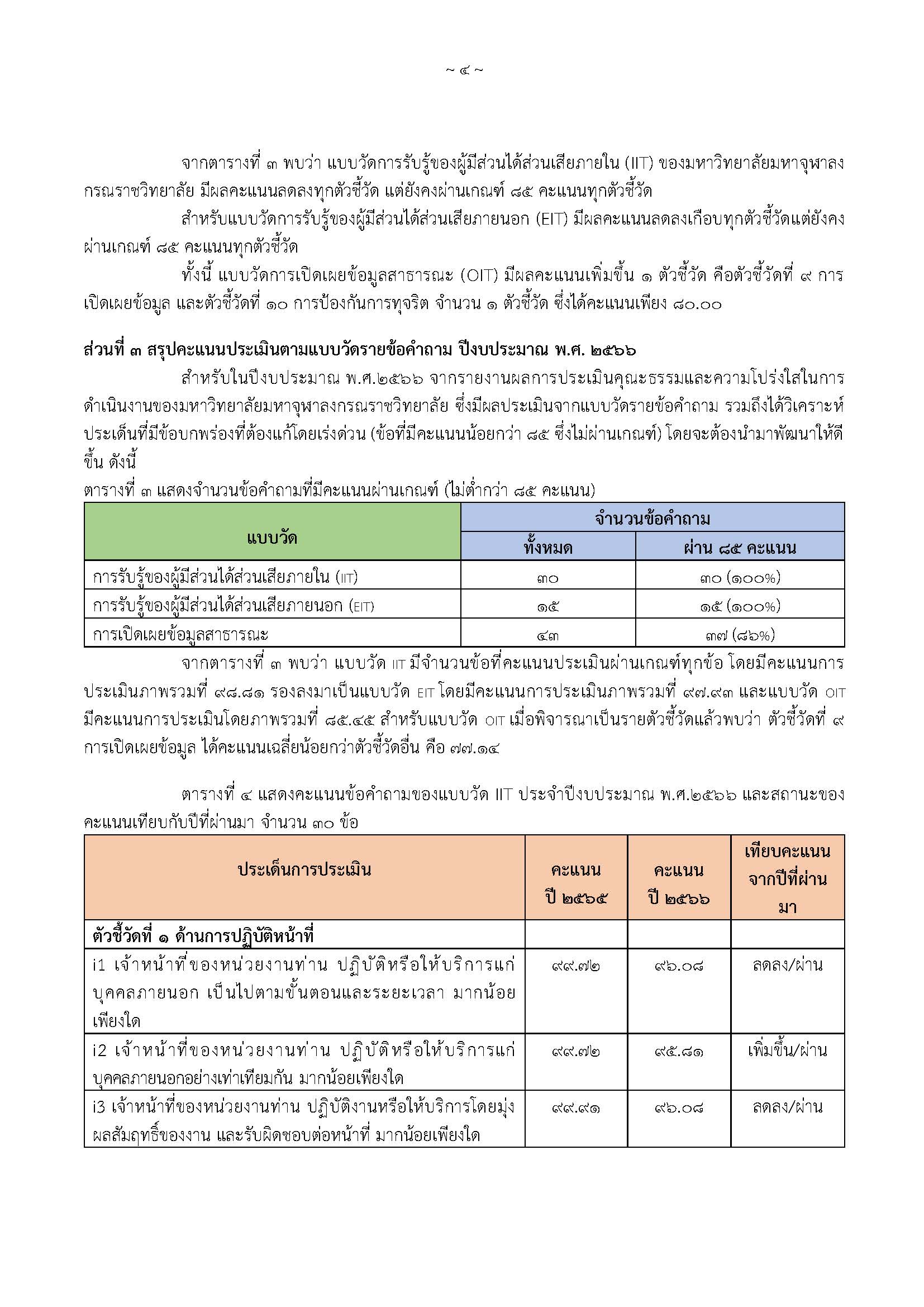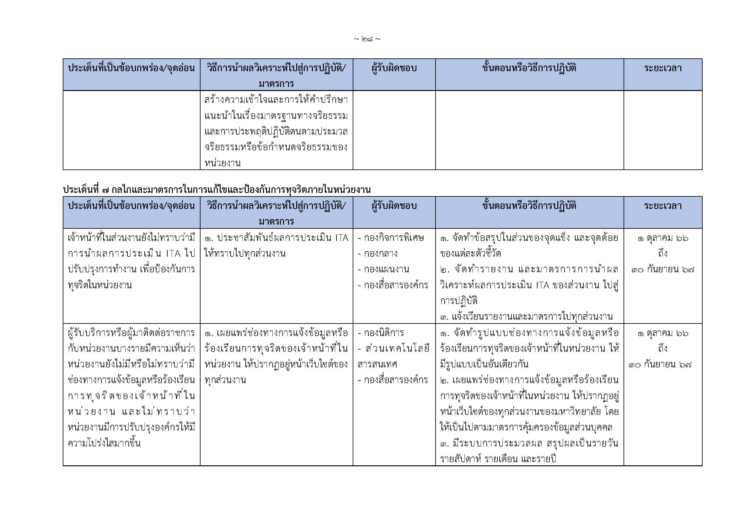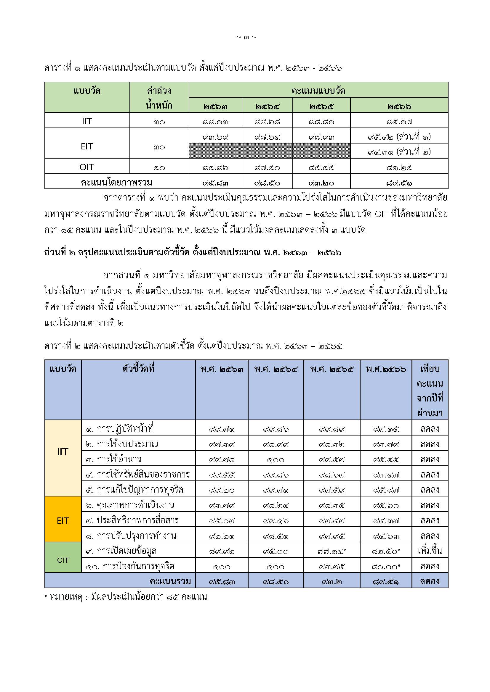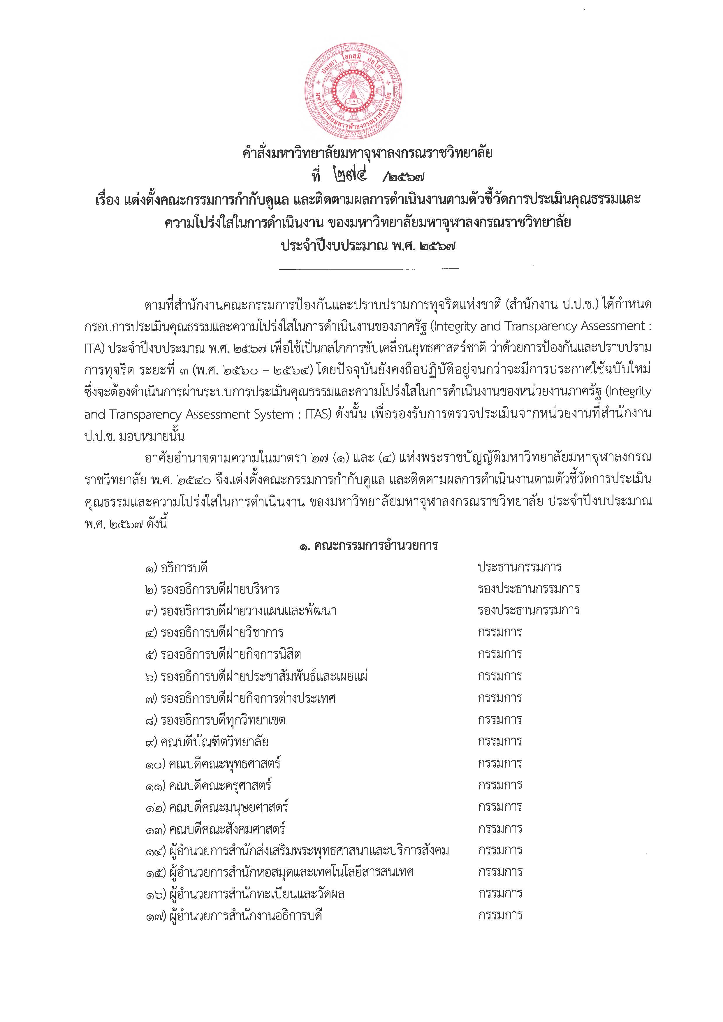 รายงานการวิเคราะห์ผลการประเมินคุณธรรมและความโปร่งใสในการดำเนินงานของหน่วยงานภาครัฐ (Integrity and Transparency Assessment : ITA) มหาวิทยาลัยมหาจุฬาลงกรณราชวิทยาลัย จากผลการประเมินผ่านระบบ ITAS ประจำปีงบประมาณ พ.ศ. ๒๕๖๖ สืบเนื่องจากการที่มหาวิทยาลัยมหาจุฬาลงกรณราชวิทยาลัย ได้รับการประเมินคุณธรรมและความโปร่งใสในการดำเนินงานของหน่วยงานภาครัฐ ประจำปีงบประมาณ พ.ศ. ๒๕๖๖ นั้น กองกิจการพิเศษ สำนักงานอธิการบดี ในฐานะฝ่ายเลขานุการคณะกรรมการกำกับดูแล และติดตามผลการดำเนินงานตามตัวชี้วัดการประเมินคุณธรรมและความโปร่งใสในการดำเนินงาน ของมหาวิทยาลัยมหาจุฬาลงกรณราชวิทยาลัย ประจำปีงบประมาณ พ.ศ. ๒๕๖๗ ซึ่งได้รับมอบหมายให้ดำเนินการจัดทำผลวิเคราะห์จากผลการประเมินให้สอดคล้องกับเกณฑ์การประเมิน ประจำปี พ.ศ.๒๕๖๗ ต่อไป (ดาวน์โหลดเล่มPDF)