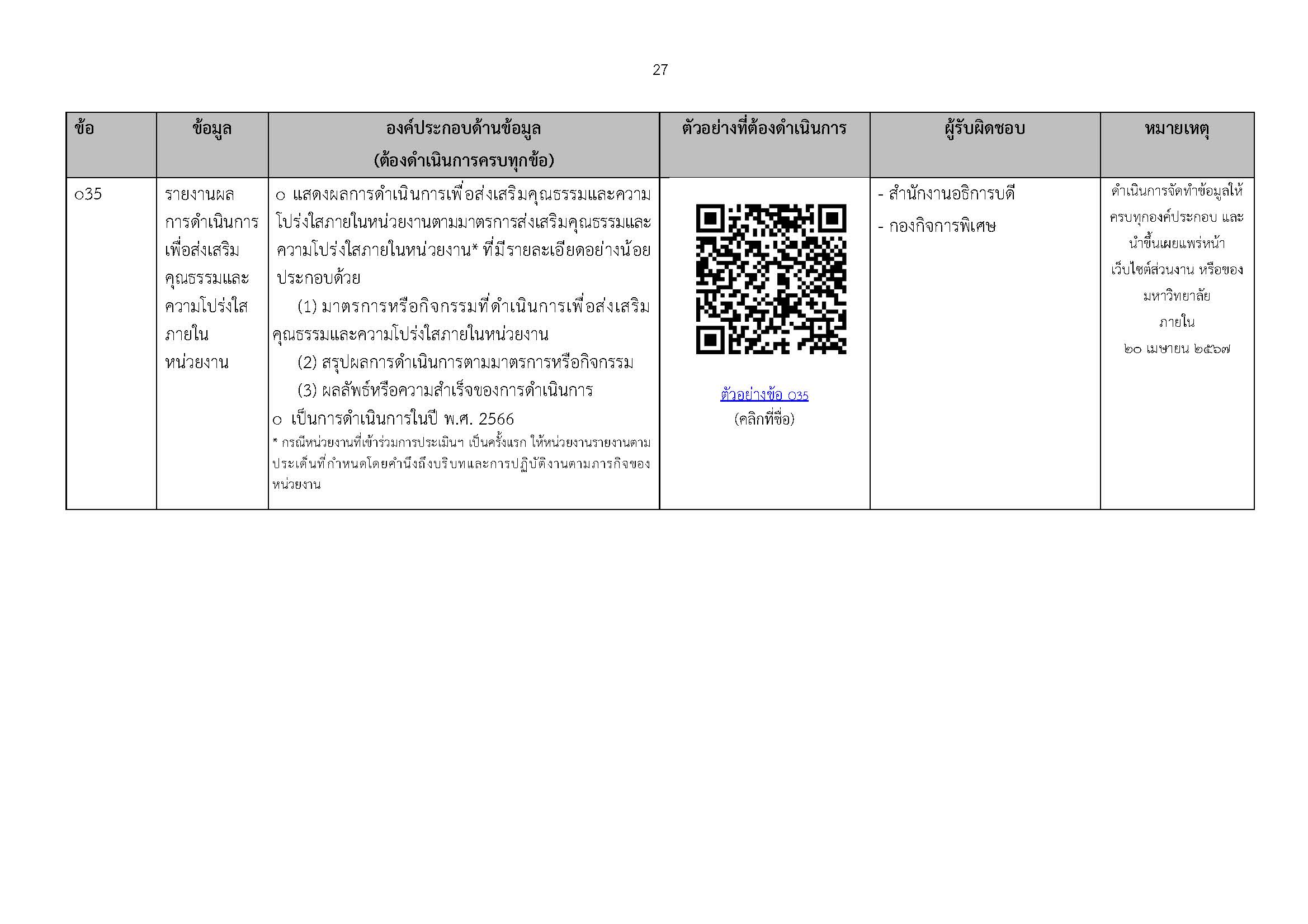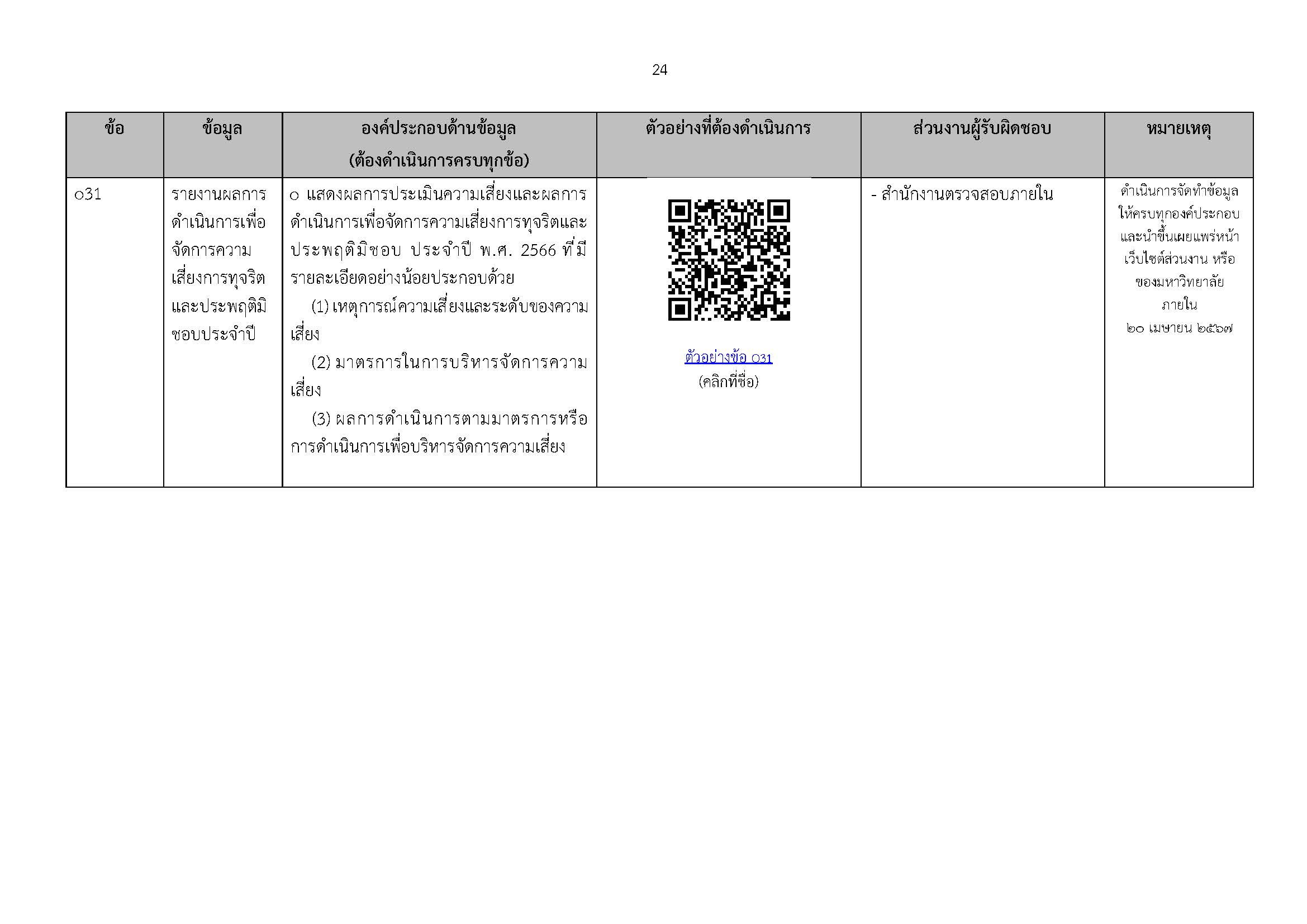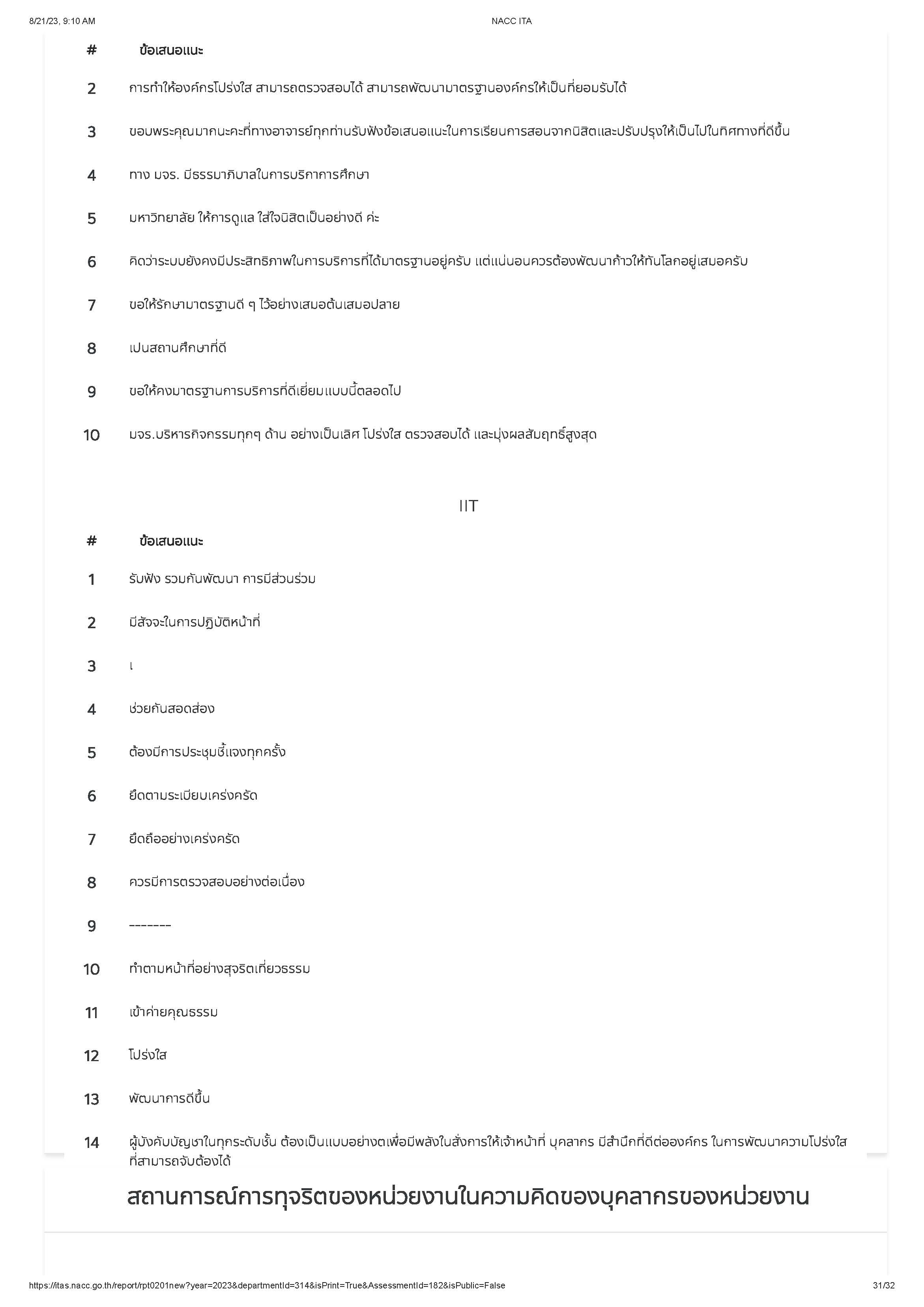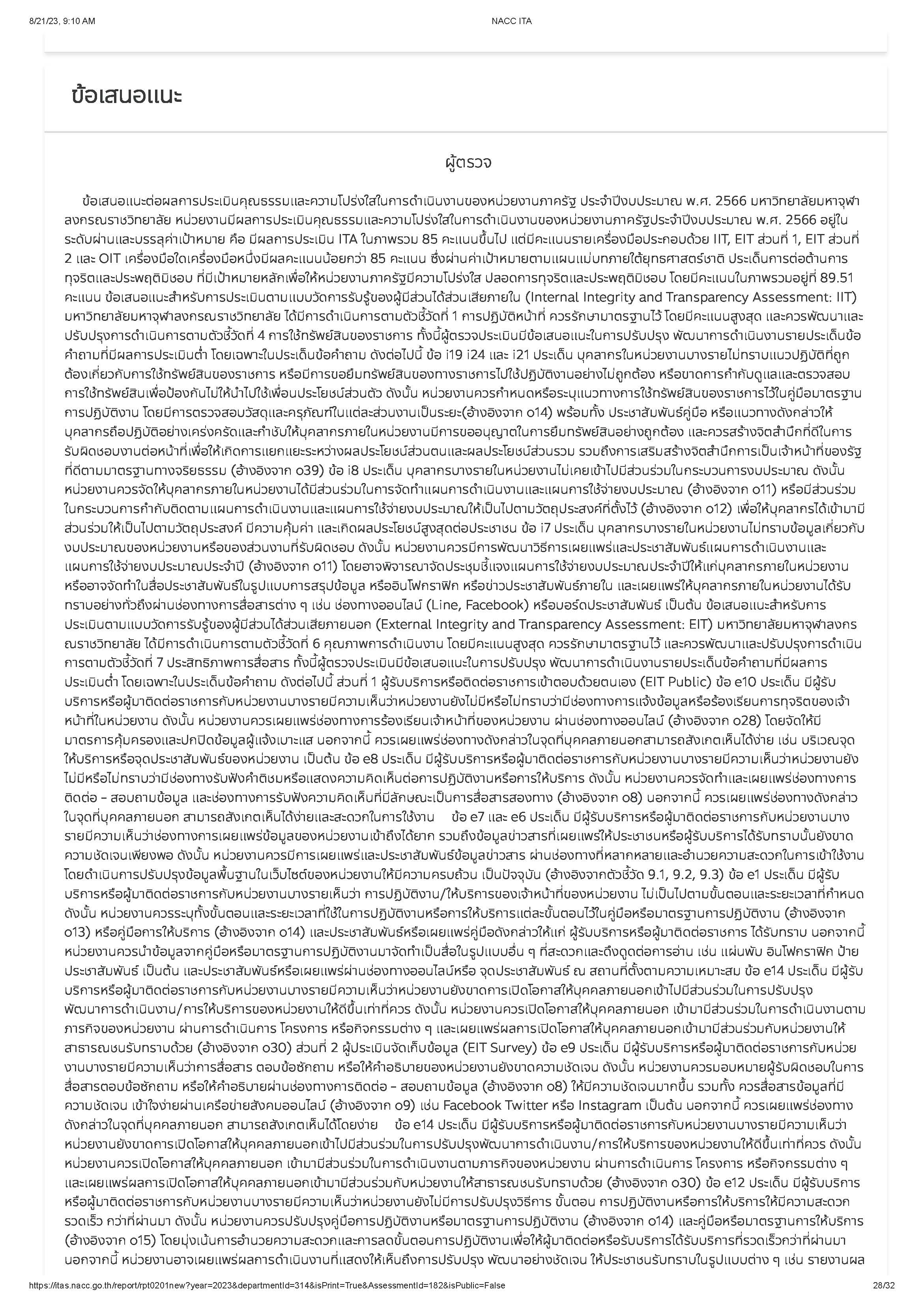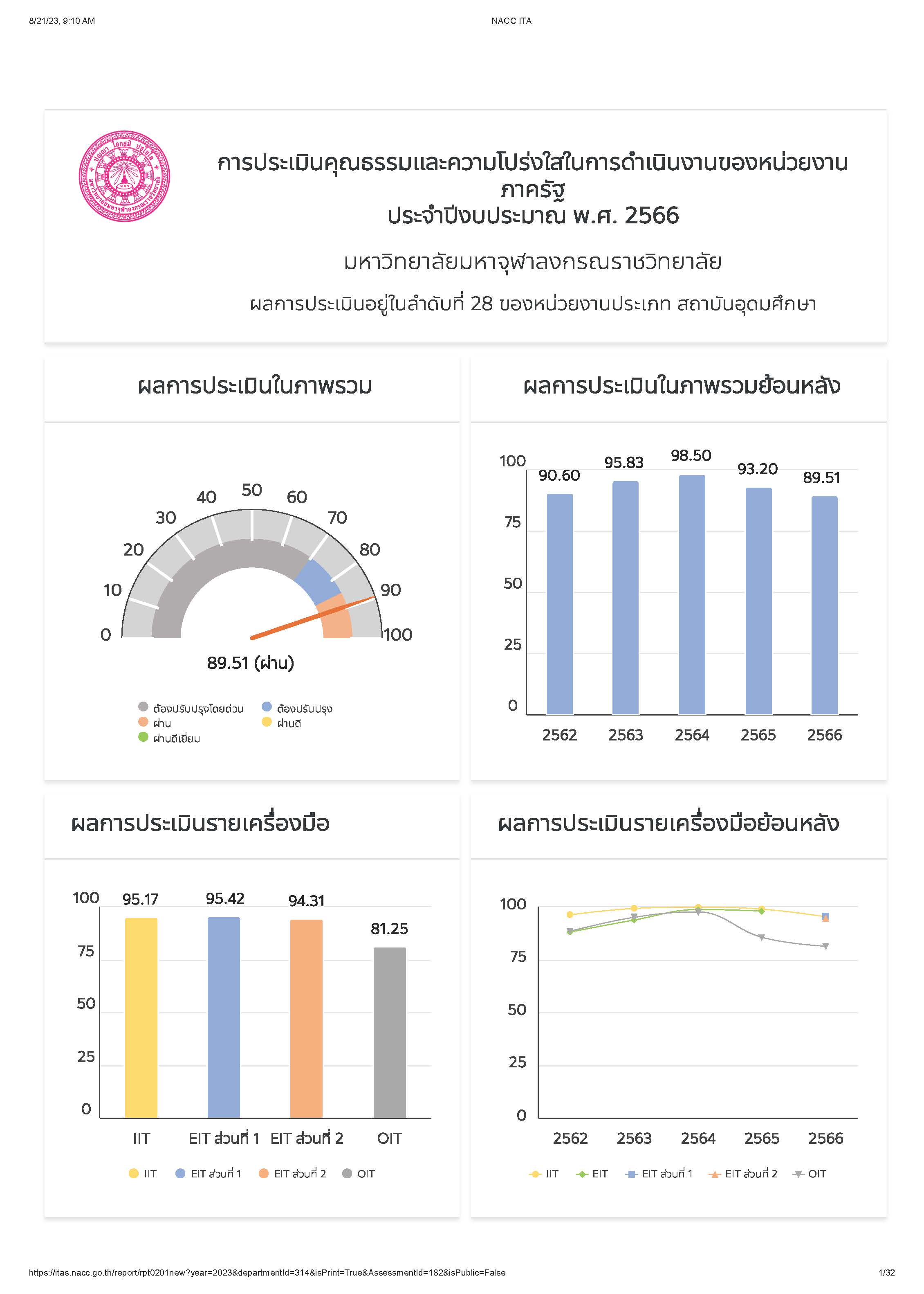 รายงานการวิเคราะห์ผลการประเมินคุณธรรมและความโปร่งใสในการดำเนินงานของหน่วยงานภาครัฐ (Integrity and Transparency Assessment : ITA) มหาวิทยาลัยมหาจุฬาลงกรณราชวิทยาลัย จากผลการประเมินผ่านระบบ ITAS ประจำปีงบประมาณ พ.ศ. ๒๕๖๖ สืบเนื่องจากการที่มหาวิทยาลัยมหาจุฬาลงกรณราชวิทยาลัย ได้รับการประเมินคุณธรรมและความโปร่งใสในการดำเนินงานของหน่วยงานภาครัฐ ประจำปีงบประมาณ พ.ศ. ๒๕๖๖ นั้น กองกิจการพิเศษ สำนักงานอธิการบดี ในฐานะฝ่ายเลขานุการคณะกรรมการกำกับดูแล และติดตามผลการดำเนินงานตามตัวชี้วัดการประเมินคุณธรรมและความโปร่งใสในการดำเนินงาน ของมหาวิทยาลัยมหาจุฬาลงกรณราชวิทยาลัย ประจำปีงบประมาณ พ.ศ. ๒๕๖๗ ซึ่งได้รับมอบหมายให้ดำเนินการจัดทำผลวิเคราะห์จากผลการประเมินให้สอดคล้องกับเกณฑ์การประเมิน ประจำปี พ.ศ.๒๕๖๗ ต่อไป (ดาวน์โหลดเล่มPDF)