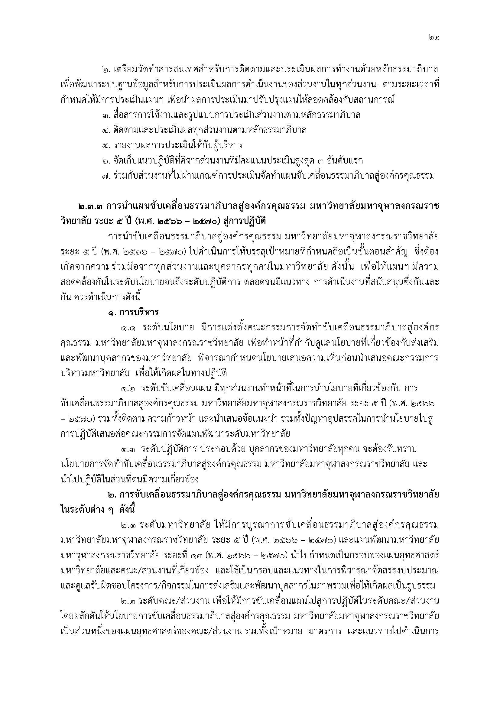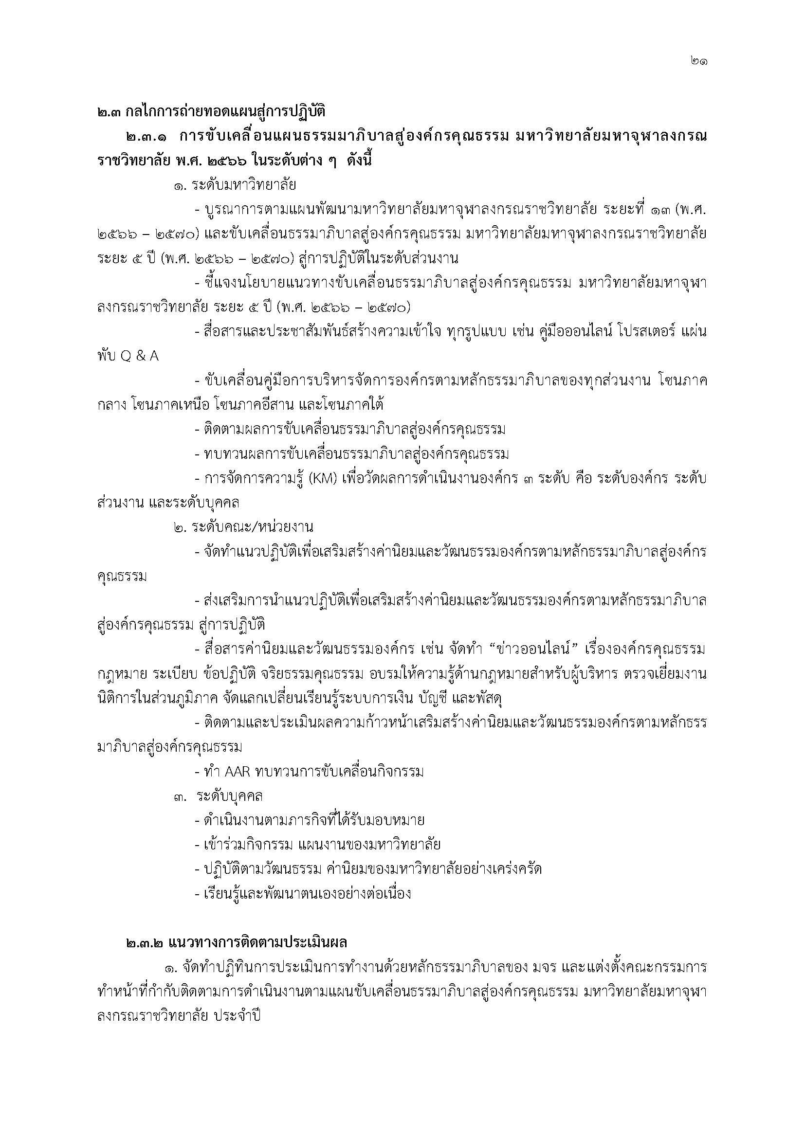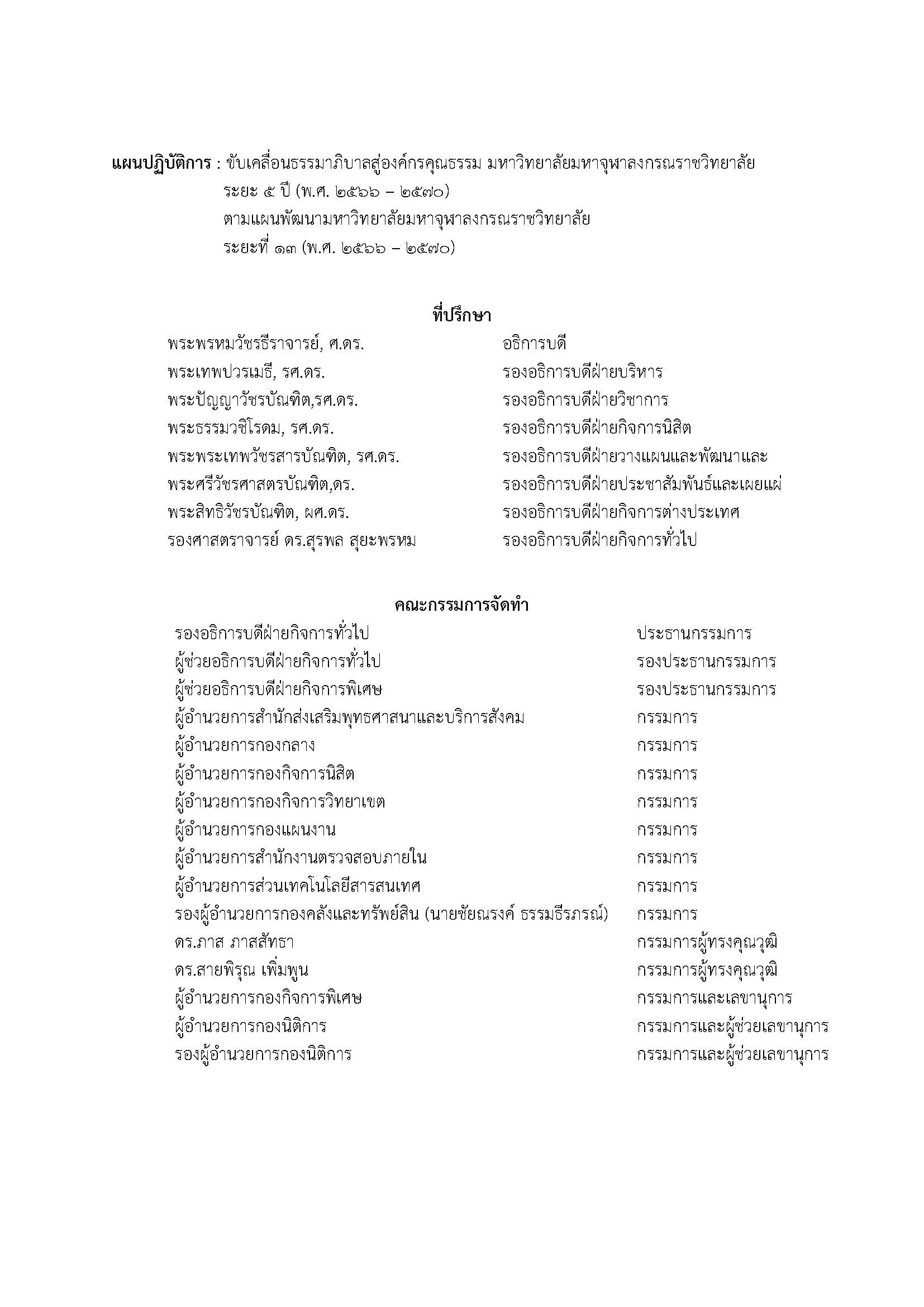 แผนขับเคลื่อนธรรมาภิบาลสู่องค์กรคุณธรรม มหาวิทยาลัยมหาจุฬาลงกรณราชวิทยาลัย ระยะ ๕ ปี (พ.ศ. ๒๕๖๖ – ๒๕๗๐)