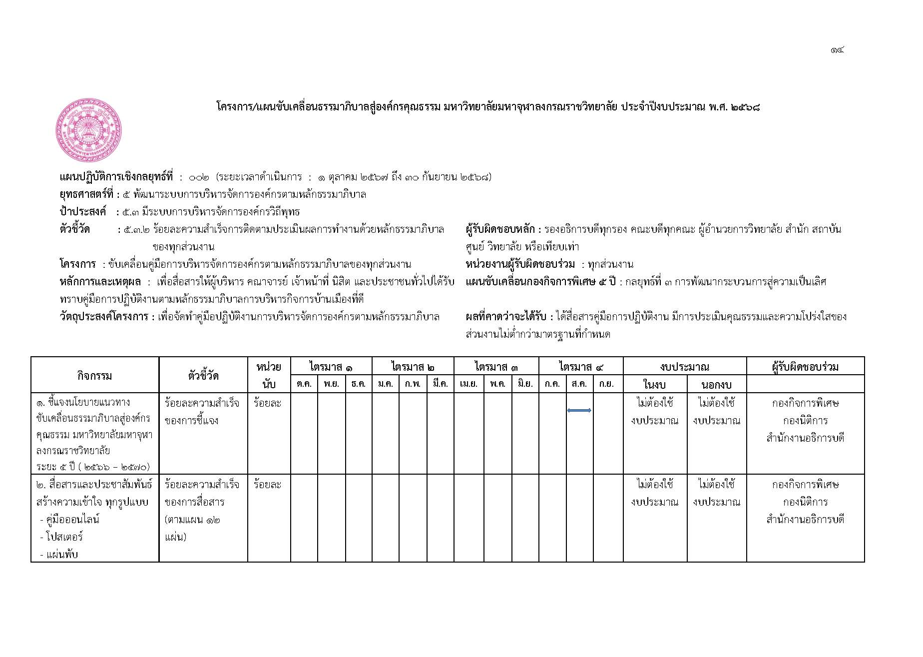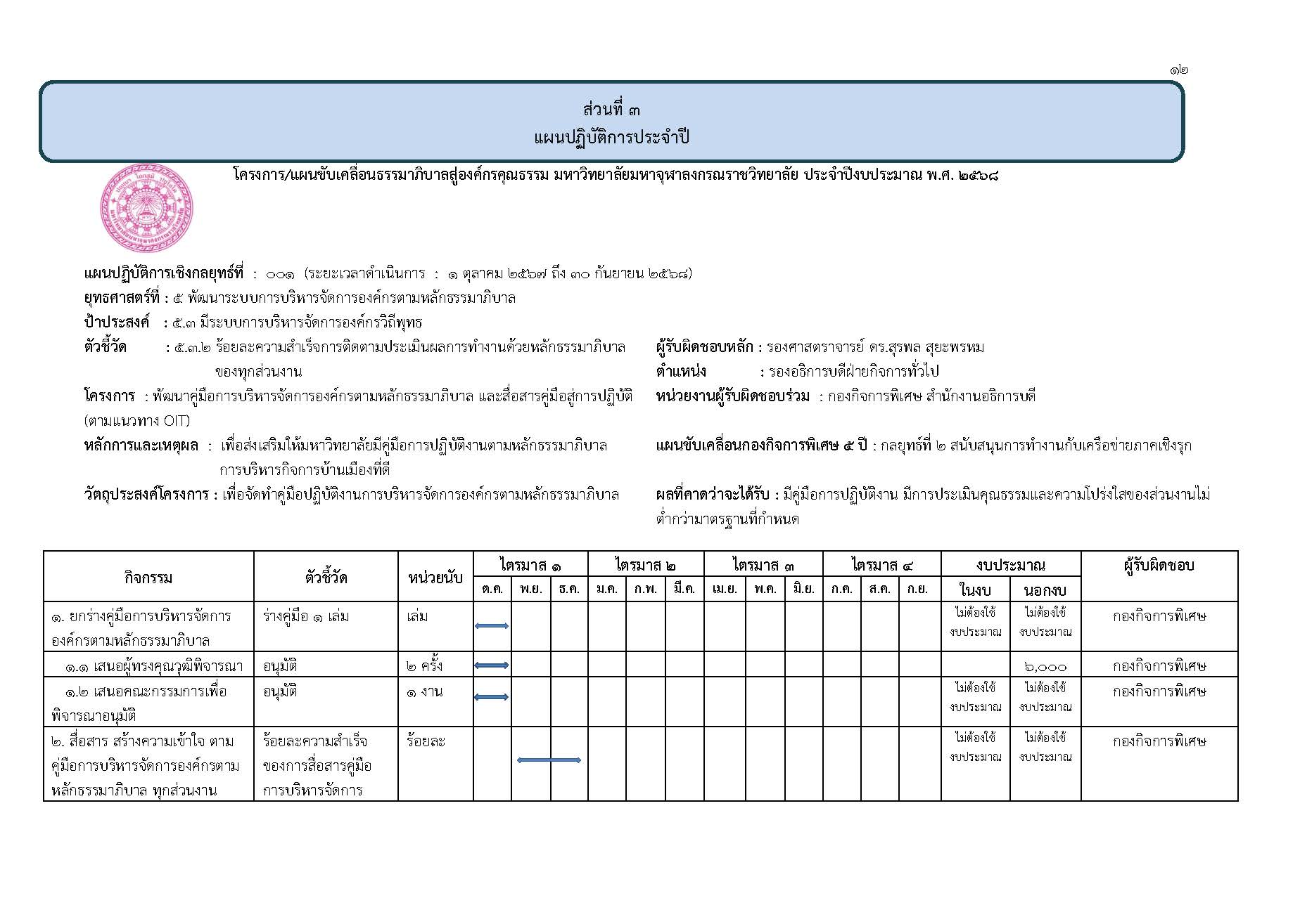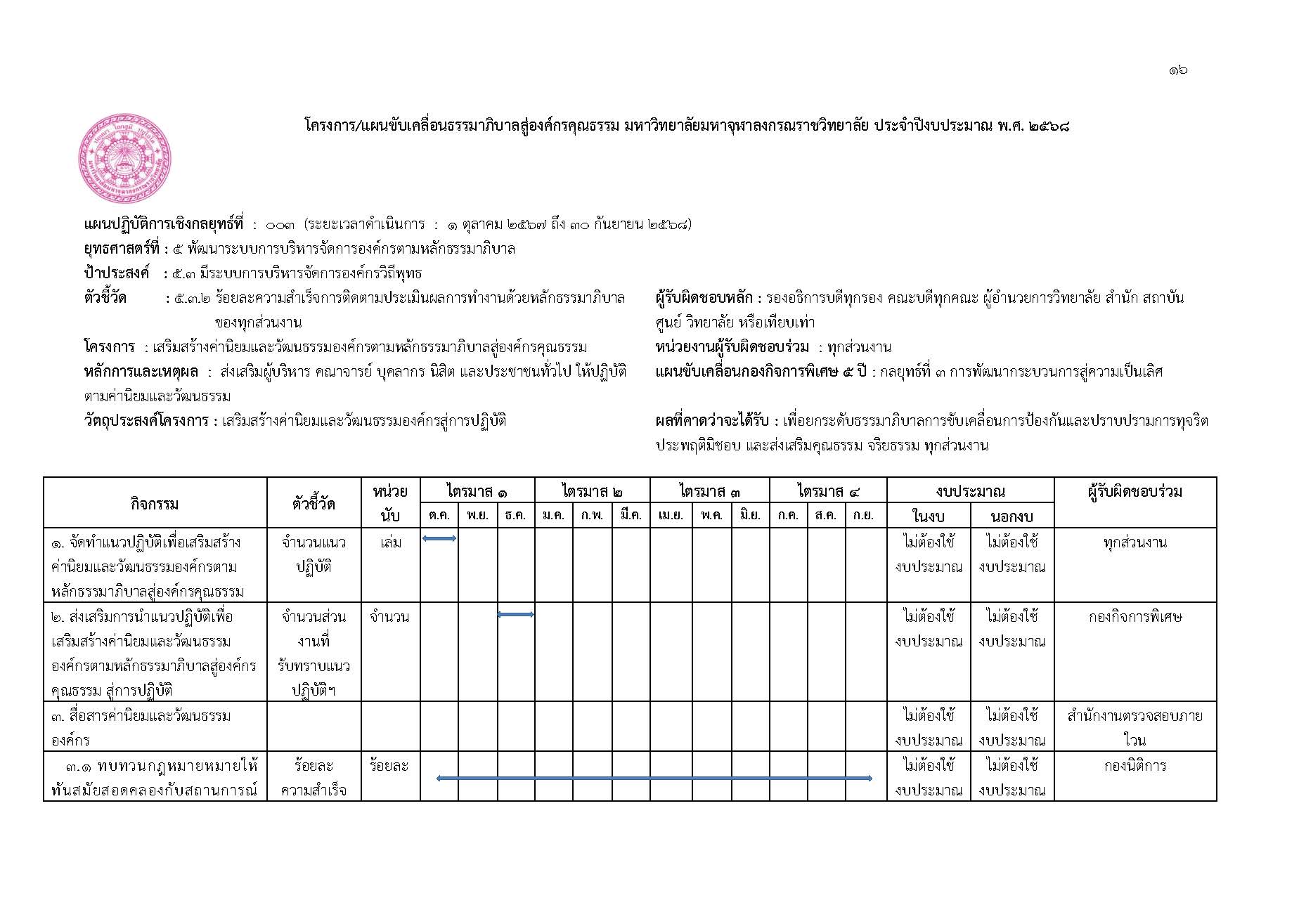 แผนขับเคลื่อนธรรมาภิบาลสู่องค์กรคุณธรรม มหาวิทยาลัยมหาจุฬาลงกรณราชวิทยาลัย ระยะ ๕ ปี (พ.ศ. ๒๕๖๖ – ๒๕๗๐)