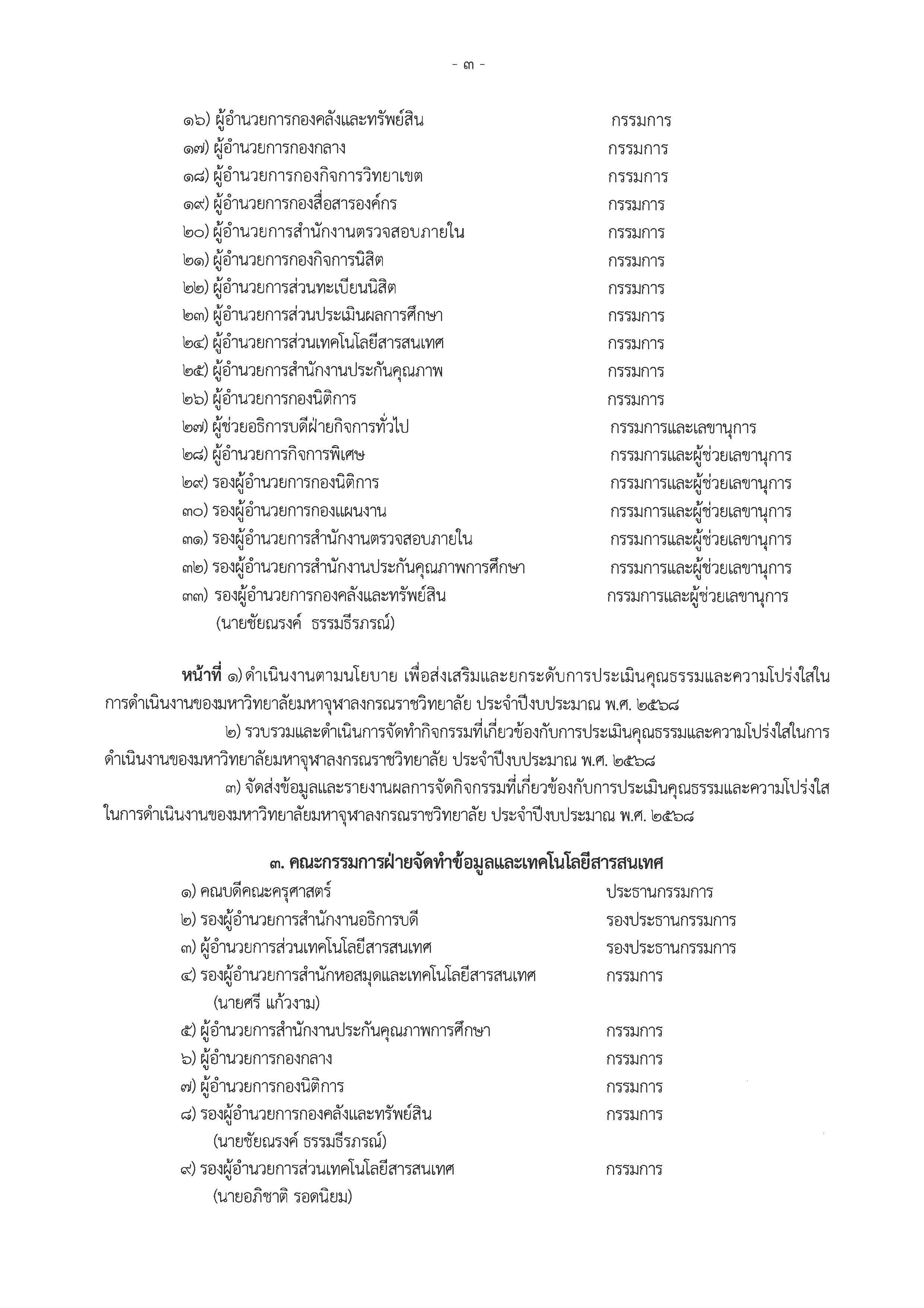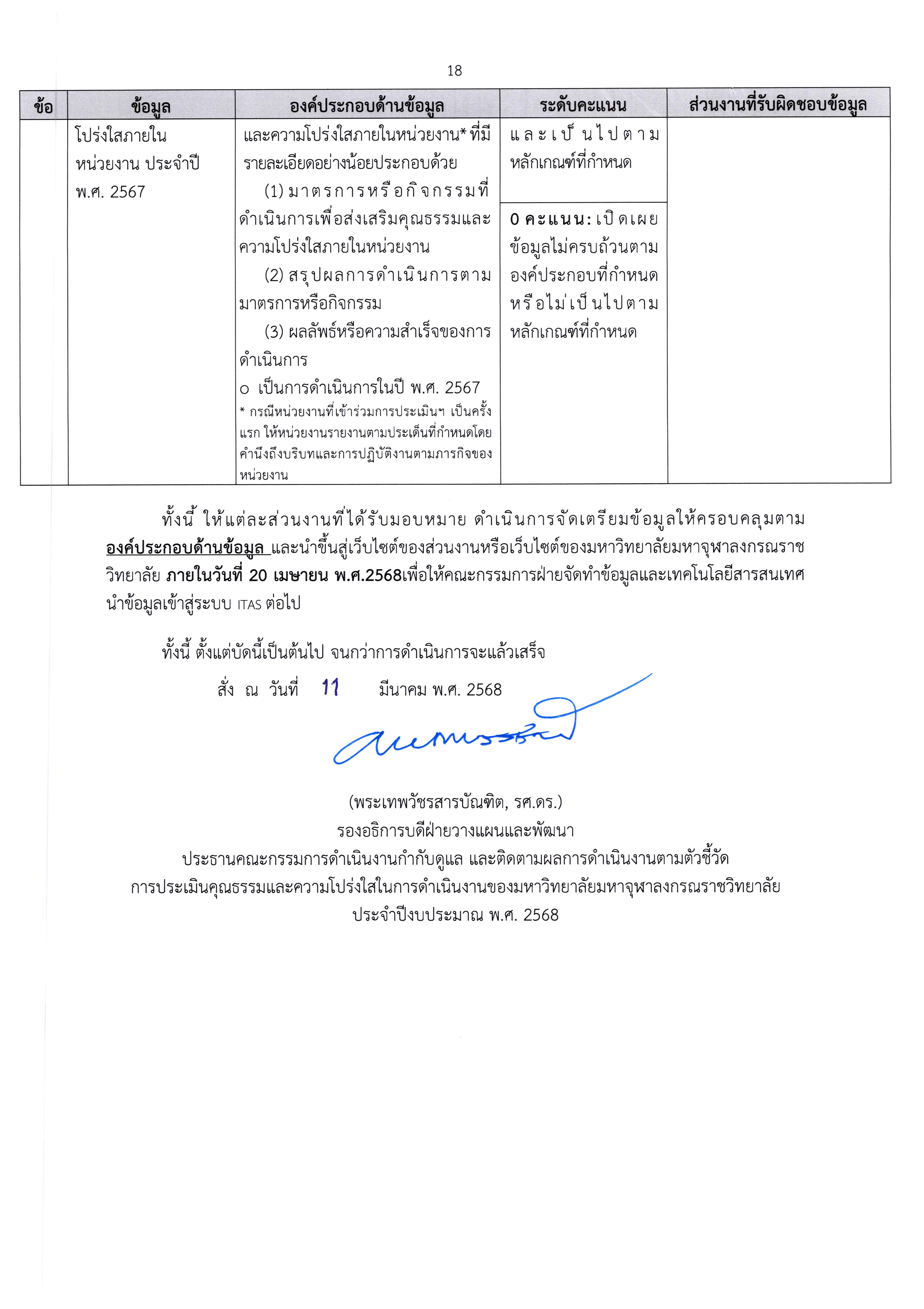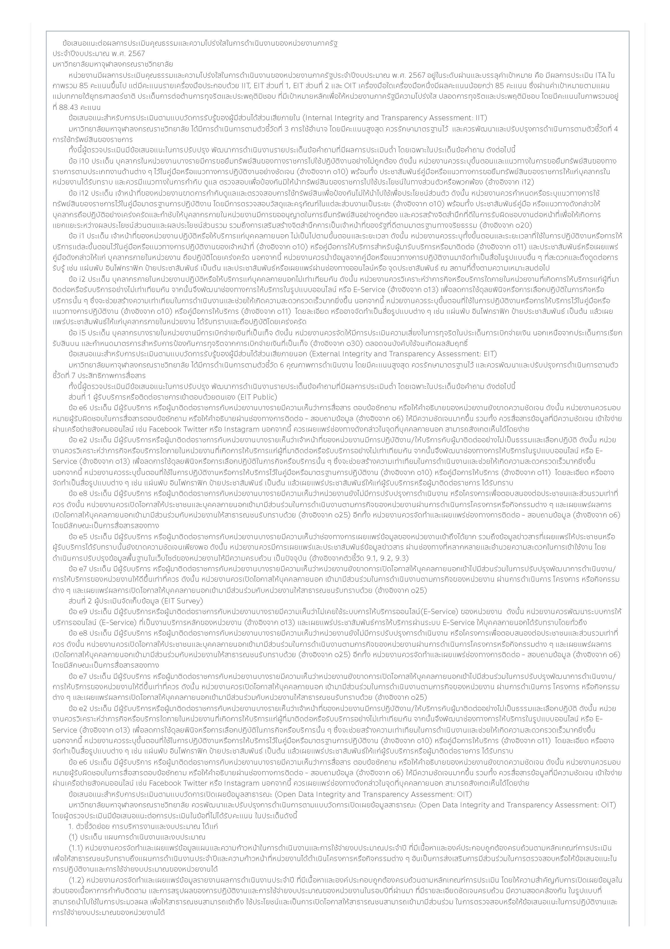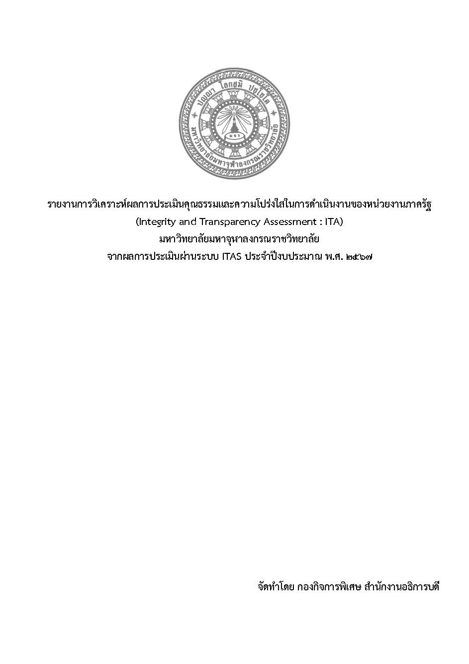 สืบเนื่องจากการที่มหาวิทยาลัยมหาจุฬาลงกรณราชวิทยาลัย ได้รับการประเมินคุณธรรมและความโปร่งใสในการดำเนินงานของหน่วยงานภาครัฐ ประจำปีงบประมาณ พ.ศ. ๒๕๖๗ นั้น กองกิจการพิเศษ สำนักงานอธิการบดี ในฐานะฝ่ายเลขานุการคณะกรรมการกำกับดูแล และติดตามผลการดำเนินงานตามตัวชี้วัดการประเมินคุณธรรมและความโปร่งใสในการดำเนินงาน ของมหาวิทยาลัยมหาจุฬาลงกรณราชวิทยาลัย ประจำปีงบประมาณ พ.ศ. ๒๕๖๗ ซึ่งได้รับมอบหมายให้ดำเนินการจัดทำผลวิเคราะห์จากผลการประเมินให้สอดคล้องกับเกณฑ์การประเมิน ประจำปี พ.ศ.๒๕๖๘ ต่อไป